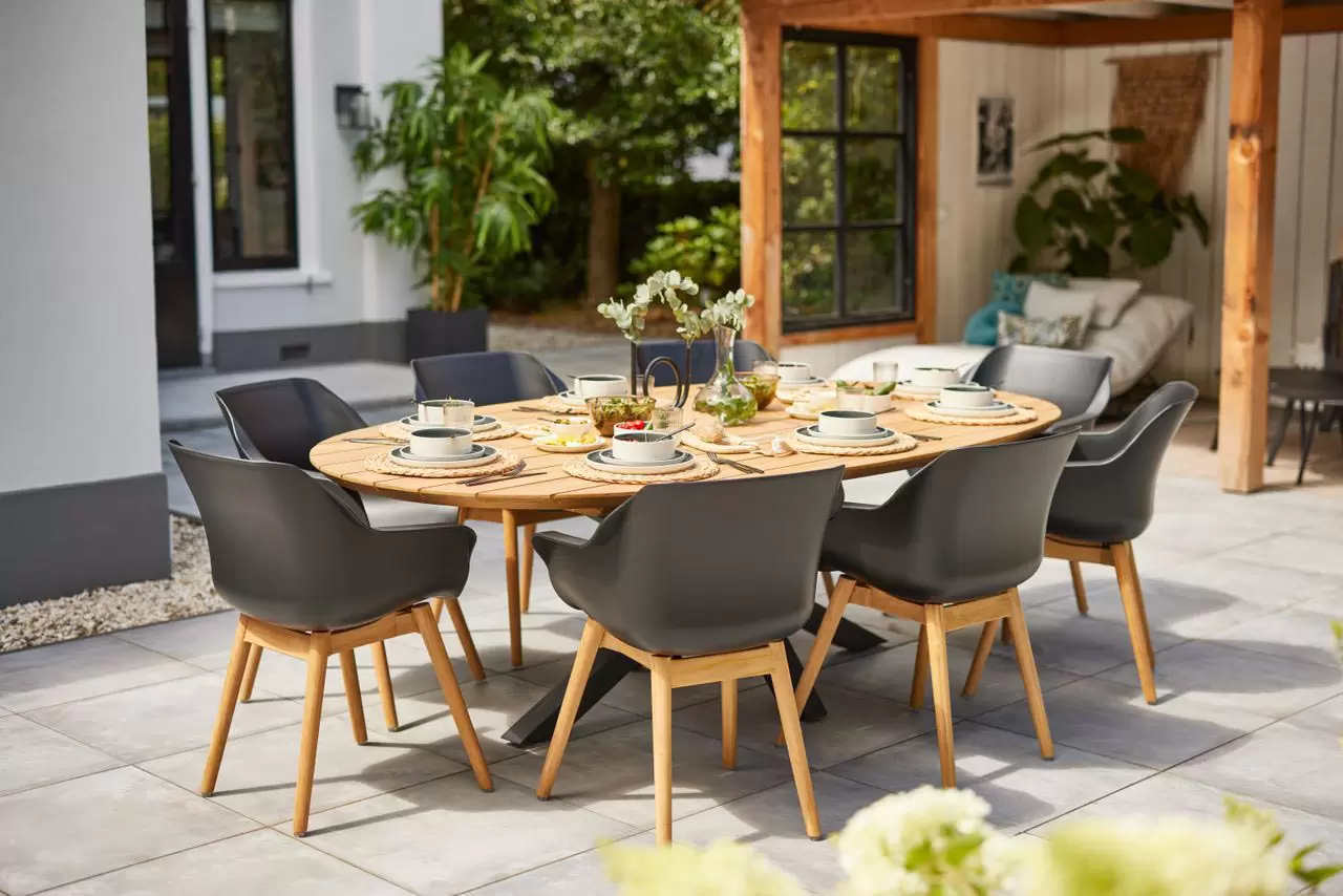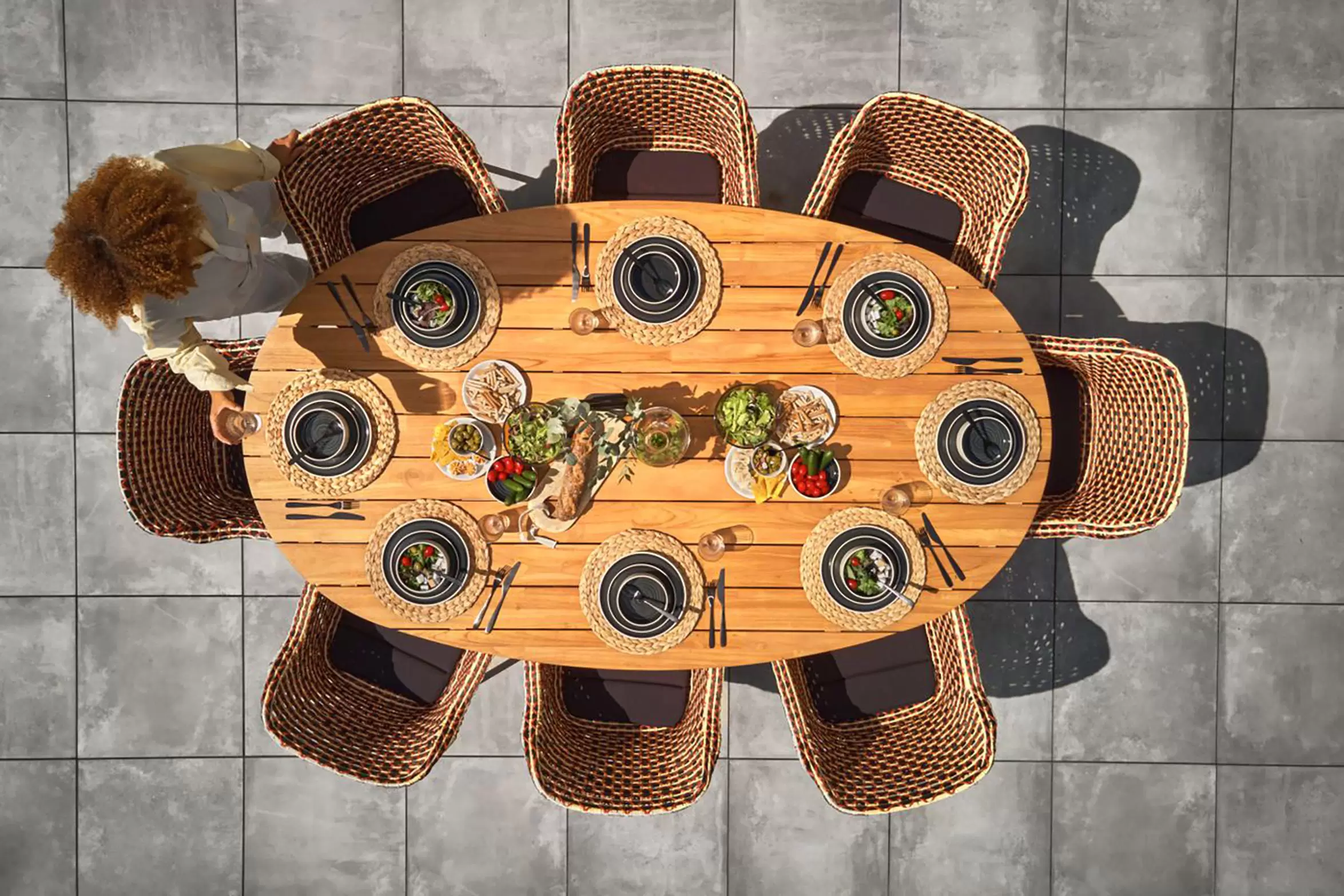 Elegancki i solidny stół wykonany z drewna tekowego i aluminium. wietnie będzie wyglądać z każdym krzesłem z kolekcji Hartman.
