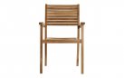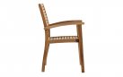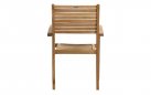 Konstrukcja w całości z drewna teakowego pochodzącego z certyfikowanych plantacji (SVLK). Teak naturalnie opiera się wilgoci, promieniowaniu UV i zmiennym temperaturom, dzięki czemu krzesło zachowuje trwałość i stabilność przez wiele sezonów użytkowania na zewnątrz.