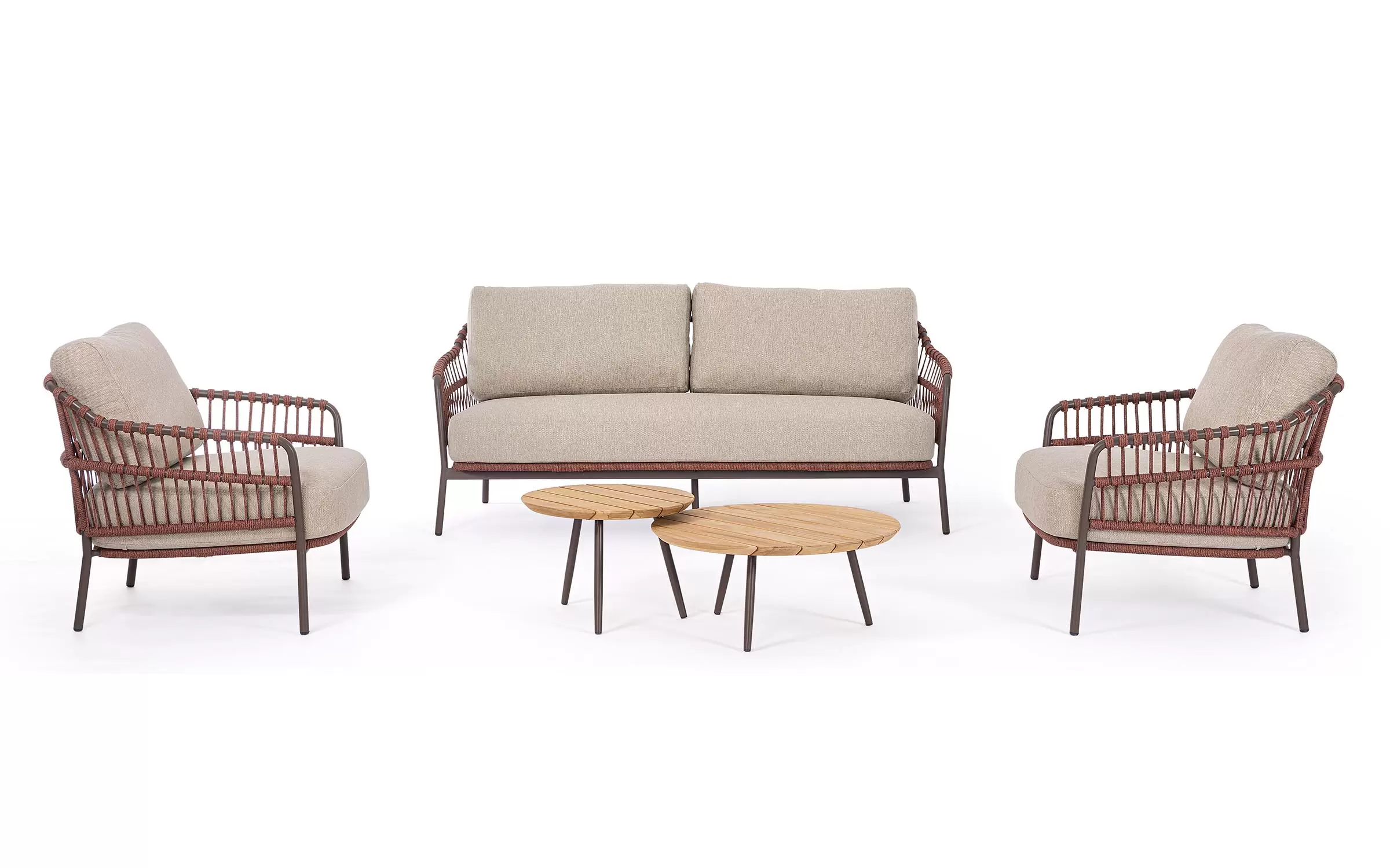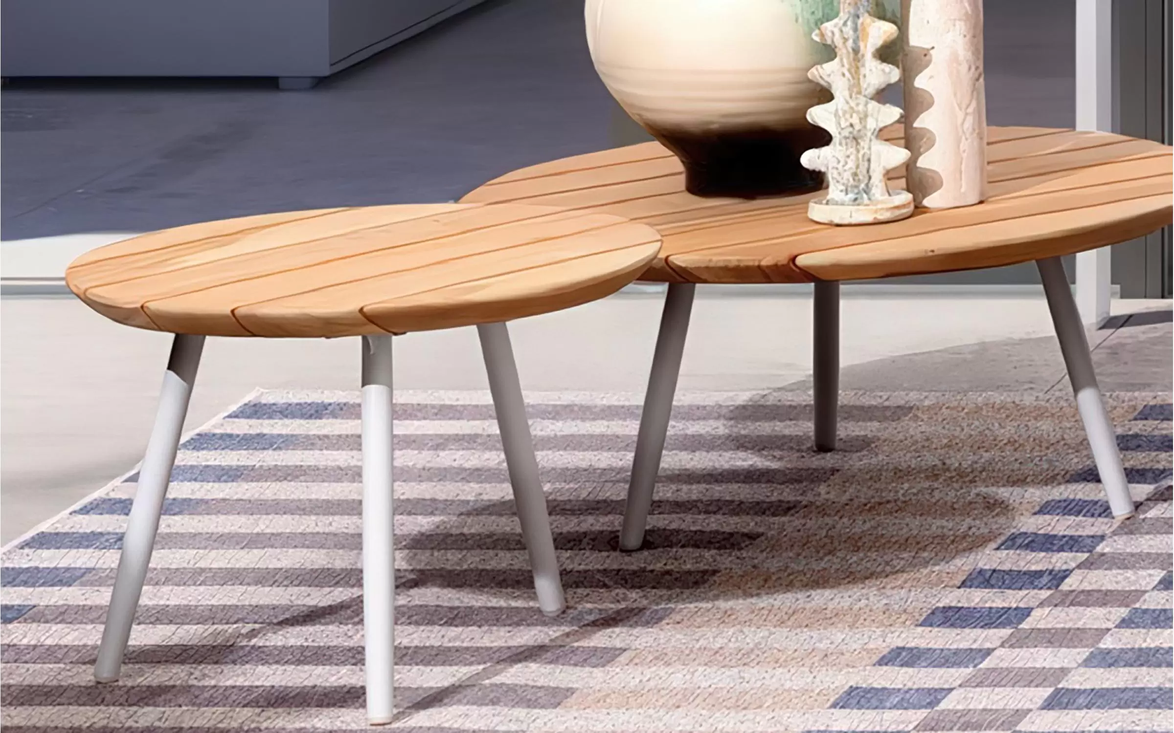 Zestaw dwóch stolików na taras z blatami teak TALAIA