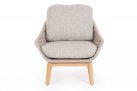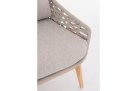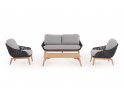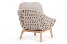 Luksusowe meble ogrodowe na taras. Mix nowoczesnych materiałów z podstawą w klasycznym teaku. Oparcie o konstrukcji aluminiowej z plecionką z liny polipropylenowej. Poduszki szybkoschnące z poszewkami z materiału Olefin.