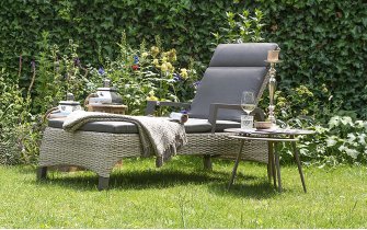 Siedzisko i oparcie z wodoodporną pianką tapicerską oraz obiciem z materiału Olefin wodoodpornego i odpornego na UV.