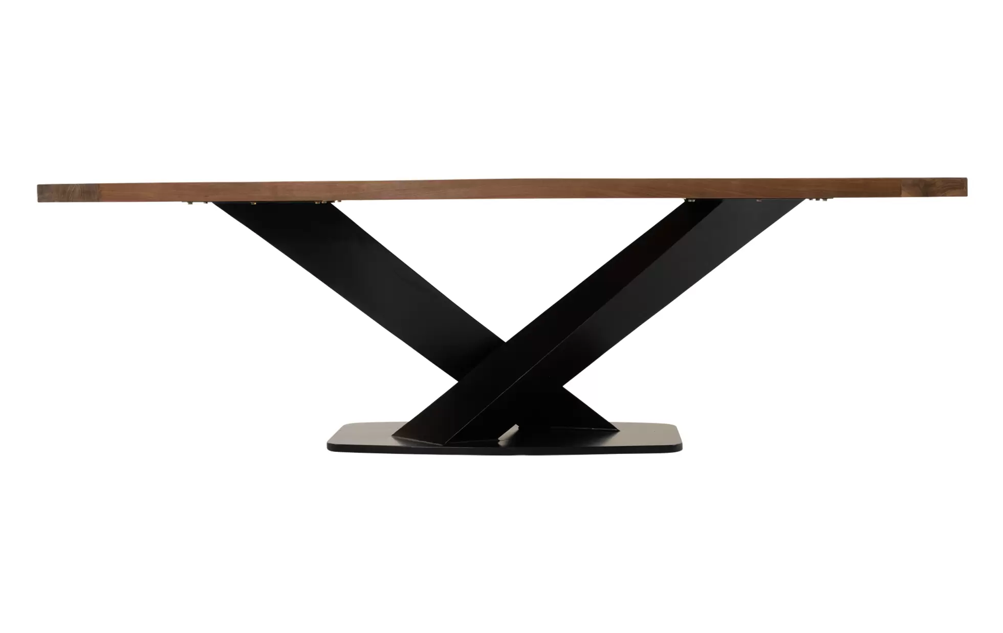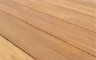 Blat stołu z kompozytu drewnianego o wyglądzie drewna teakowego.