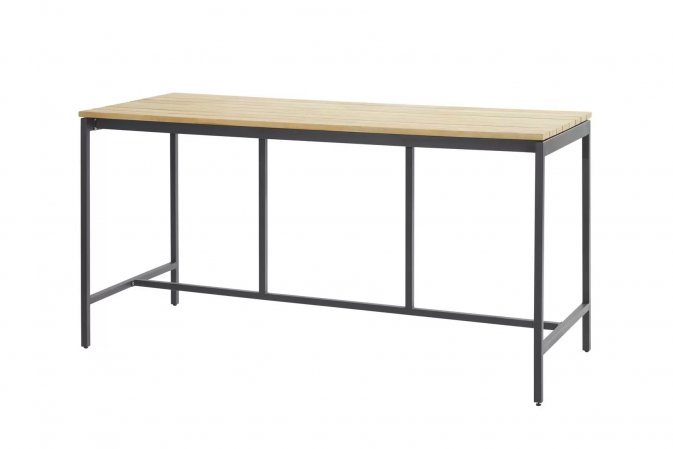 Blat stołu wykonany jest z drewna tekowego. Po obróbce wszystkie pory są zamknięte i na przykład w drewnie szklanki nie będą już pojawiać się zacieki wilgoci.