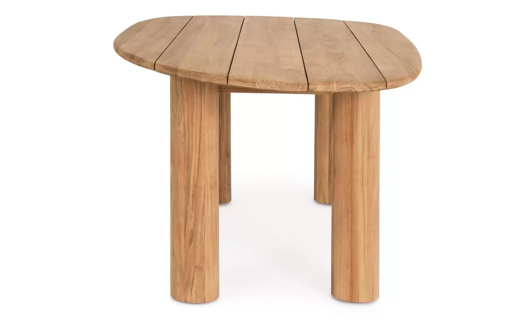Projekt opiera się na wykorzystaniu szlachetnego drewna teakowego w jego najczystszej postaci, co pozwala wyeksponować bogate usłojenie i ciepłą kolorystykę surowca. Masywna konstrukcja wsparta na cylindrycznych, monumentalnych nogach zapewnia nie tylko wyjątkową stabilność, ale również podkreśla prestiżowy wygląd mebla. Każdy detal, od płynnych linii blatu po precyzyjne łączenia, został dopracowany tak, aby zaspokoić oczekiwania miłośników najwyższej jakości rzemiosła.