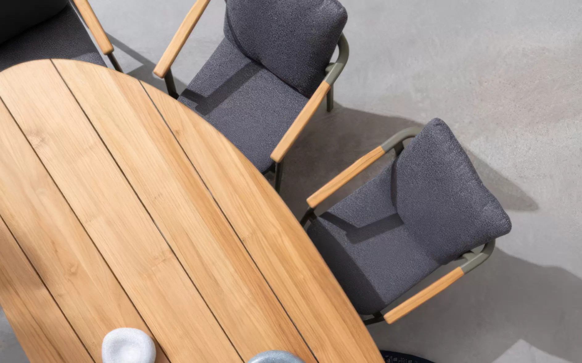 Stół ogrodowy TITUS to kwintesencja luksusu w wydaniu organicznym, stanowiąca doskonałą symbiozę natury i nowoczesnego wzornictwa. Jego najbardziej spektakularnym elementem jest asymetryczny blat o obłych kształtach, którego forma nawiązuje do naturalnie wygładzonych kamieni rzecznych. Ten rzeźbiarski design sprawia, że stół przestaje być jedynie meblem użytkowym, a staje się centralnym punktem aranżacji, nadając tarasom i ogrodom unikalny charakter klasy premium.