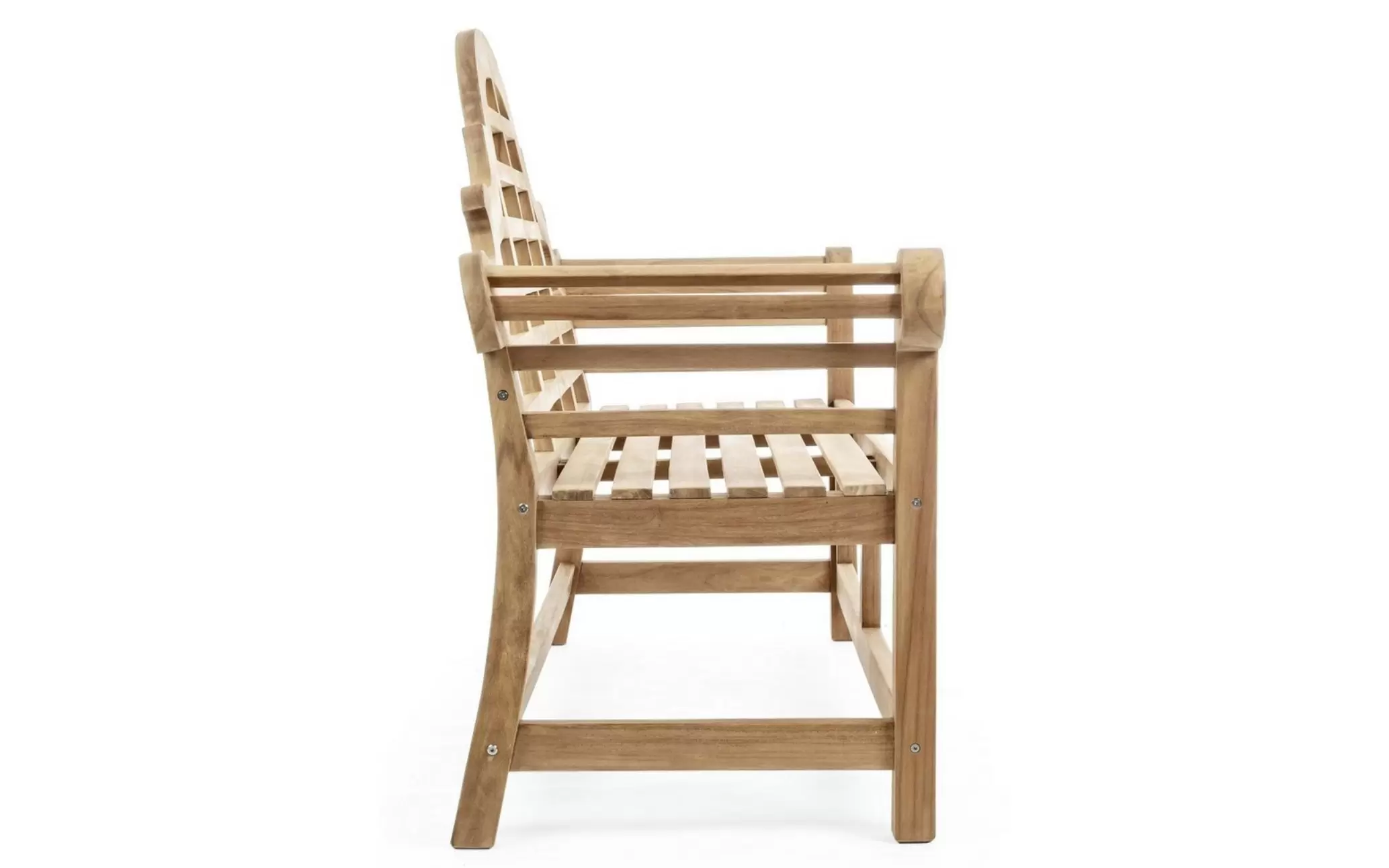 VERADERO to klasyczna ławka ogrodowa wykonana z litego drewna teak FSC 100%. Jej elegancka forma, wysokie oparcie oraz wygodne podłokietniki sprawiają, że doskonale sprawdza się w ogrodach, na tarasach, przy wejściach do domów oraz w przestrzeniach reprezentacyjnych.