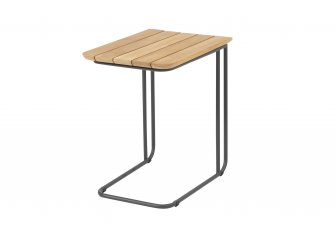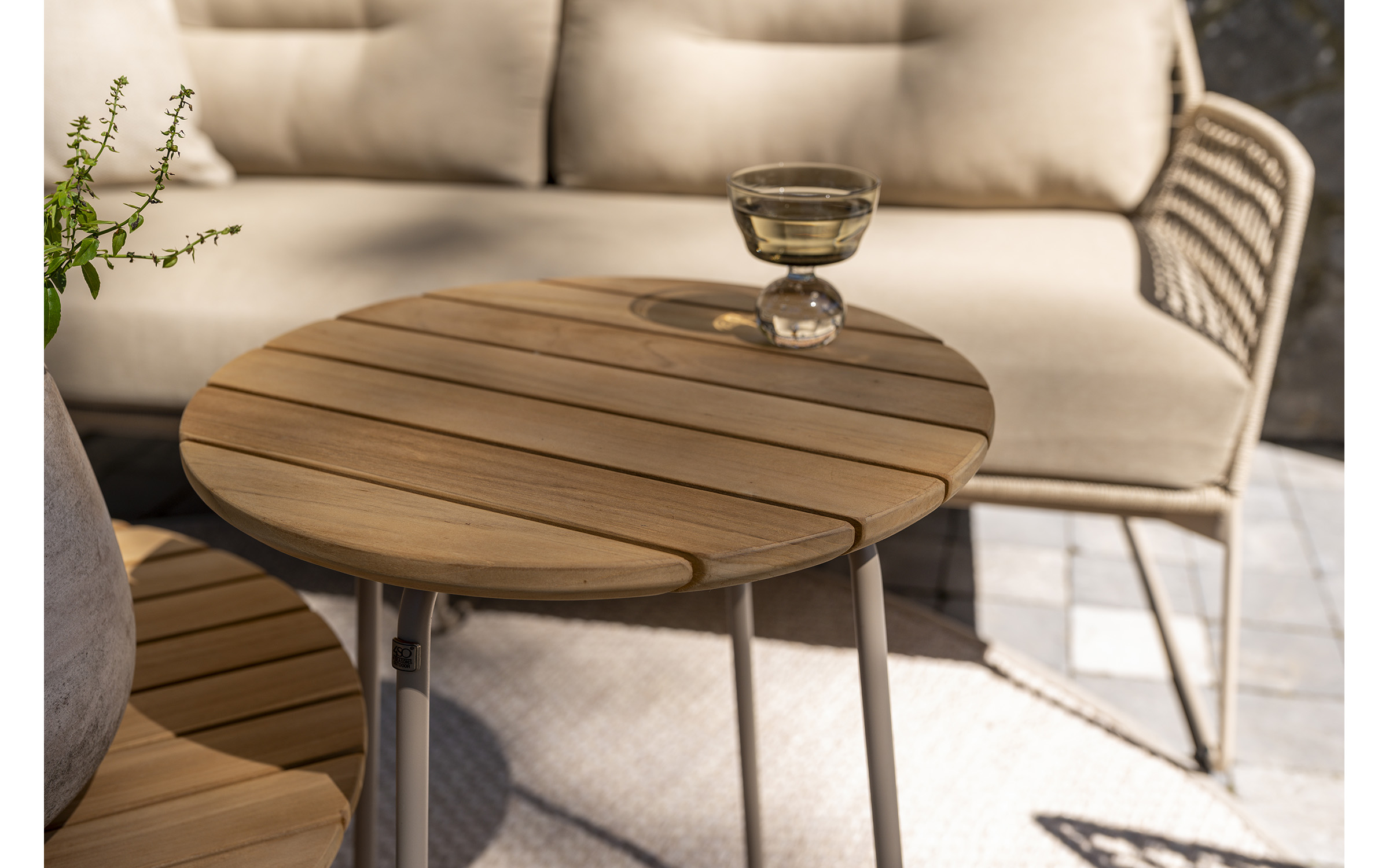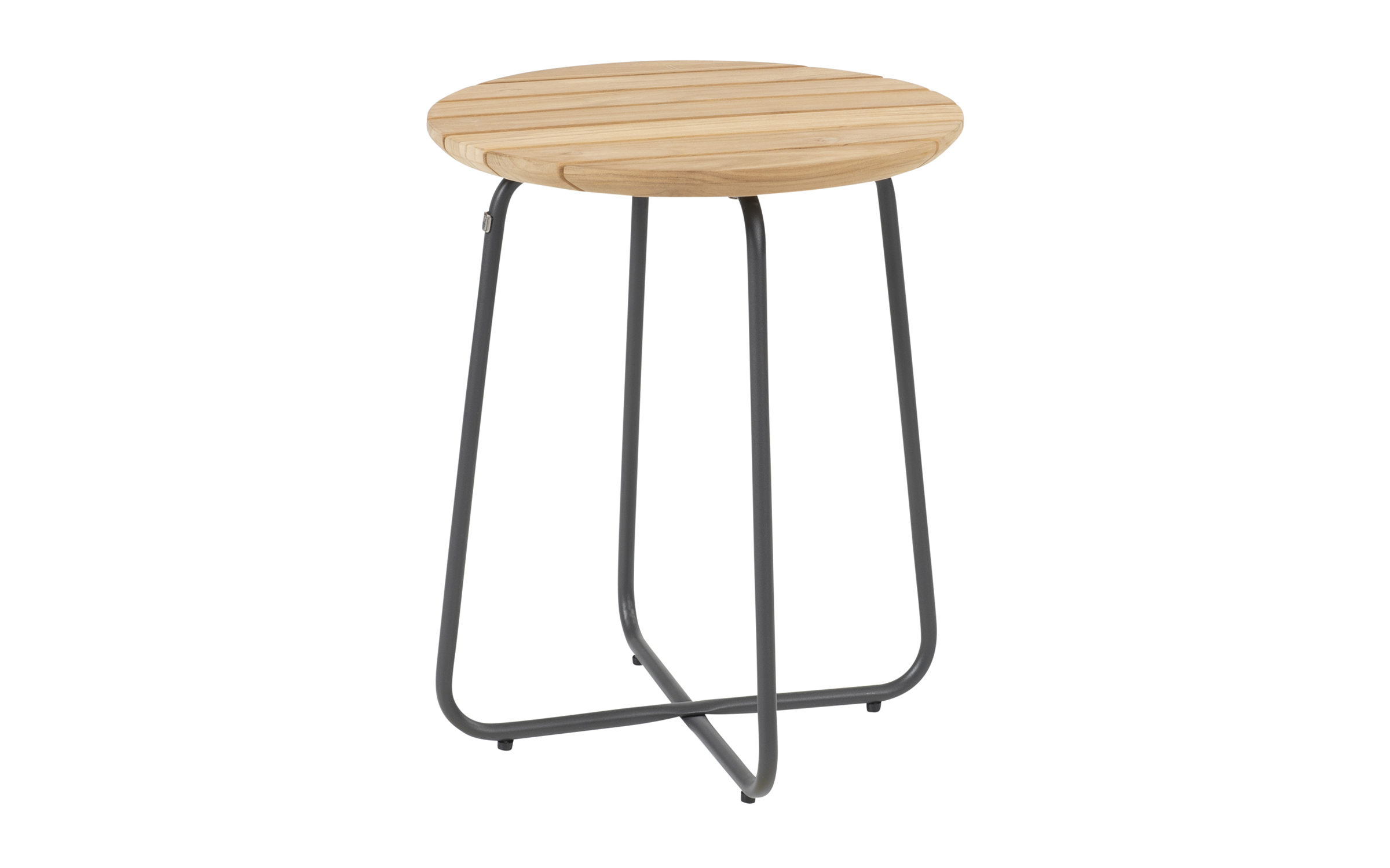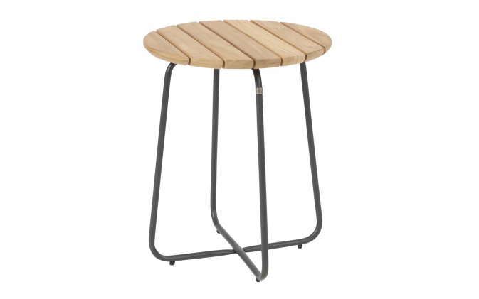 Okrągły stolik boczny Ø45 cm na taras VERDI 4SO podstaw stal blat teak | Dekkor