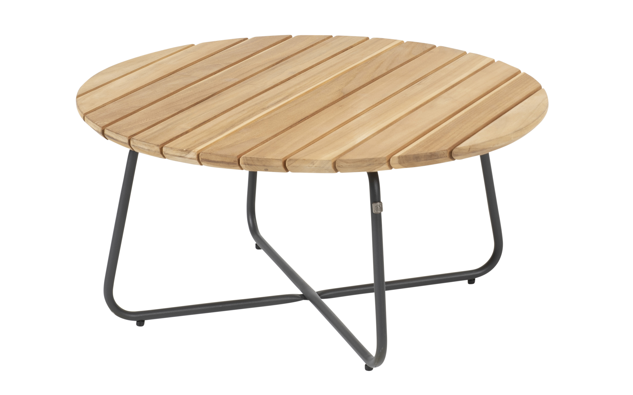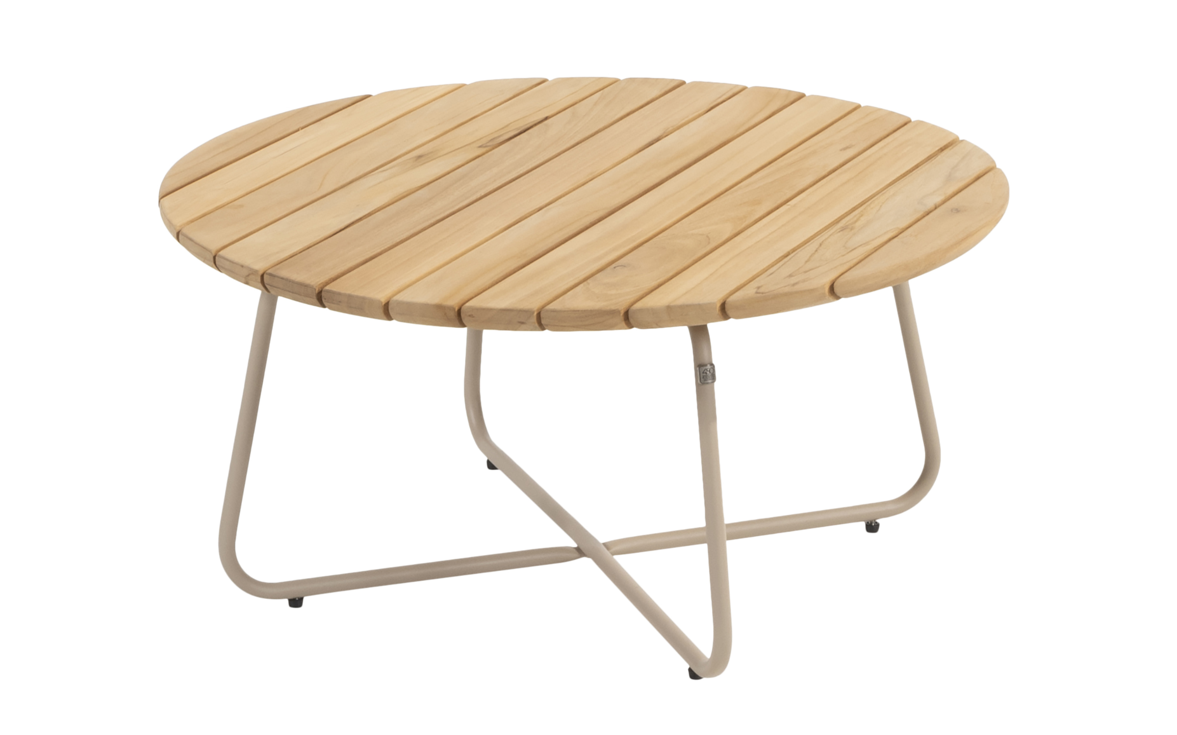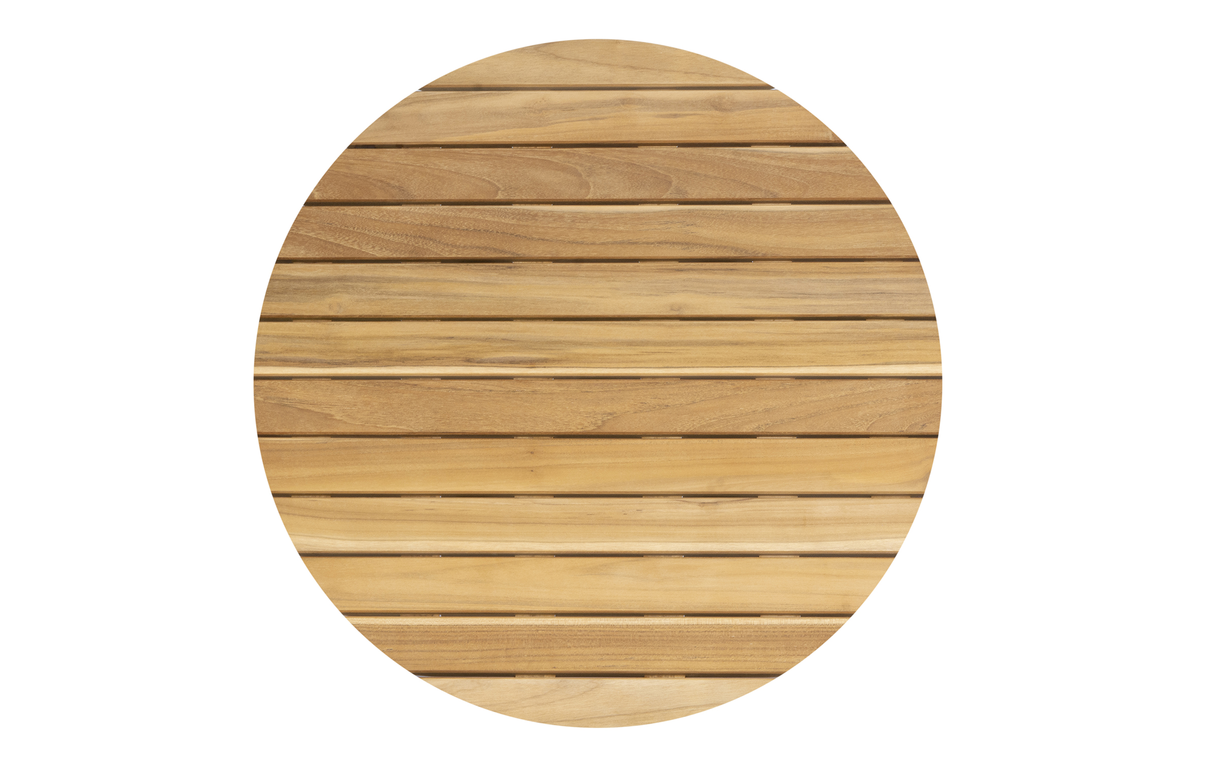 Stylowy i wytrzymały stolik Verdi posiada podstawę ze stali nierdzewnej z warstwą farby proszkowej oraz blat z drewna tekowego o średnicy 73 cm. Stół ma 35 cm wysokości.