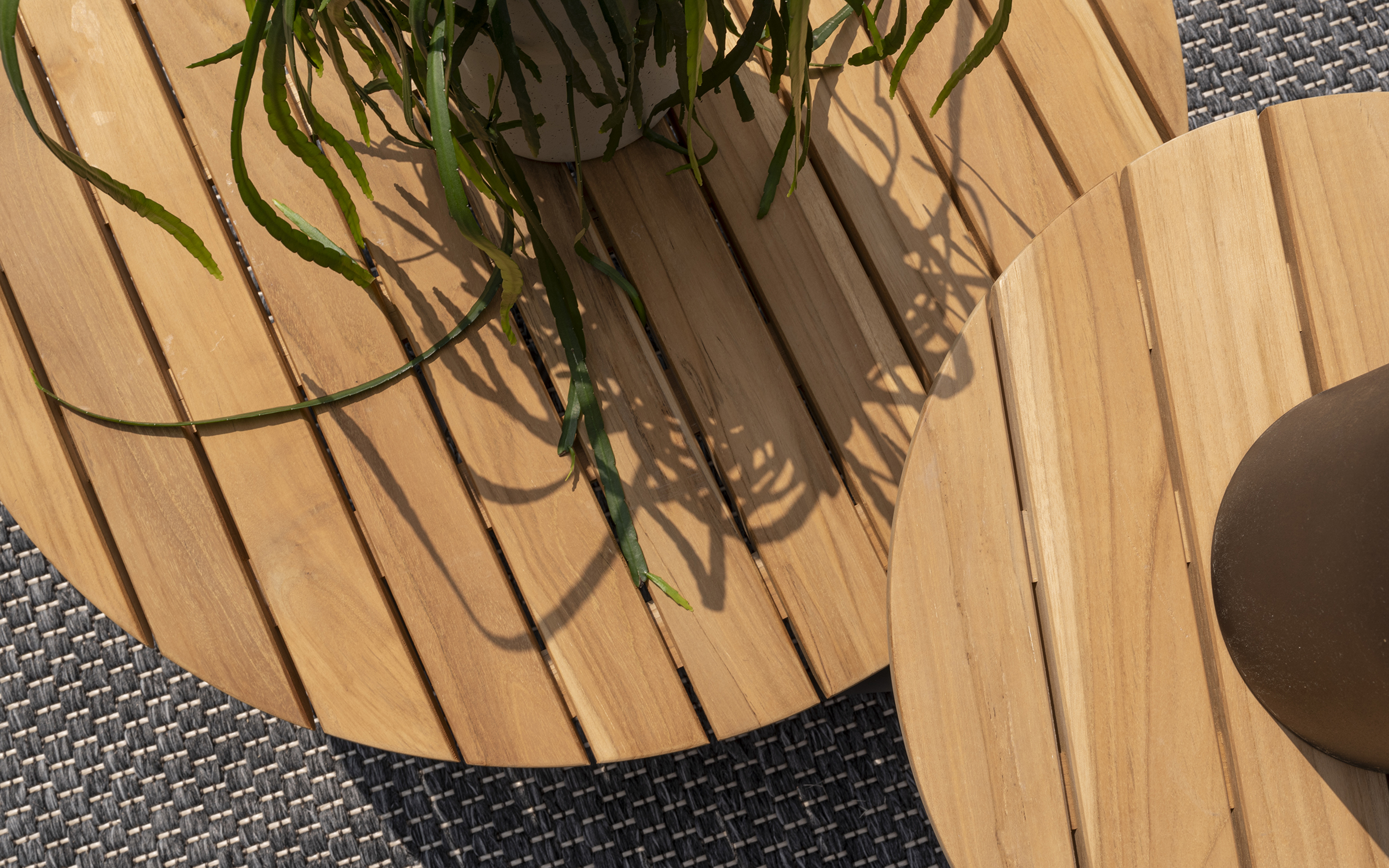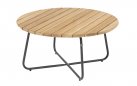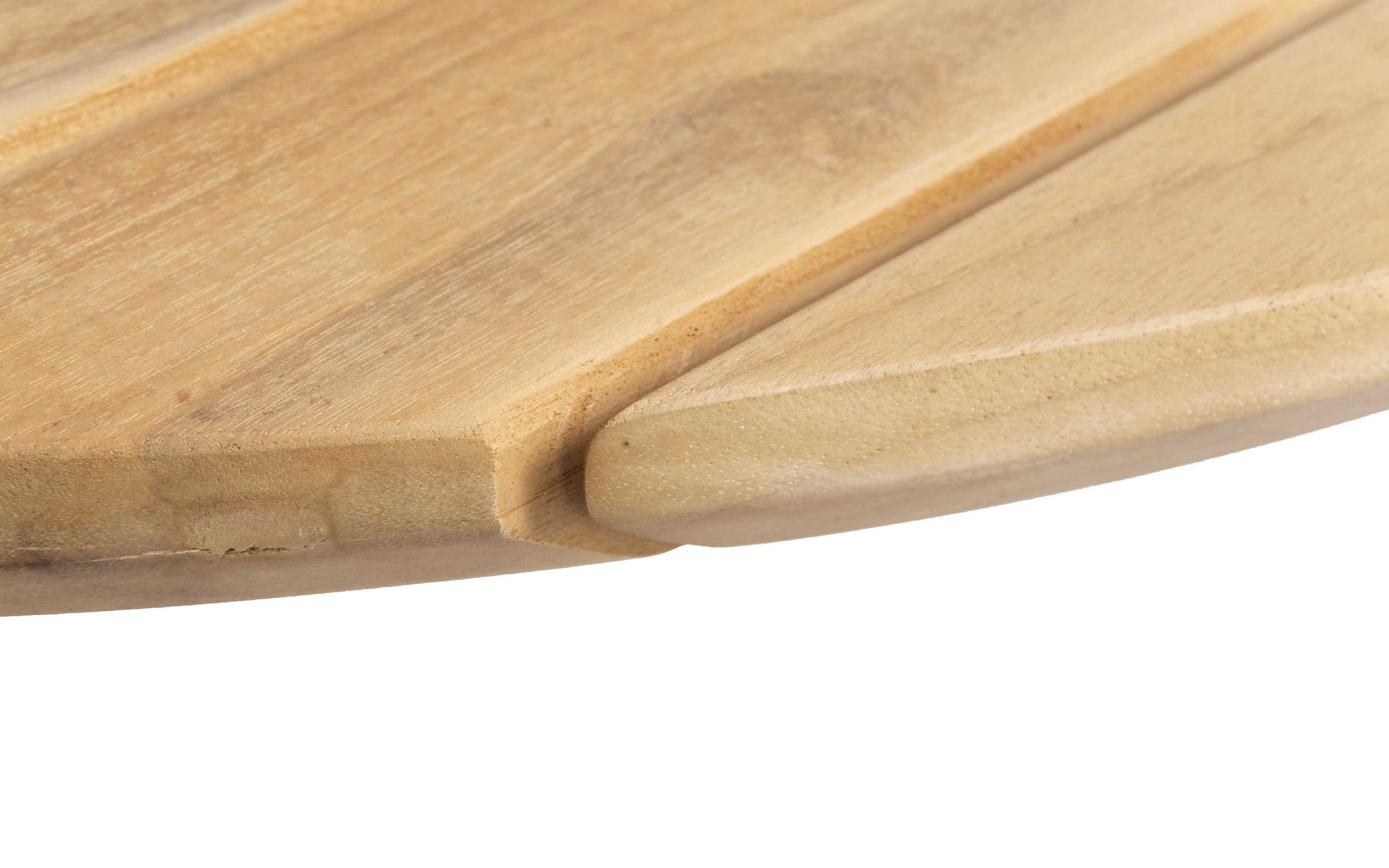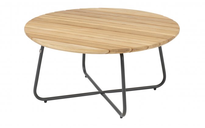 Stylowy i wytrzymały stolik Verdi posiada podstawę ze stali nierdzewnej z warstwą farby proszkowej oraz blat z drewna tekowego o średnicy 73 cm. Stół ma 35 cm wysokości.