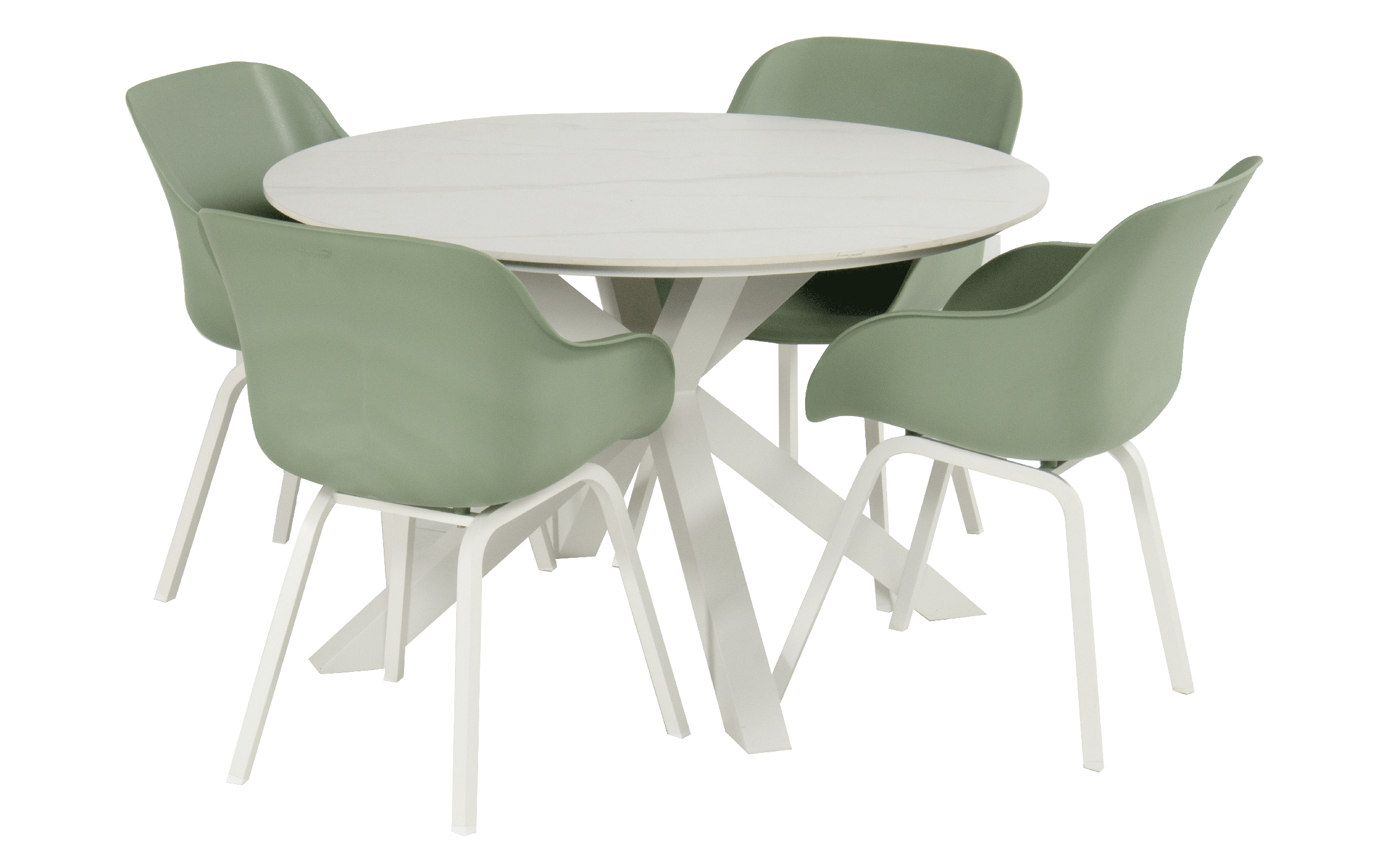 Konstrukcja: aluminium malowane proszkowo — odporne na korozję. Blat: ceramika — materiał trwały, łatwy w czyszczeniu i odporny na warunki atmosferyczne. Mebel ogrodowy idealny do całorocznego użytkowania.