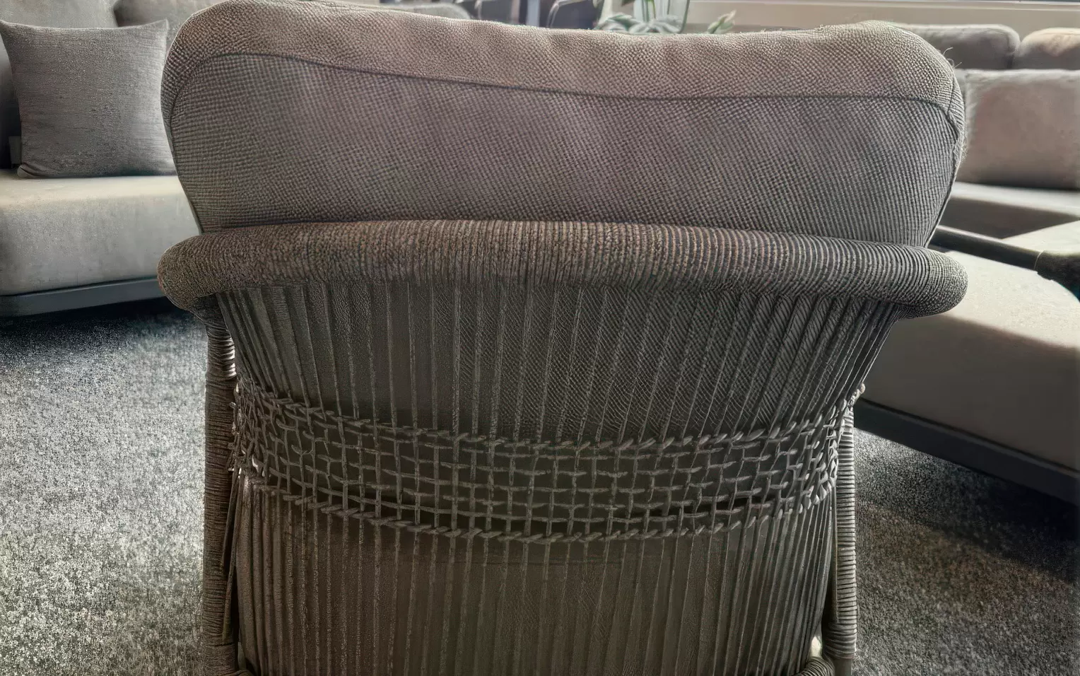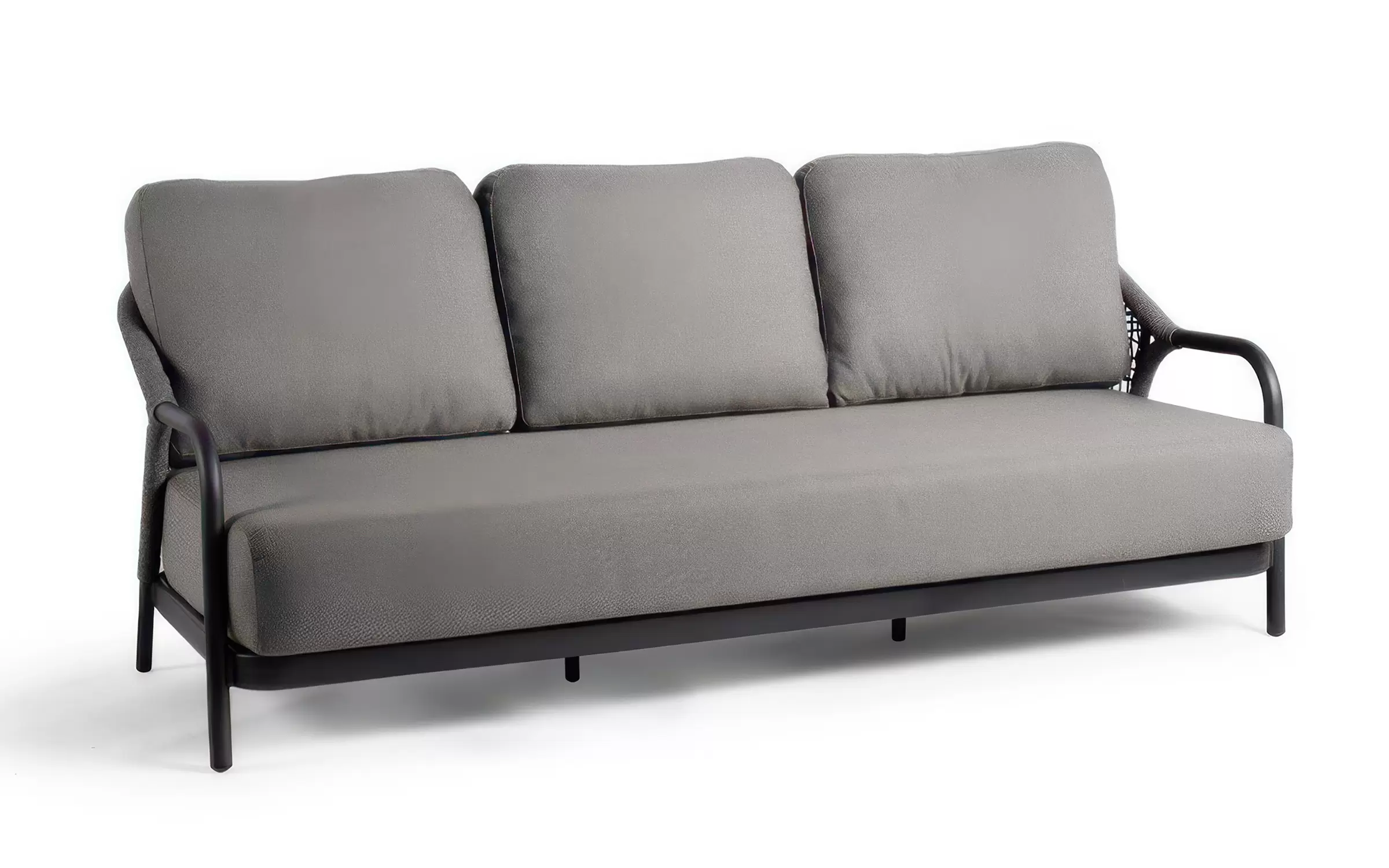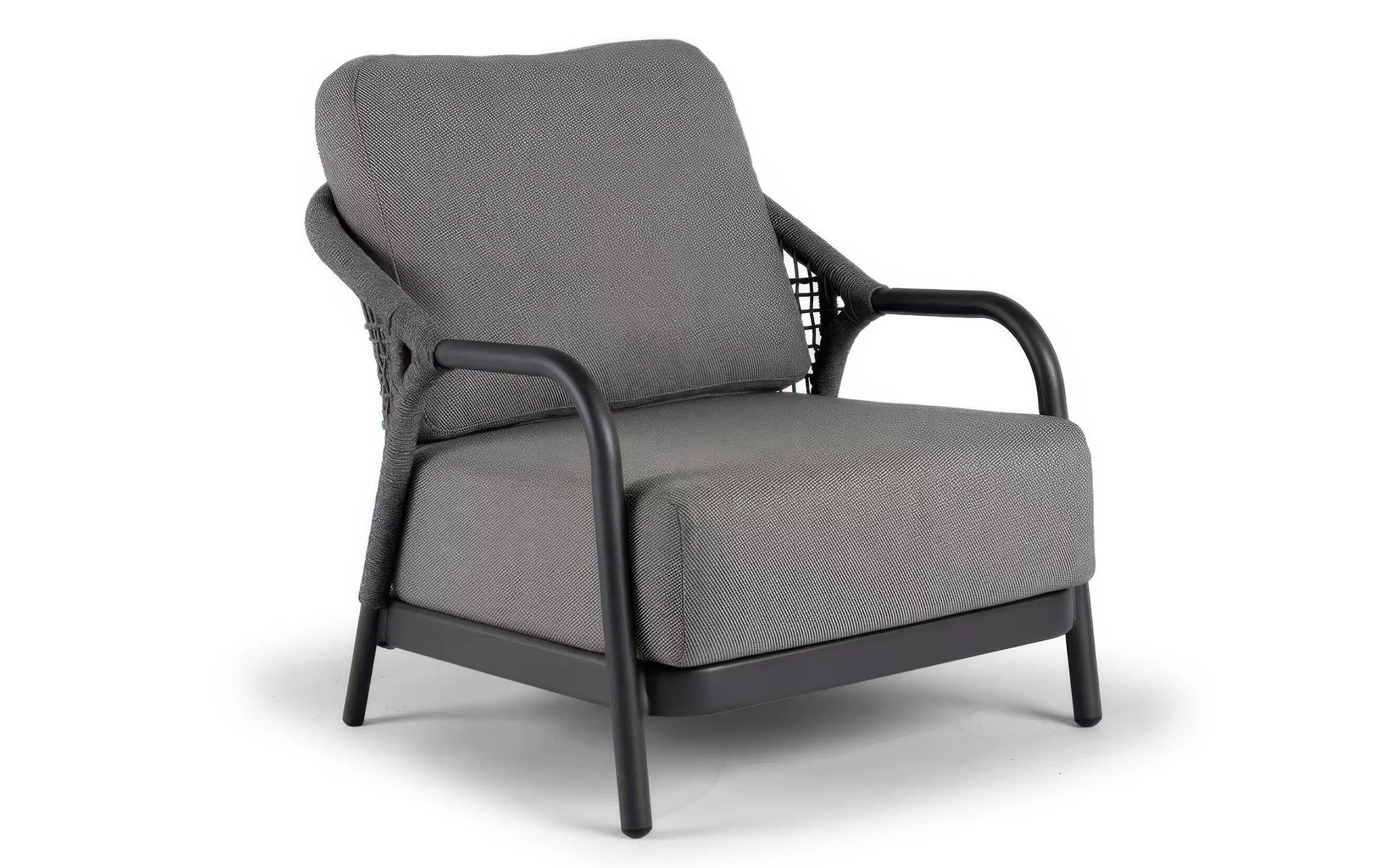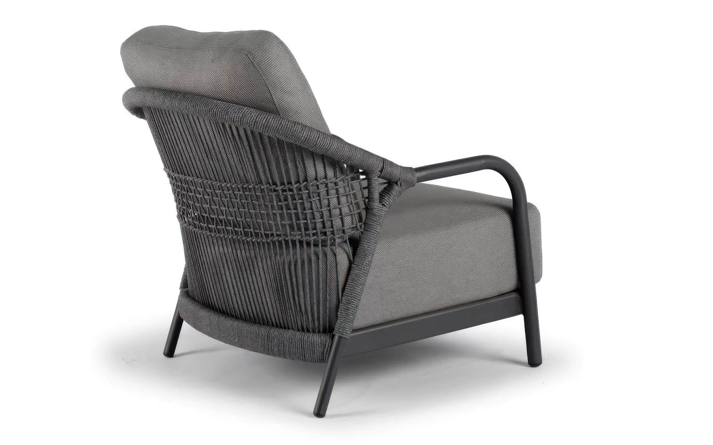 Zestaw wypoczynkowy ogrodowy FIONA to harmonijne połączenie subtelnej elegancji i współczesnej lekkości. Jego znakiem rozpoznawczym są płynne, zaoblone linie oraz kunsztowne sploty liny technicznej zdobiące boki i oparcia, które nadają całości unikalny, rzeźbiarski wyraz. Ażurowa konstrukcja sprawia, że meble prezentują się niezwykle lekko, nie tracąc przy tym nic ze swojego komfortu.