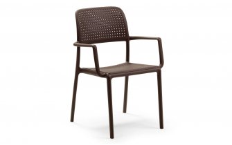 Konstrukcja podstawy z drewna teakowego oraz formowana skorupa z polipropylenu o wysokiej odporności na UV i wilgoć. Powierzchnie są łatwe w pielęgnacji i przystosowane do długotrwałego użytkowania jako meble ogrodowe i meble na taras.
