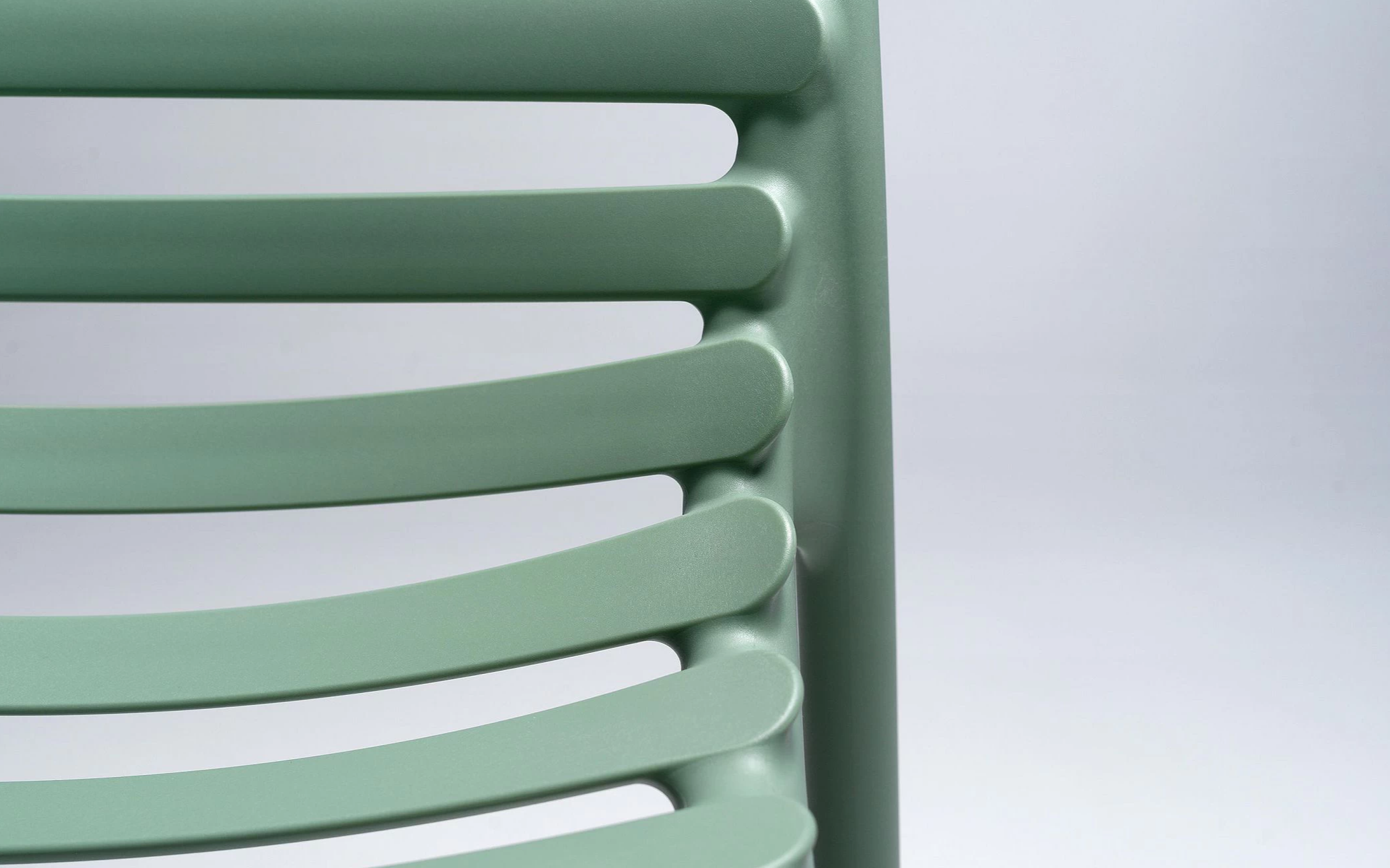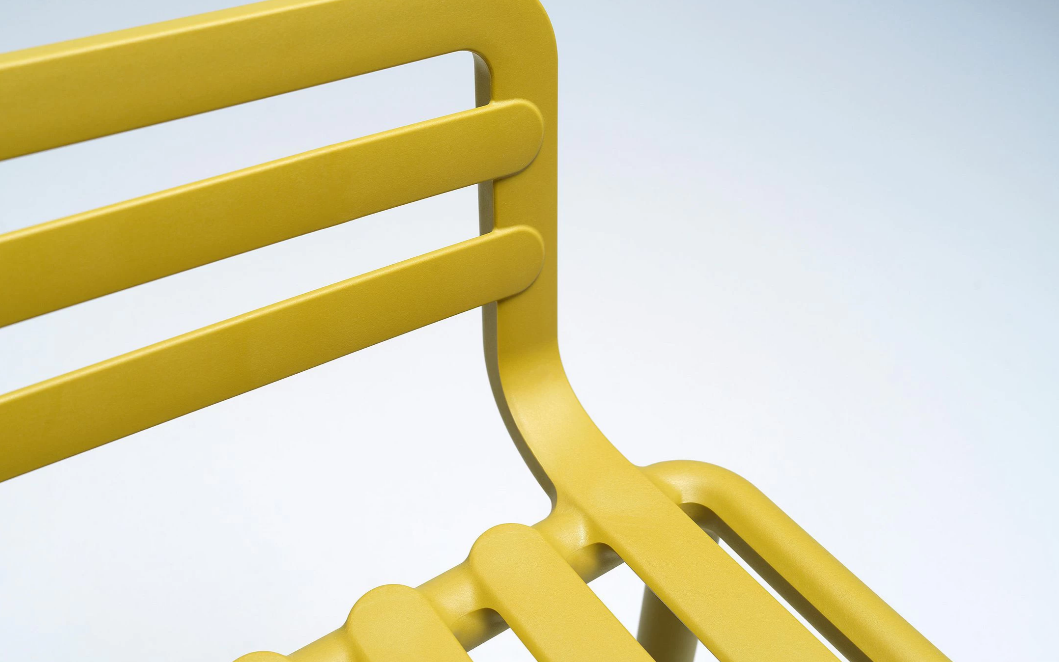 Sztaplowany fotel wykonany z polipropylenu wzmocnionego włóknem szklanym z podłokietnikami. Nowoczesna forma i wygodne siedzisko oraz materiały powodują, że może być użytkowana cały rok na zewnątrz. W całości wykonana z włókna szklanego oraz z żywicy syntetycznej (żywica polipropylenowa z dodatkami zabezpieczającymi przed promieniowaniem UV, barwiona w masie).