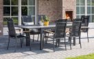 Krzesło ogrodowe ALICE to elegancka i praktyczna propozycja do jadalni zewnętrznej. Aluminiowa rama w kolorze antracytowym, siedzisko i oparcie z napiętej tekstyliny oraz podłokietniki z naturalnego drewna teak tworzą wygodną i trwałą konstrukcję. Krzesło jest lekkie, odporne na warunki atmosferyczne i można je sztaplować, co ułatwia przechowywanie.