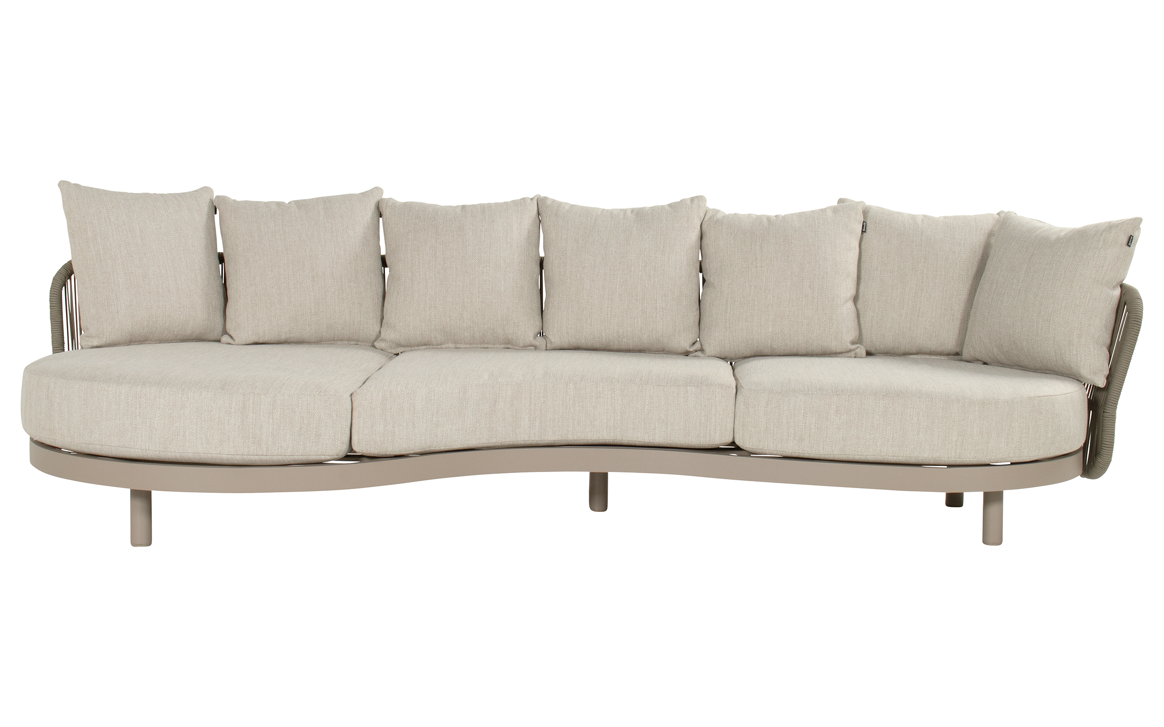 Sofa BJORN marki Hartman łączy nowoczesne linie z organicznymi kształtami. Lekka rama aluminiowa i wytrzymały splot rope zapewniają odporność na warunki zewnętrzne i komfort użytkowania. W zestawie miękkie poduszki siedziskowe i oparciowe.