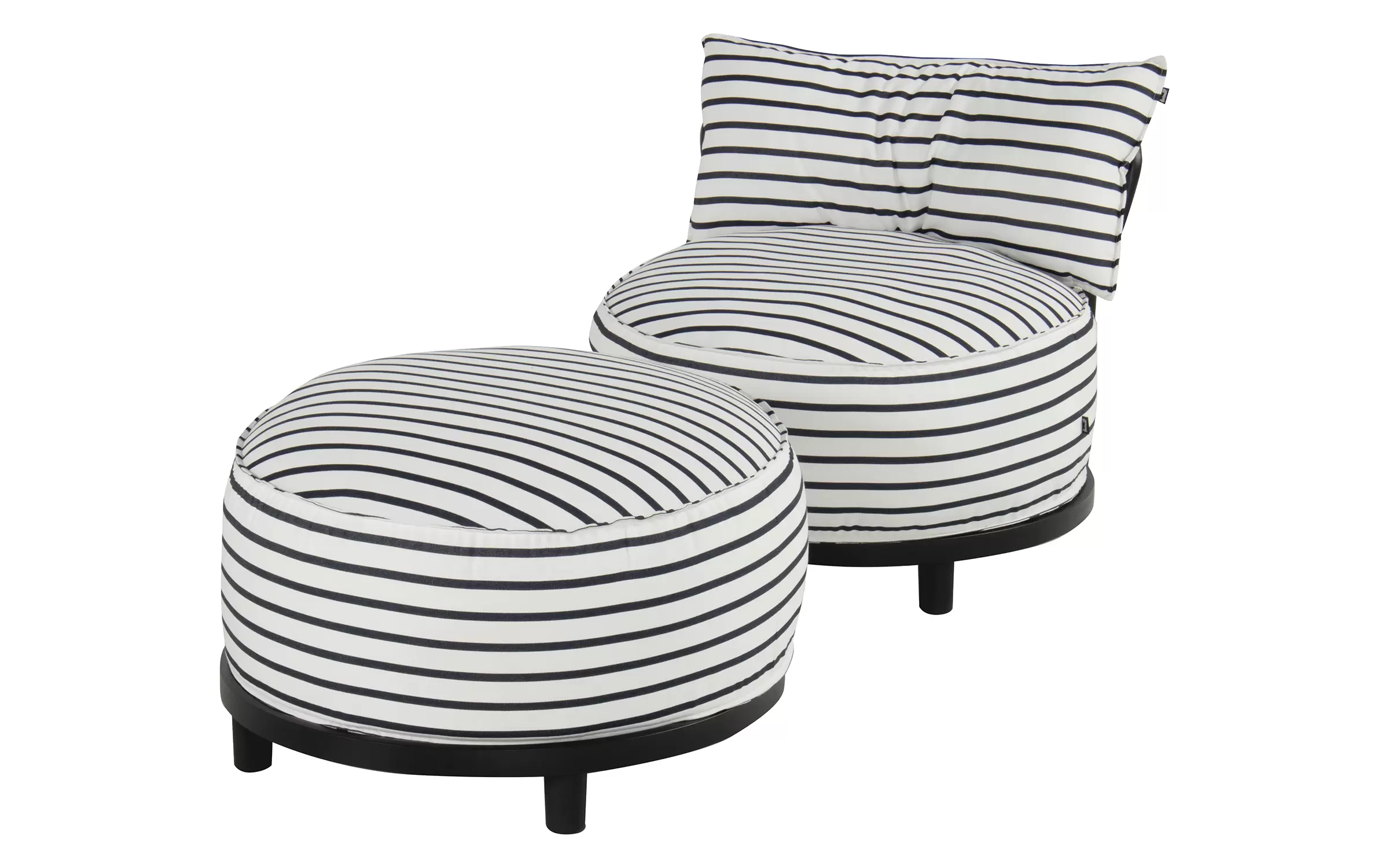 W kolekcji Emma znajduje się łóżko podwójne ogrodowe, okrągłe łóżko ogrodowe, fotel okrągły i podnóżek.