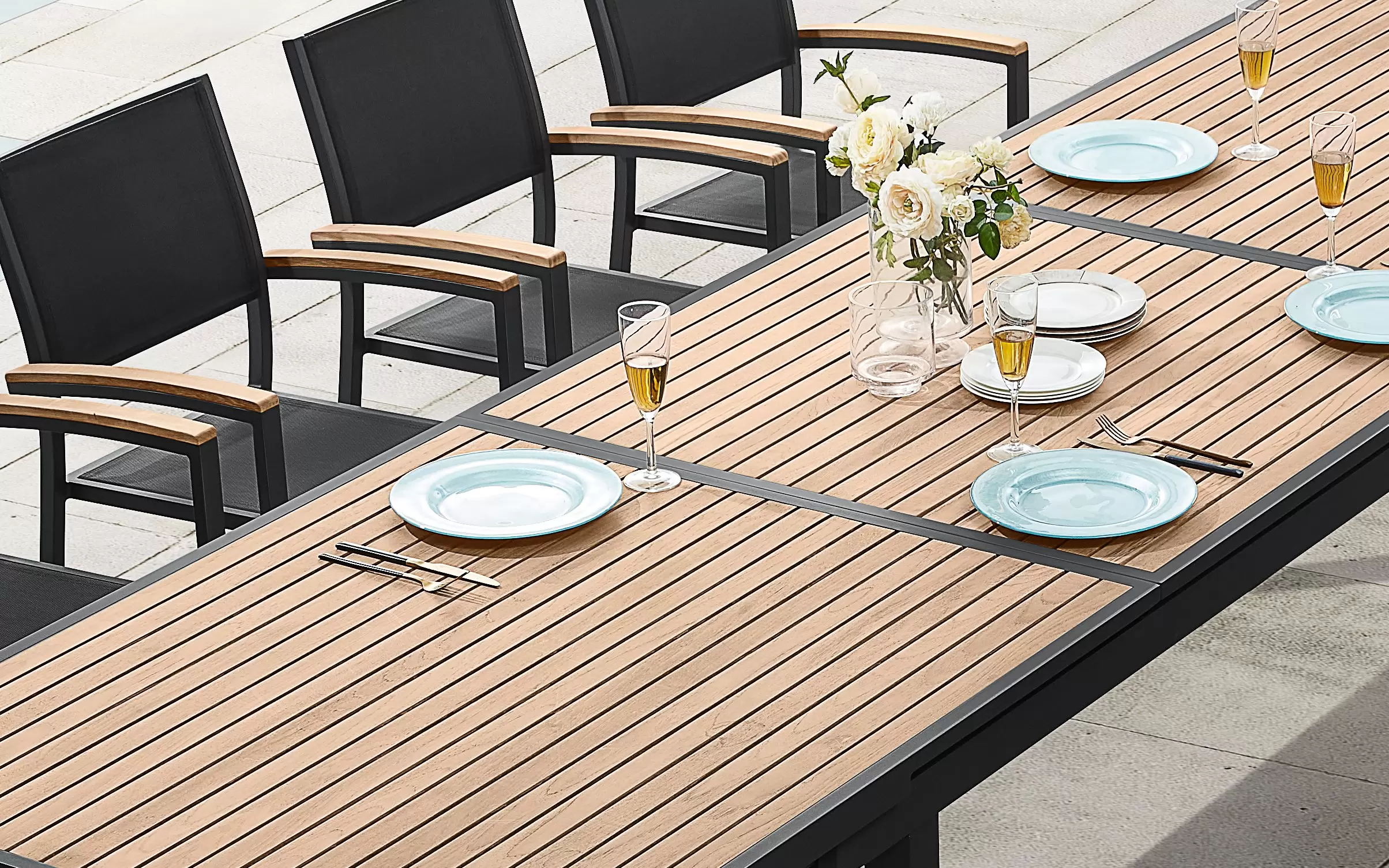 Zestaw Heck 2.0 tworzy komfortową i estetyczną przestrzeń jadalnianą, idealną do ogrodu, na taras lub patio.