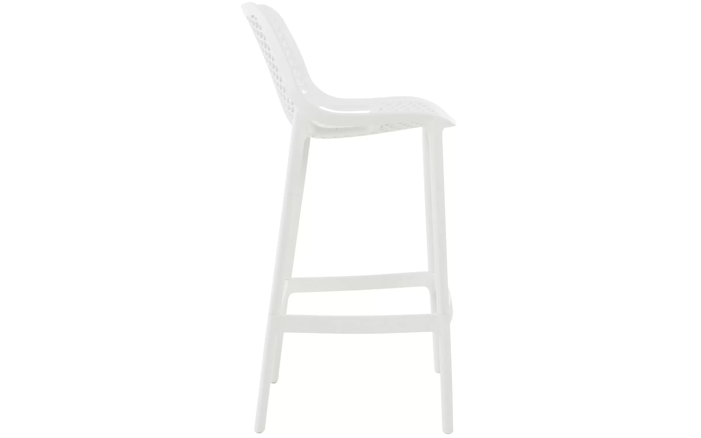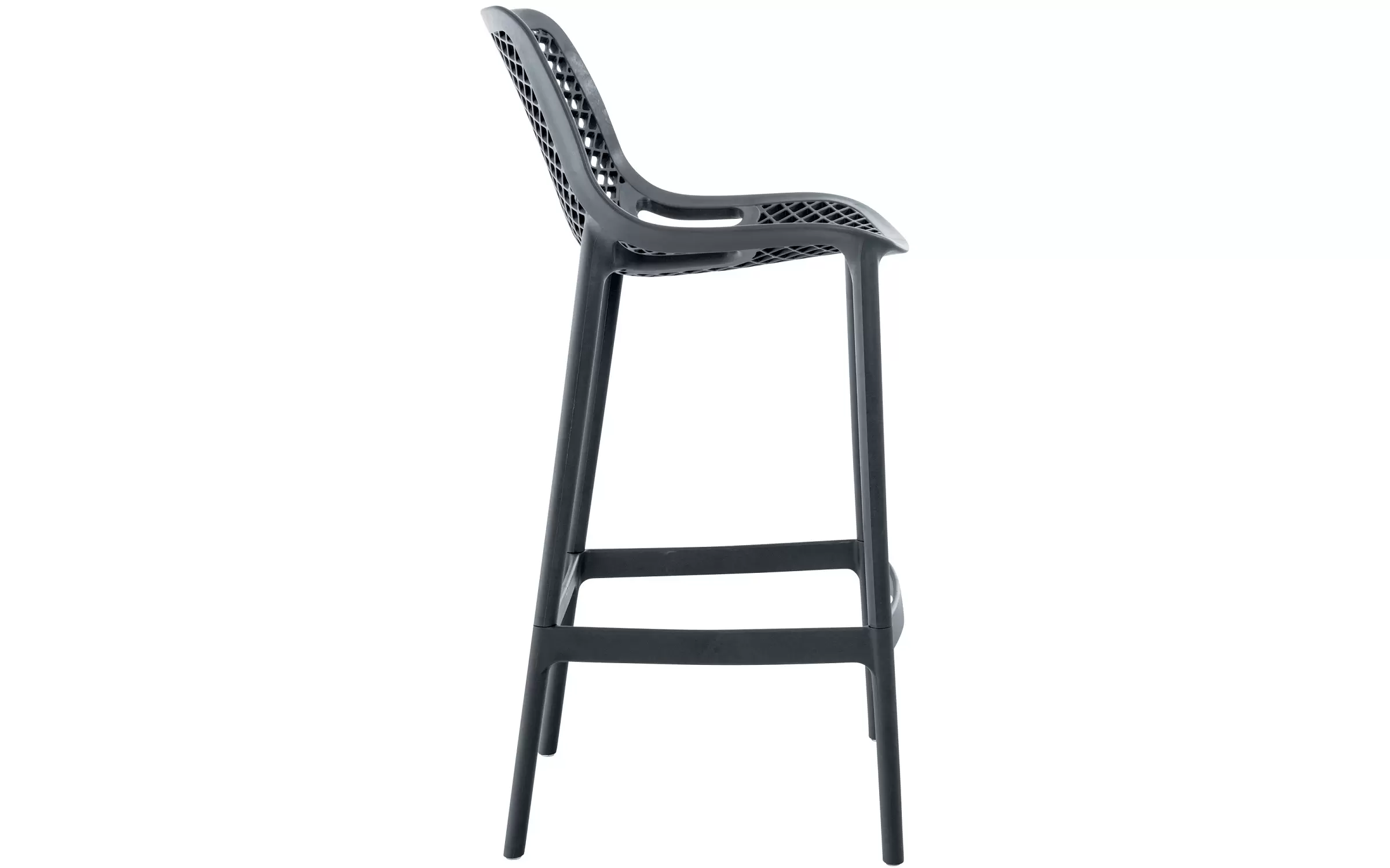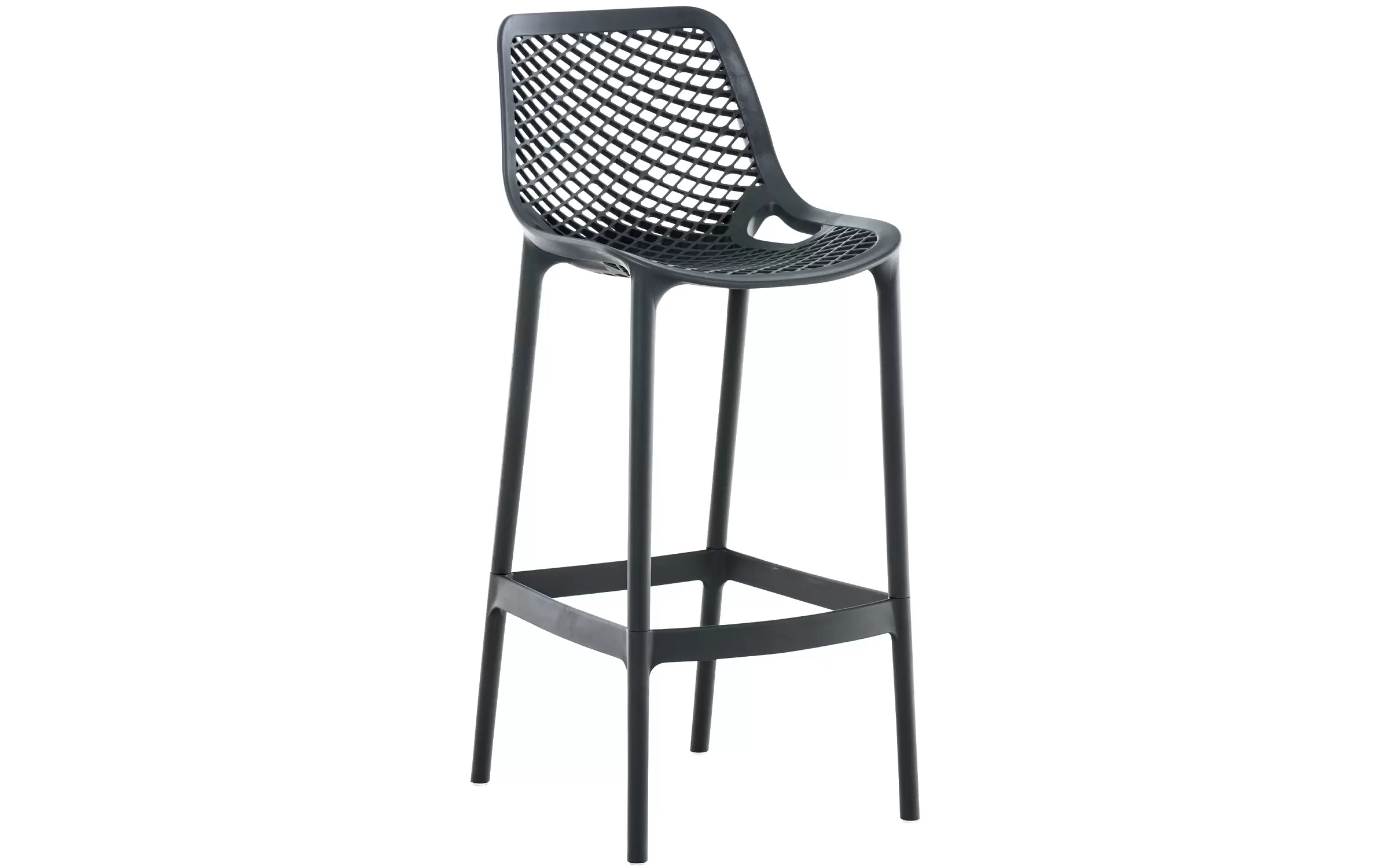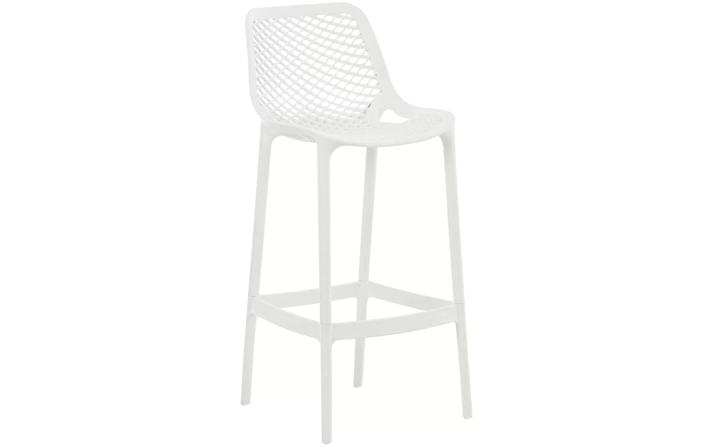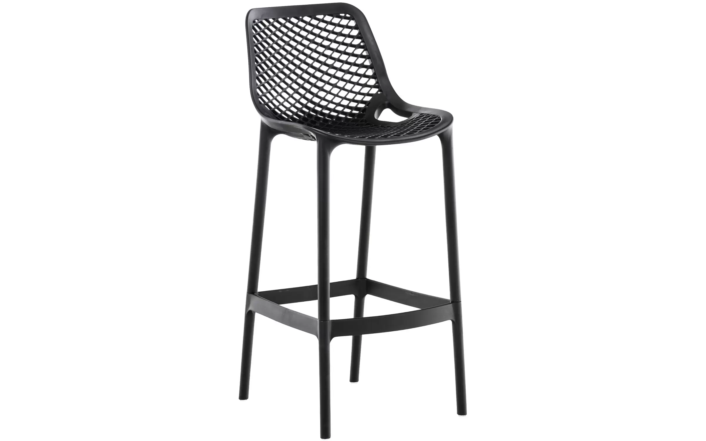 Hoker barowy Air zachwyca nowoczesnym designem i praktycznymi funkcjami. Dzięki minimalistycznemu wyglądowi pasuje do każdego pomieszczenia mieszkalnego i nadaje się zarówno do użytku wewnątrz, jak i na zewnątrz. Stołek wykonany jest z polipropylenu – wysokiej jakości tworzywa sztucznego, które jest wodoodporne i odporne na promieniowanie UV. Nawet częste i intensywne światło słoneczne nie powoduje żółknięcia i blaknięcia plastiku. Głębia koloru mebli zostaje zachowana na długo. Ergonomiczny kształt stołka barowego zapewnia wygodne siedzenie nawet przez kilka godzin. Wysokość siedziska wynosząca 75 cm jest idealna do stosowania na ladach lub ladach. Otaczający podstawę podnóżek zapewnia dodatkowy komfort.