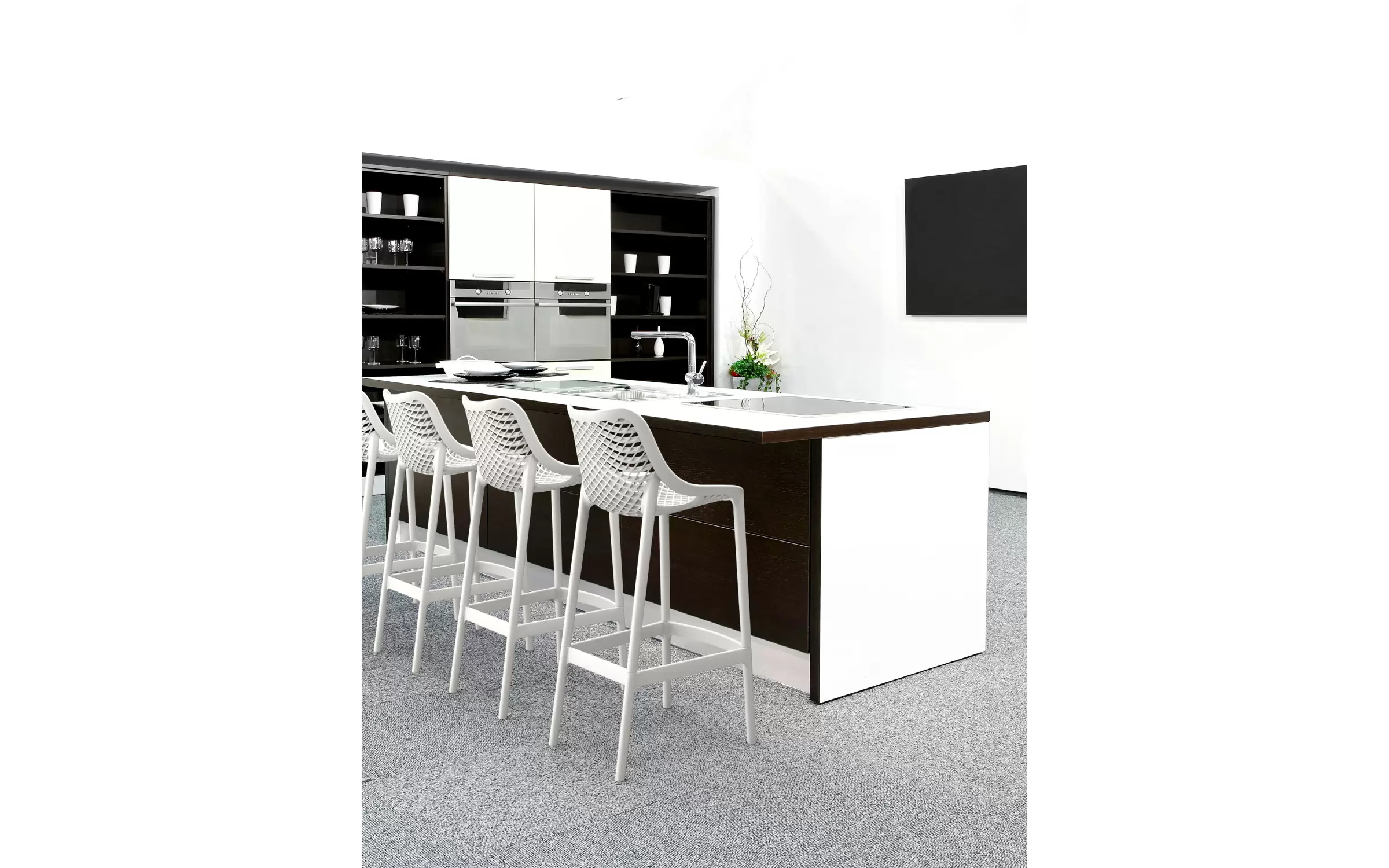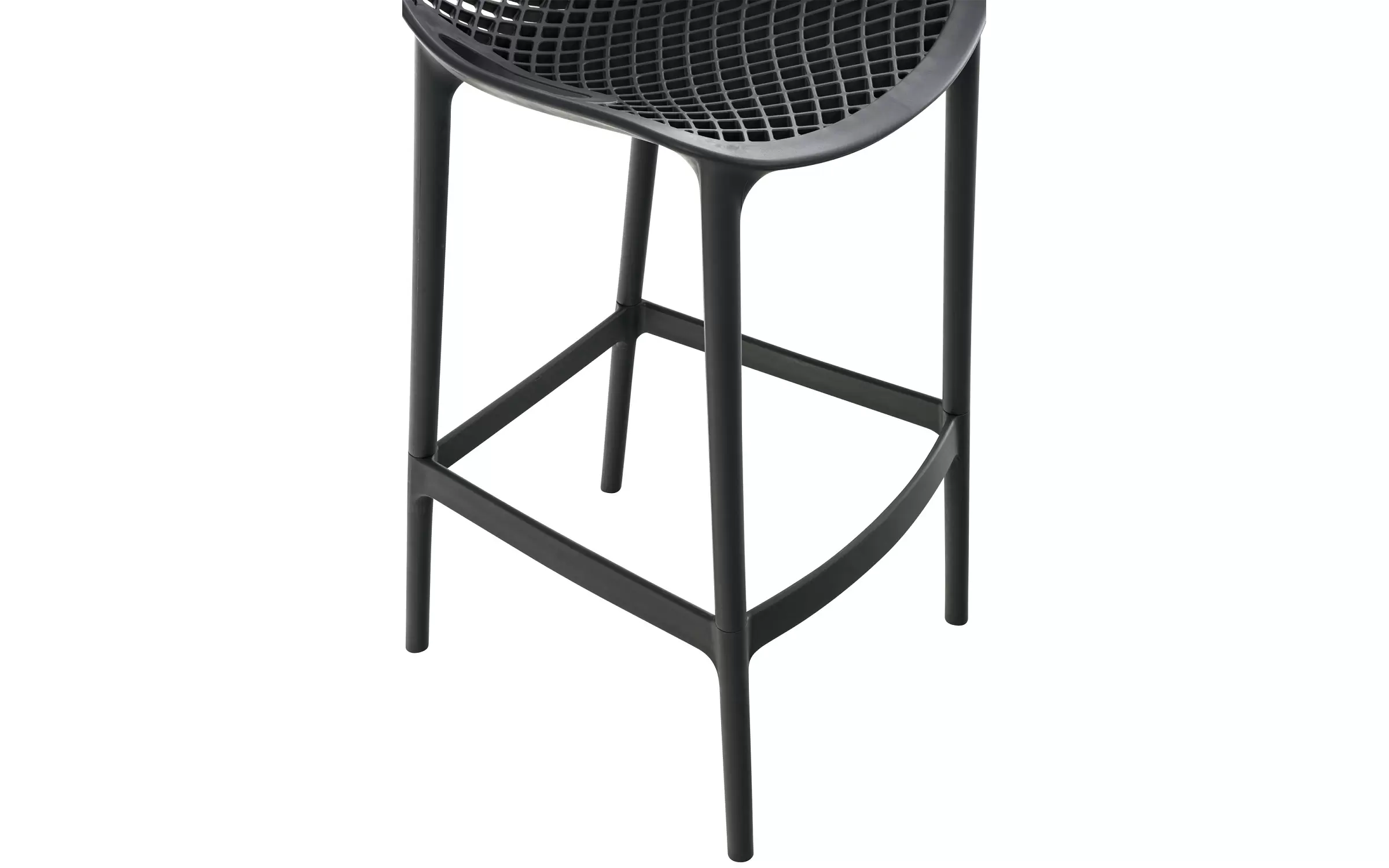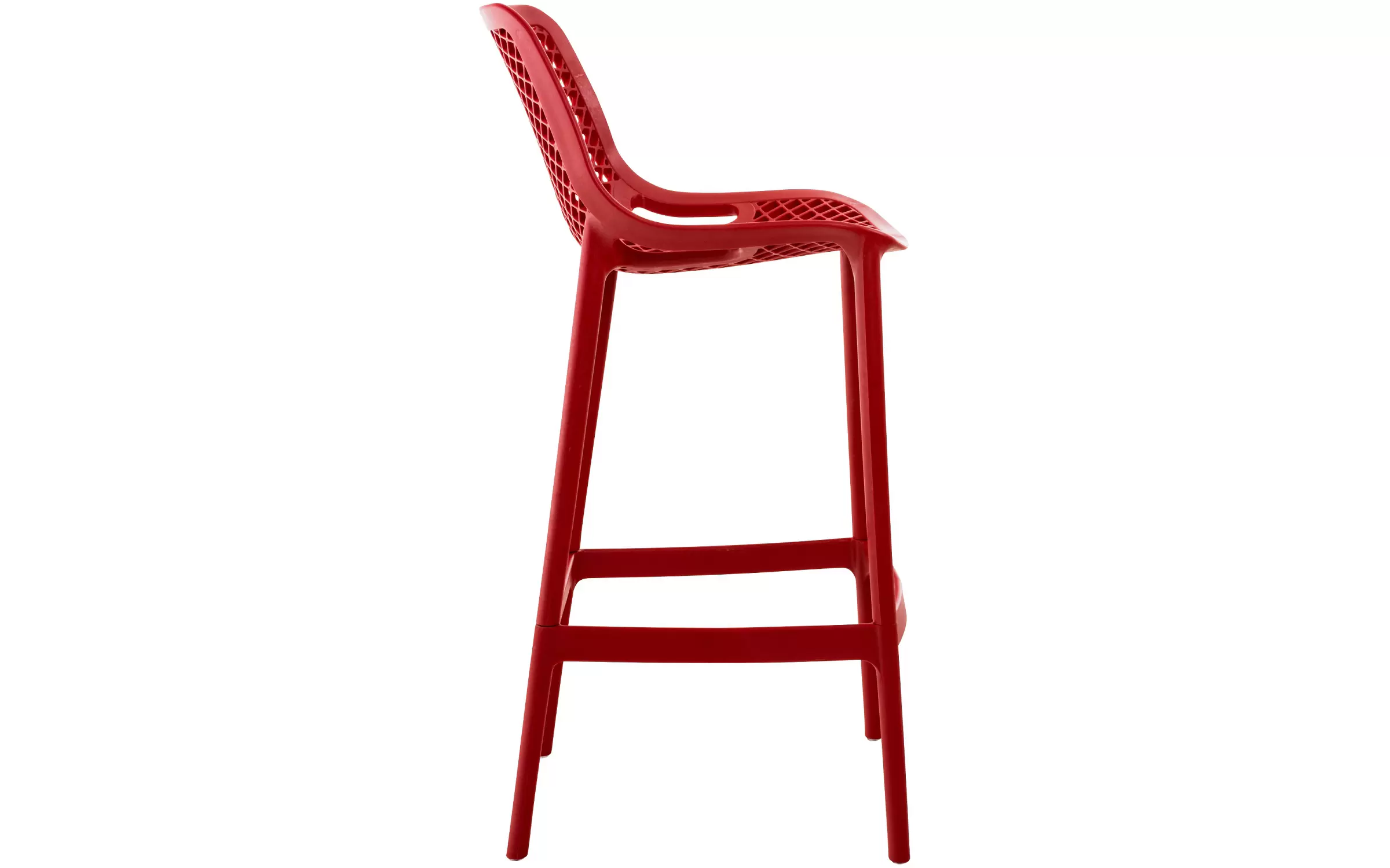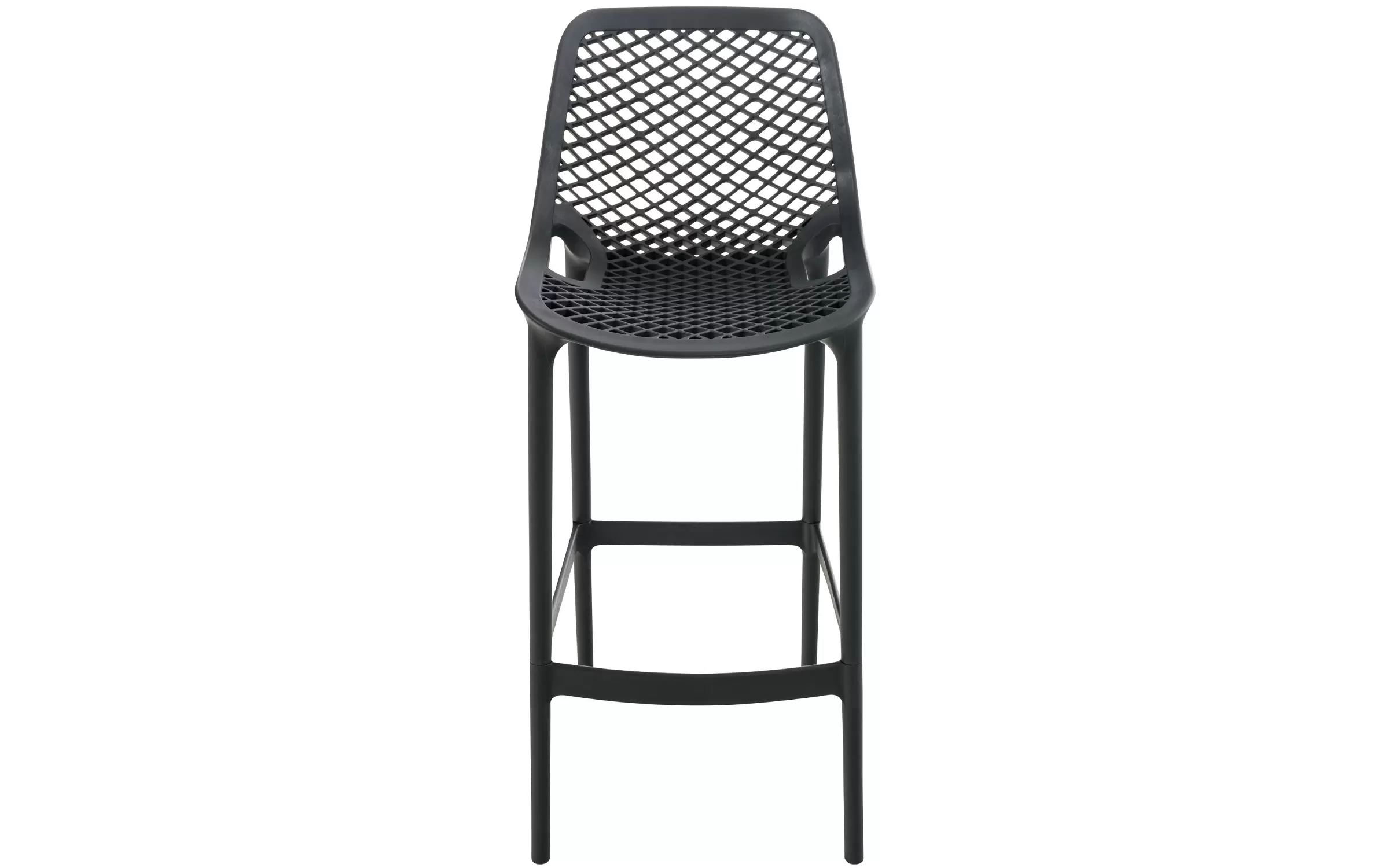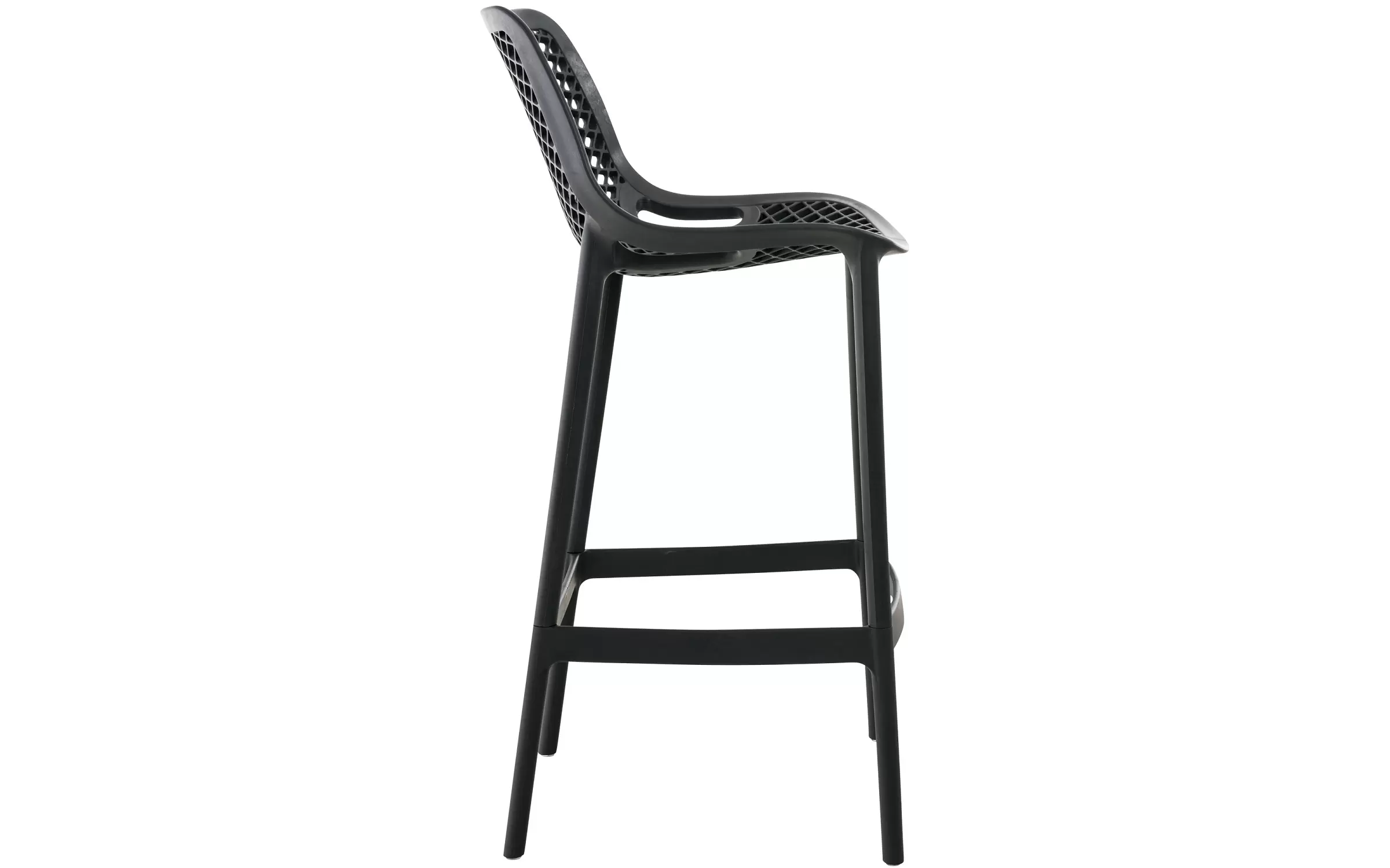 Hoker barowy Air zachwyca nowoczesnym designem i praktycznymi funkcjami. Dzięki minimalistycznemu wyglądowi pasuje do każdego pomieszczenia mieszkalnego i nadaje się zarówno do użytku wewnątrz, jak i na zewnątrz. Stołek wykonany jest z polipropylenu – wysokiej jakości tworzywa sztucznego, które jest wodoodporne i odporne na promieniowanie UV. Nawet częste i intensywne światło słoneczne nie powoduje żółknięcia i blaknięcia plastiku. Głębia koloru mebli zostaje zachowana na długo. Ergonomiczny kształt stołka barowego zapewnia wygodne siedzenie nawet przez kilka godzin. Wysokość siedziska wynosząca 75 cm jest idealna do stosowania na ladach lub ladach. Otaczający podstawę podnóżek zapewnia dodatkowy komfort.