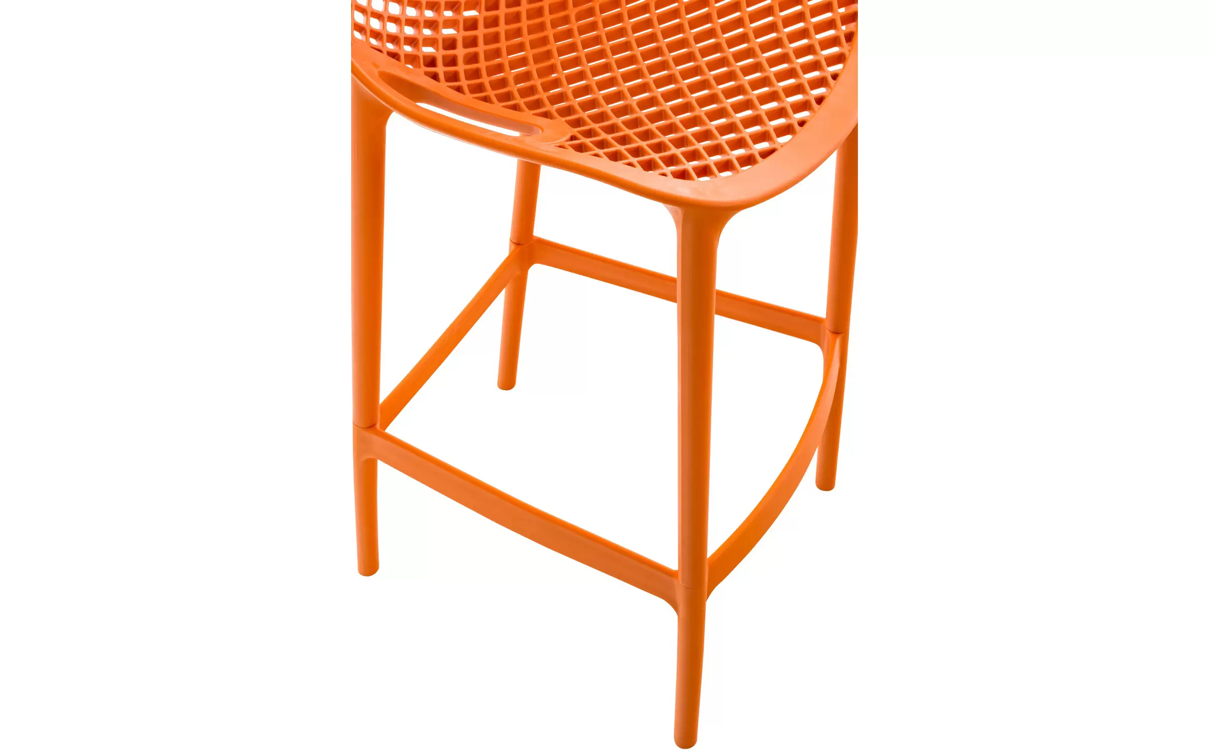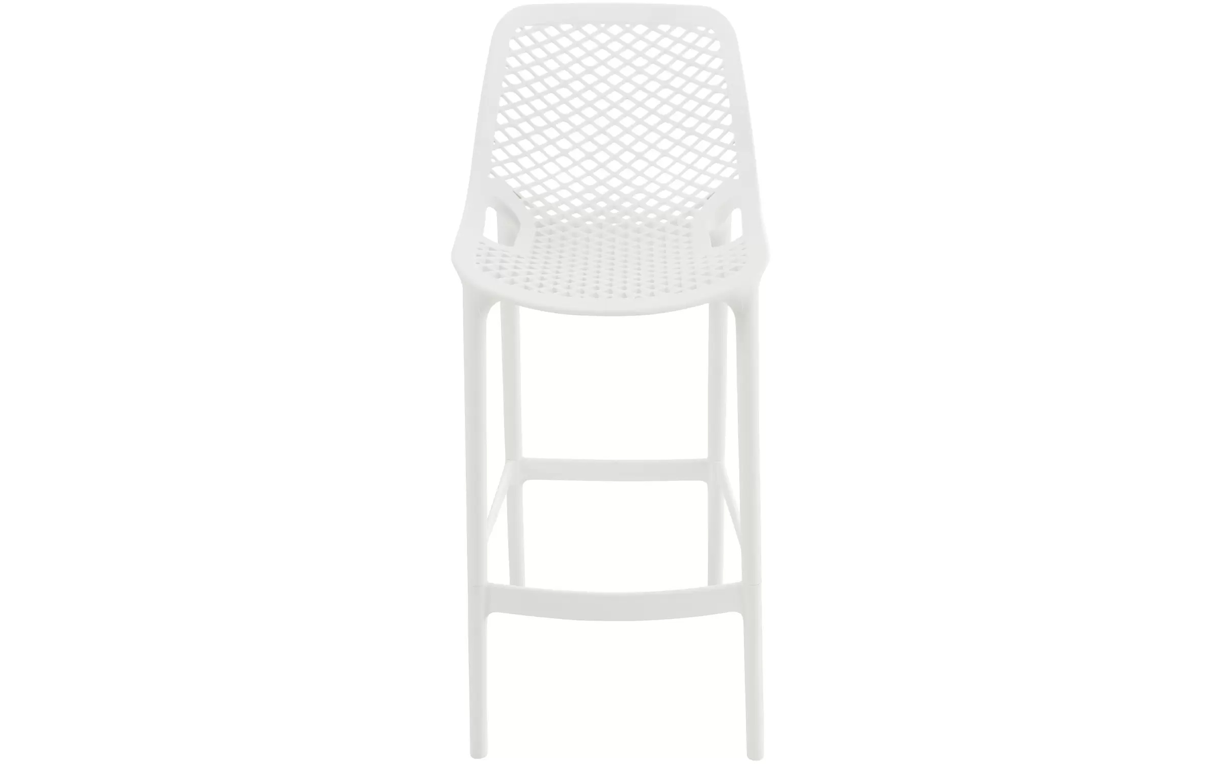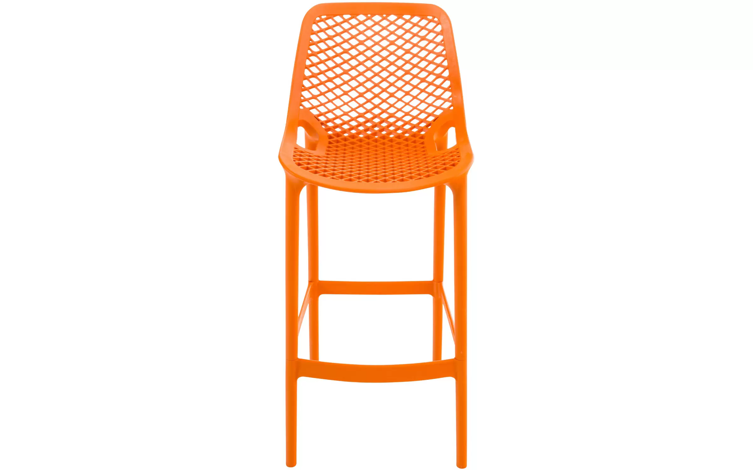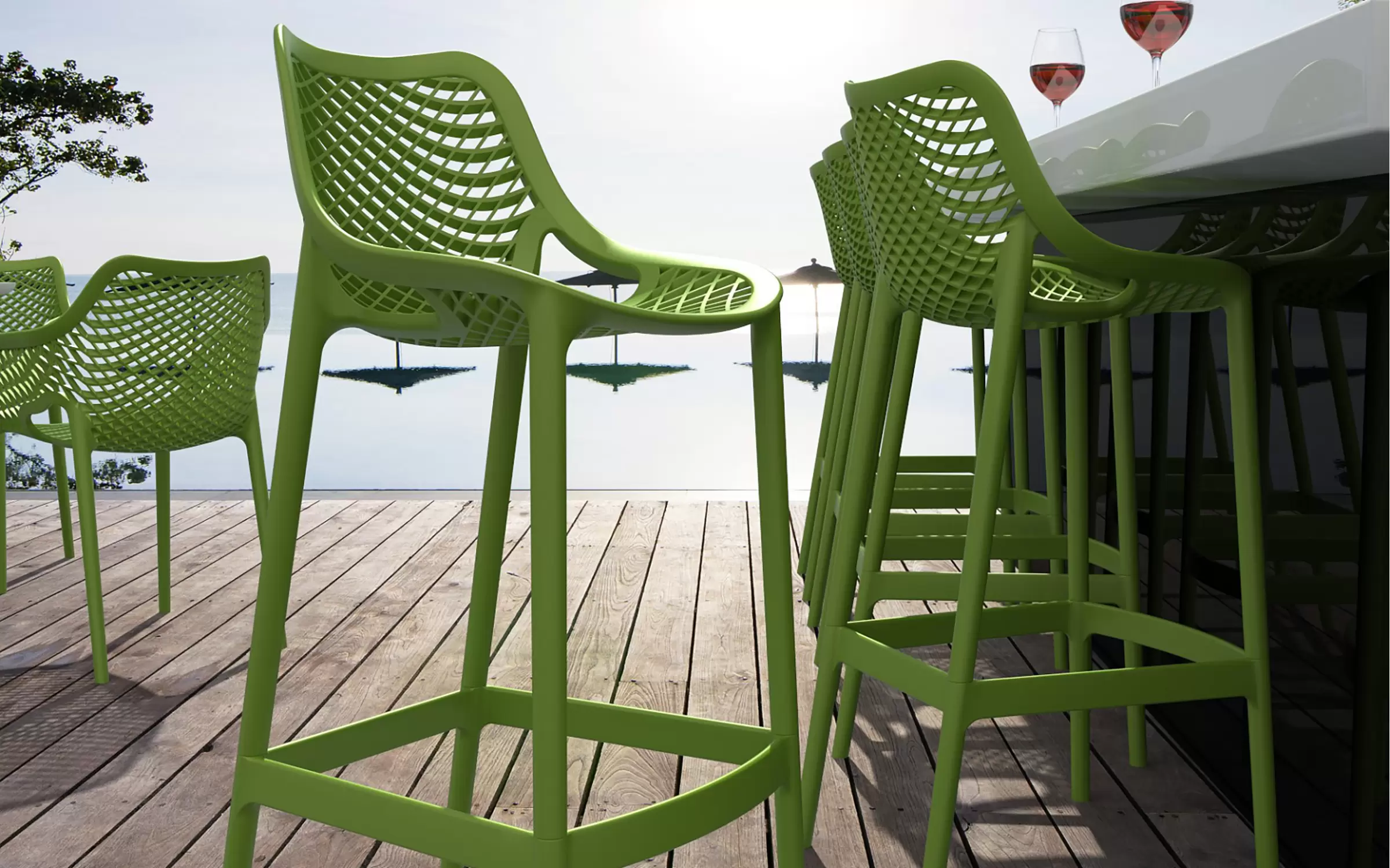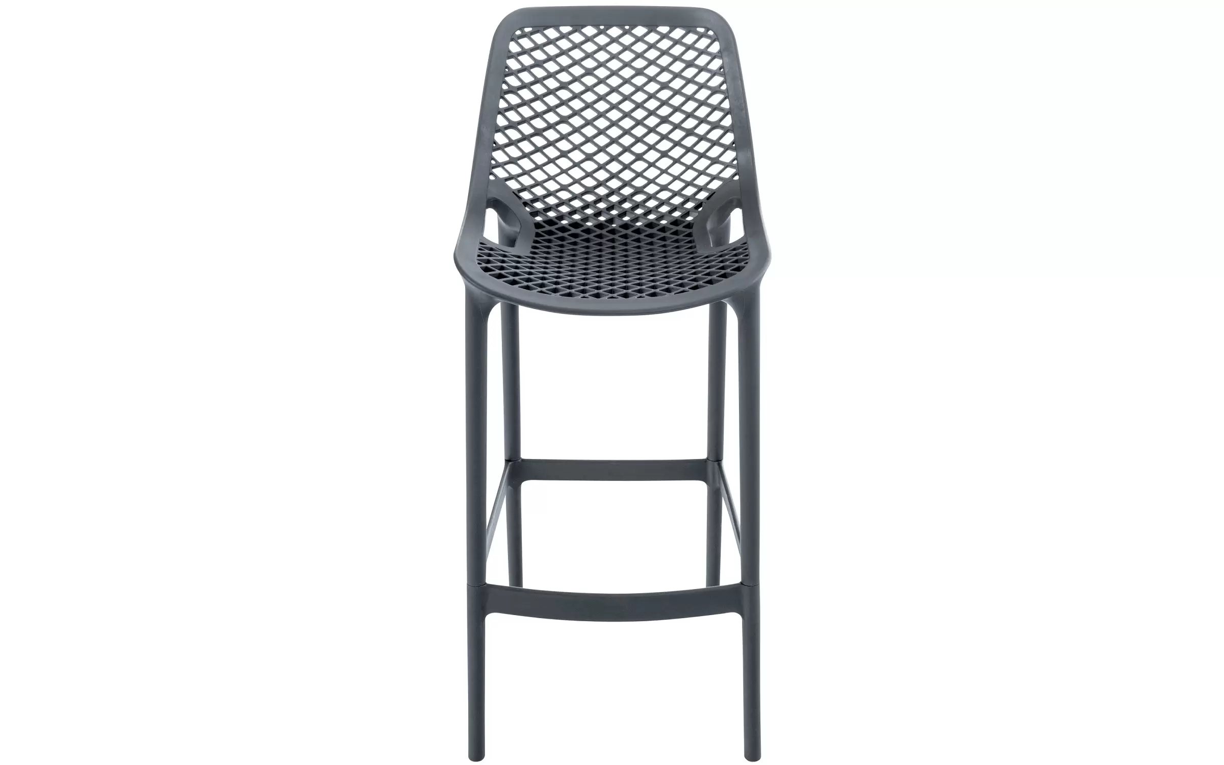 Hoker barowy Air zachwyca nowoczesnym designem i praktycznymi funkcjami. Dzięki minimalistycznemu wyglądowi pasuje do każdego pomieszczenia mieszkalnego i nadaje się zarówno do użytku wewnątrz, jak i na zewnątrz. Stołek wykonany jest z polipropylenu – wysokiej jakości tworzywa sztucznego, które jest wodoodporne i odporne na promieniowanie UV. Nawet częste i intensywne światło słoneczne nie powoduje żółknięcia i blaknięcia plastiku. Głębia koloru mebli zostaje zachowana na długo. Ergonomiczny kształt stołka barowego zapewnia wygodne siedzenie nawet przez kilka godzin. Wysokość siedziska wynosząca 75 cm jest idealna do stosowania na ladach lub ladach. Otaczający podstawę podnóżek zapewnia dodatkowy komfort.