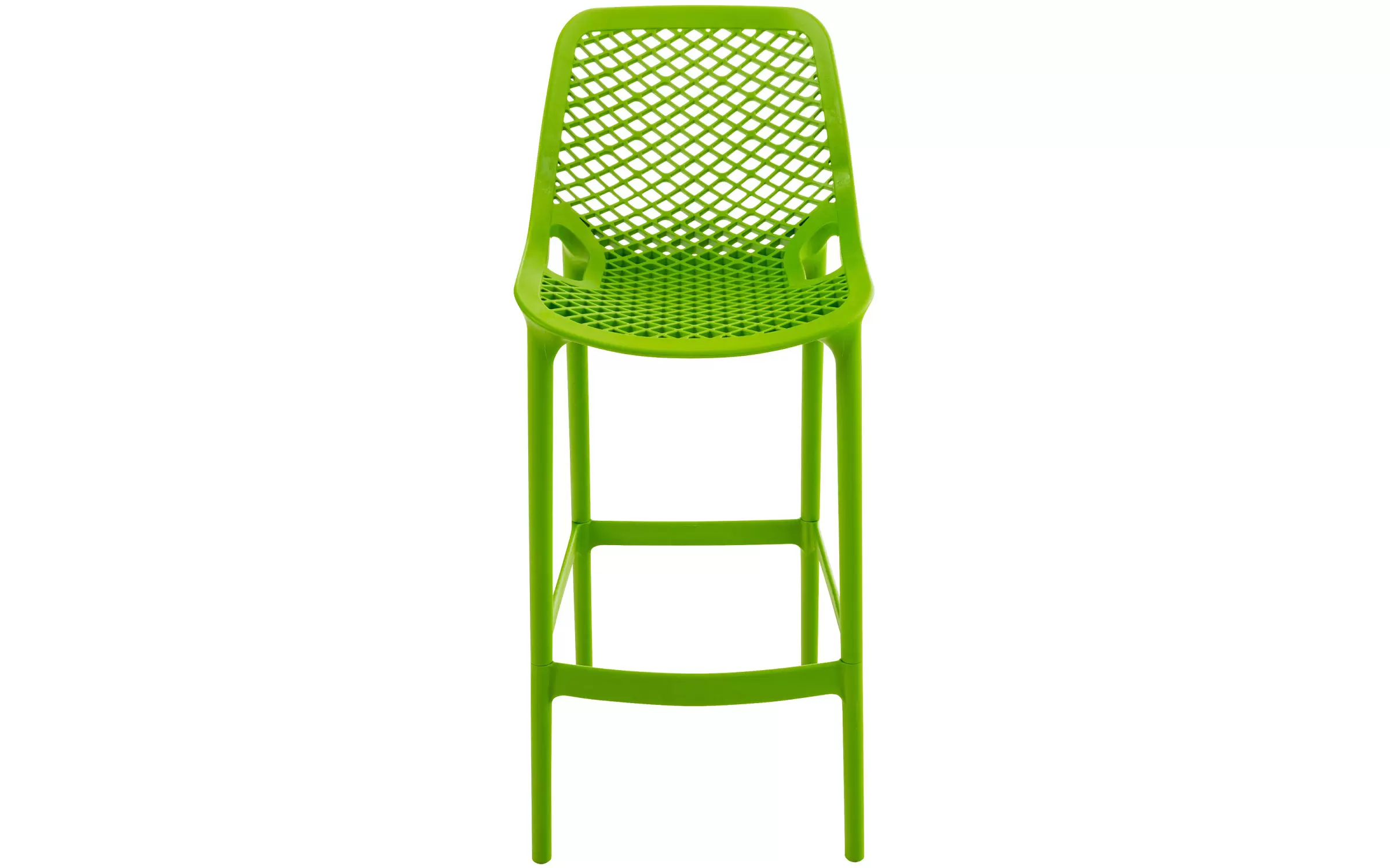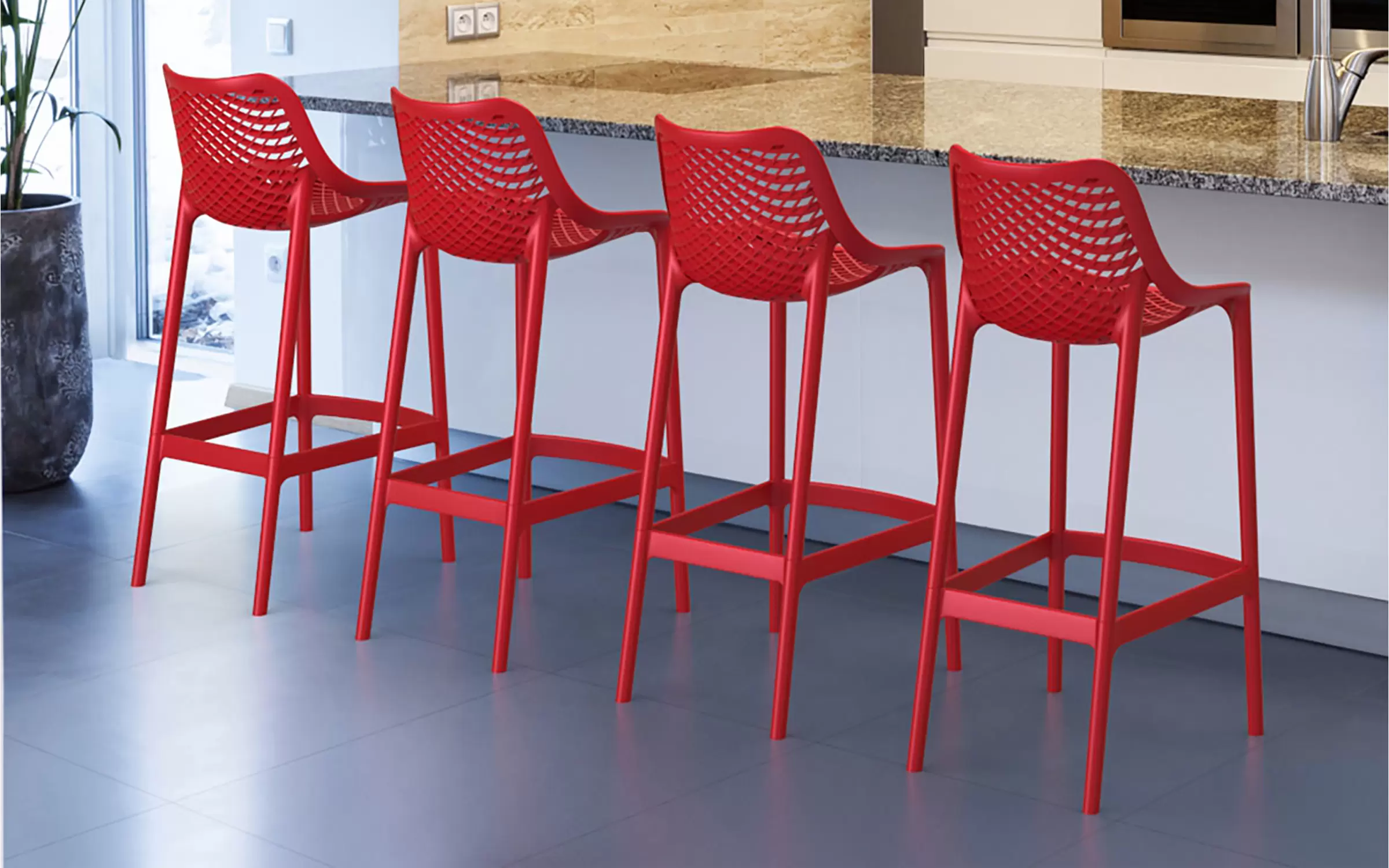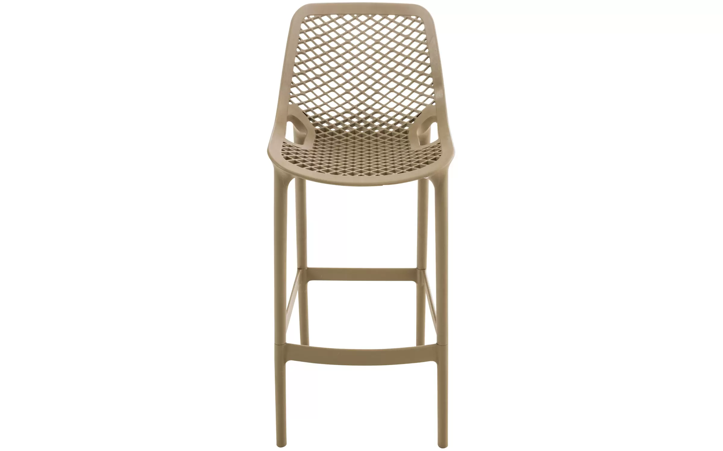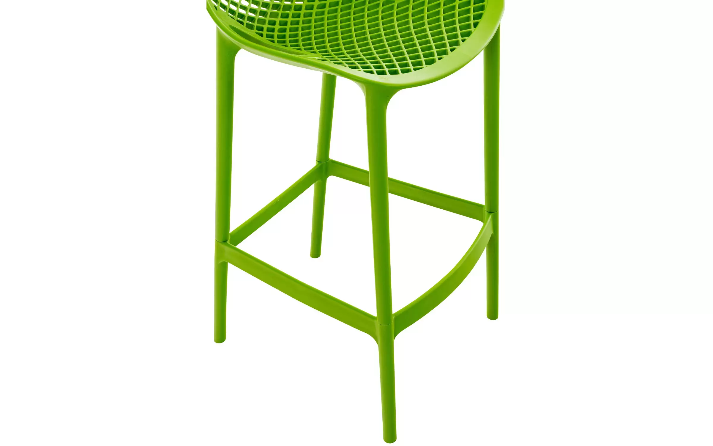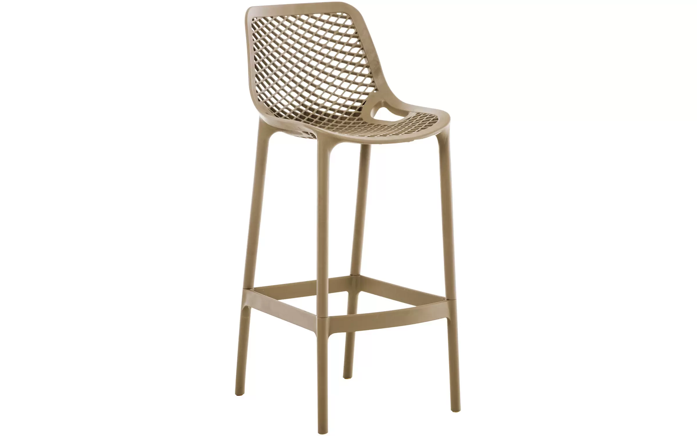 Hoker barowy Air zachwyca nowoczesnym designem i praktycznymi funkcjami. Dzięki minimalistycznemu wyglądowi pasuje do każdego pomieszczenia mieszkalnego i nadaje się zarówno do użytku wewnątrz, jak i na zewnątrz. Stołek wykonany jest z polipropylenu – wysokiej jakości tworzywa sztucznego, które jest wodoodporne i odporne na promieniowanie UV. Nawet częste i intensywne światło słoneczne nie powoduje żółknięcia i blaknięcia plastiku. Głębia koloru mebli zostaje zachowana na długo. Ergonomiczny kształt stołka barowego zapewnia wygodne siedzenie nawet przez kilka godzin. Wysokość siedziska wynosząca 75 cm jest idealna do stosowania na ladach lub ladach. Otaczający podstawę podnóżek zapewnia dodatkowy komfort.