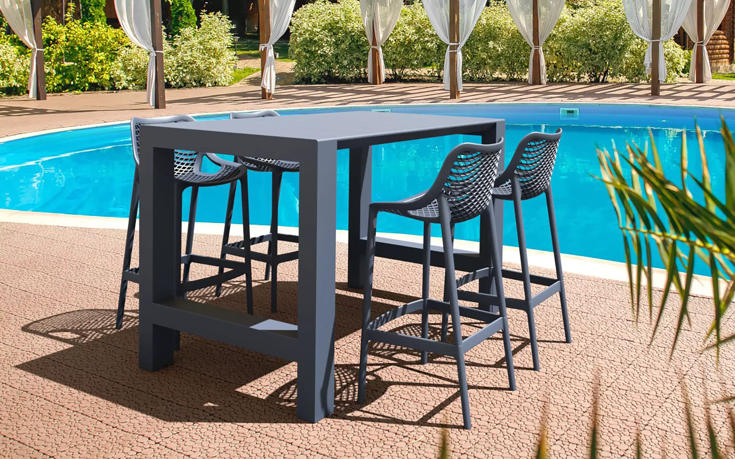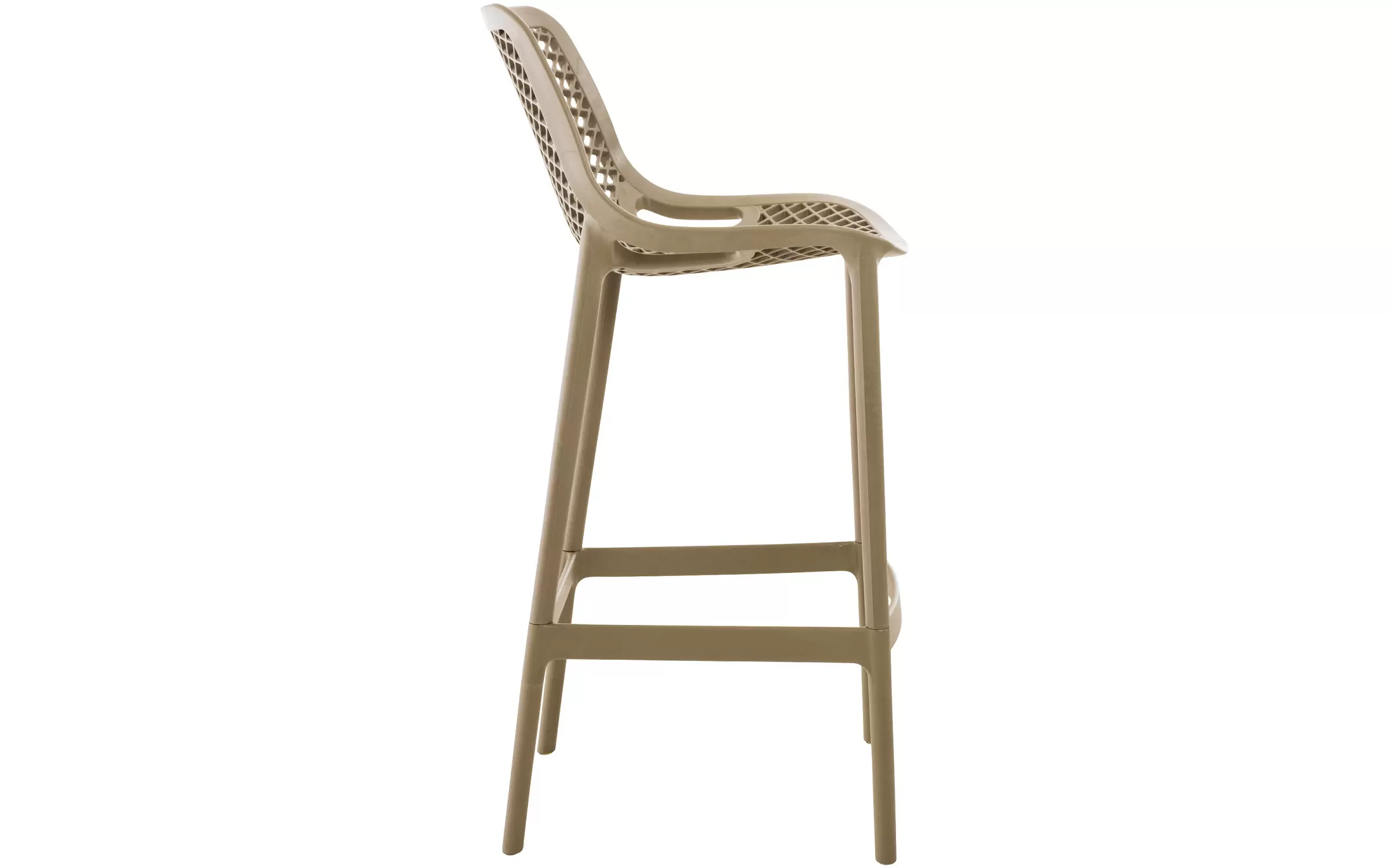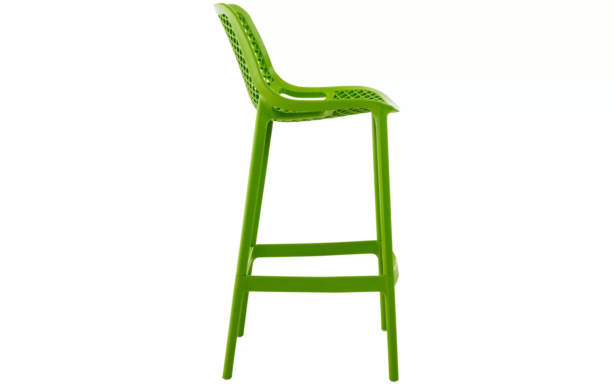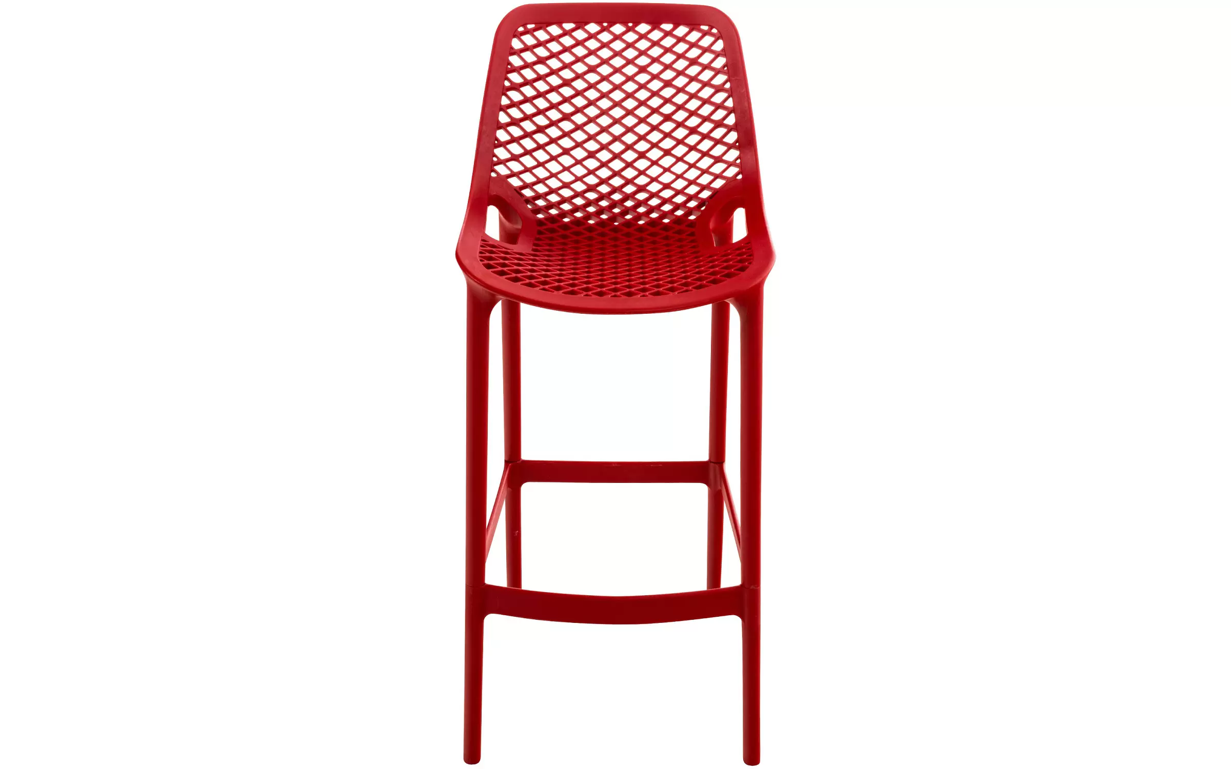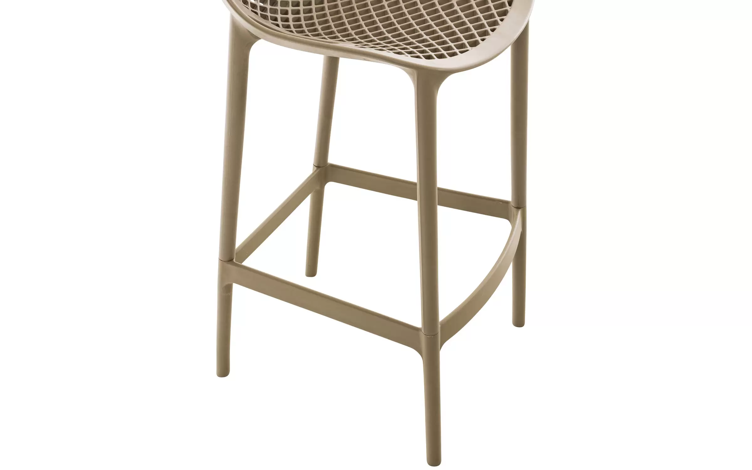 Hoker barowy Air zachwyca nowoczesnym designem i praktycznymi funkcjami. Dzięki minimalistycznemu wyglądowi pasuje do każdego pomieszczenia mieszkalnego i nadaje się zarówno do użytku wewnątrz, jak i na zewnątrz. Stołek wykonany jest z polipropylenu – wysokiej jakości tworzywa sztucznego, które jest wodoodporne i odporne na promieniowanie UV. Nawet częste i intensywne światło słoneczne nie powoduje żółknięcia i blaknięcia plastiku. Głębia koloru mebli zostaje zachowana na długo. Ergonomiczny kształt stołka barowego zapewnia wygodne siedzenie nawet przez kilka godzin. Wysokość siedziska wynosząca 75 cm jest idealna do stosowania na ladach lub ladach. Otaczający podstawę podnóżek zapewnia dodatkowy komfort.