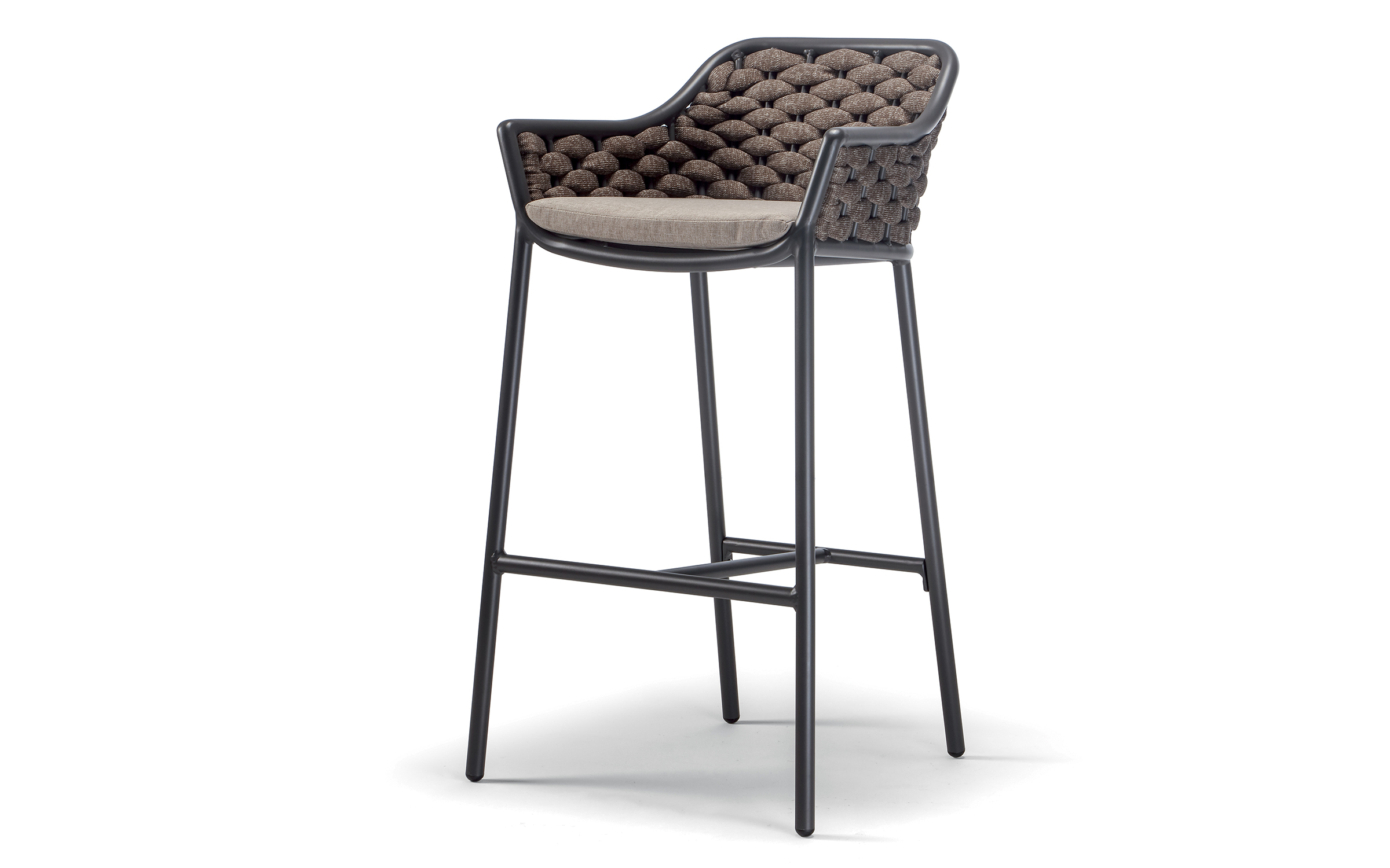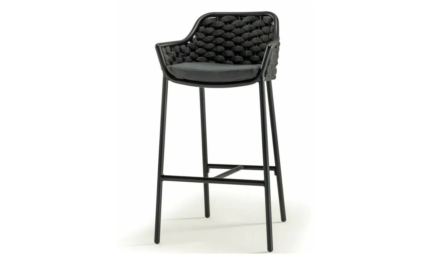Stołek barowy PANAMA marki Grattoni to kwintesencja nowoczesnego designu i niezawodnej funkcjonalności, zaprojektowana z myślą o luksusowym biesiadowaniu na tarasie, w ogrodzie czy w strefie basenowej. Solidna konstrukcja z aluminium lakierowanego proszkowo w głębokim czarnym kolorze gwarantuje pełną odporność na korozję oraz zmienne warunki atmosferyczne. Wyjątkowy komfort zapewnia siedzisko wykonane z plecionki olefinowej zintegrowanej z warstwą gumy, co nadaje meblowi unikalną elastyczność i wygląd 3d oraz pozwala na idealne dopasowanie do sylwetki. Całość dopełnia zdejmowana poduszka, która podnosi standard relaksu i nadaje krzesłu elegancki, nowoczesny charakter.