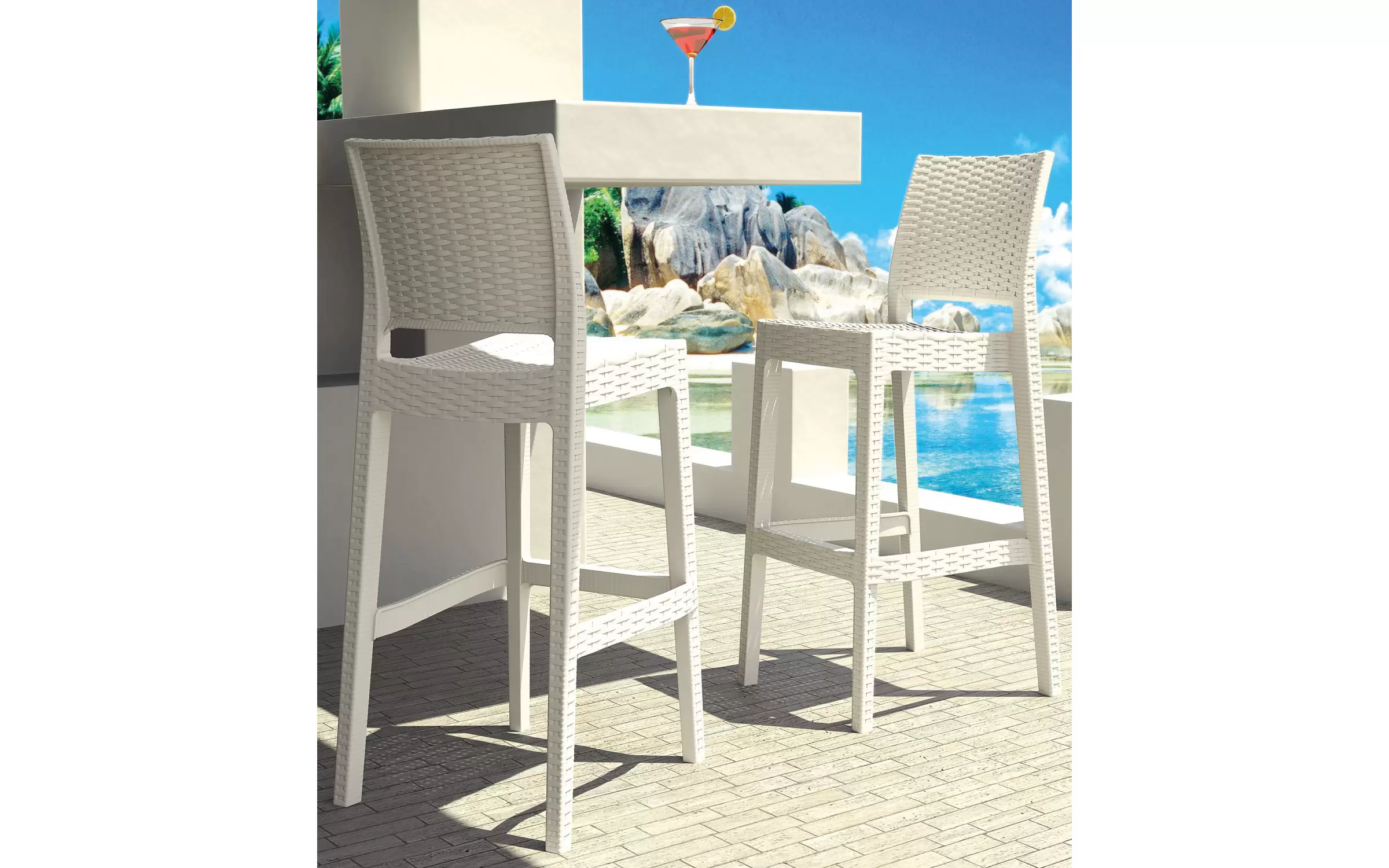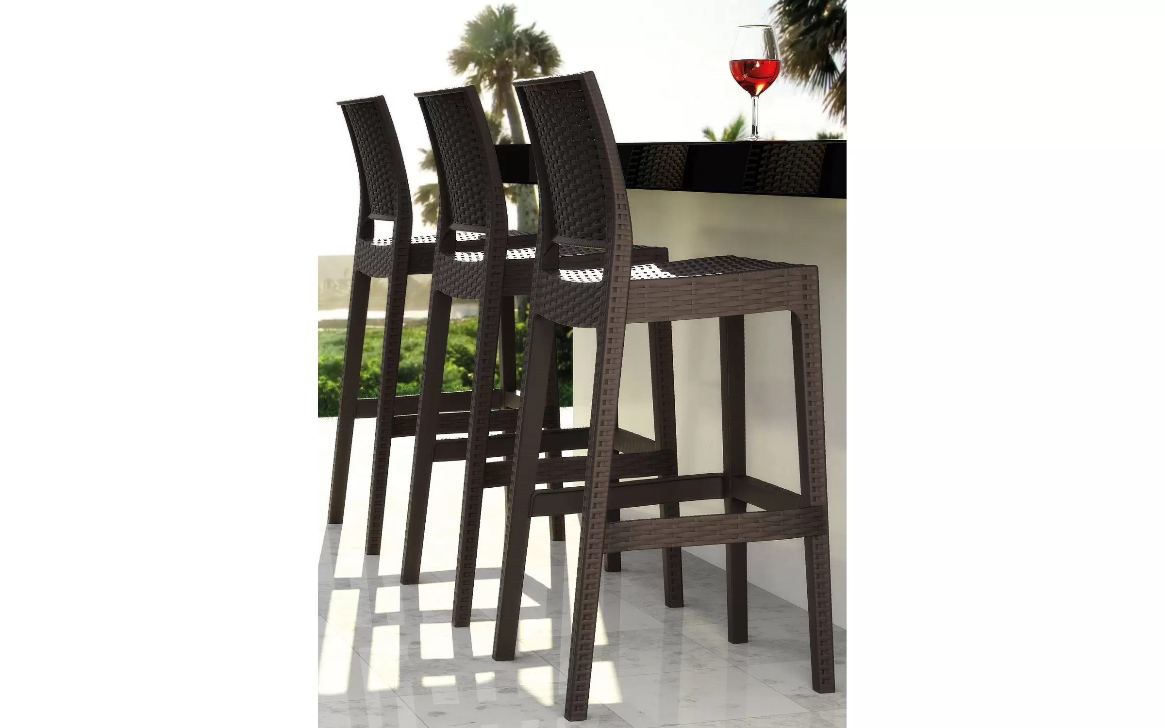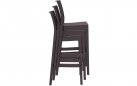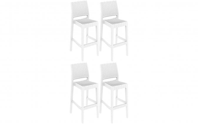 Stołki barowe wykonane są z wodoodpornego i odpornego na promieniowanie UV tworzywa sztucznego, dzięki czemu są całkowicie odporne na warunki atmosferyczne i plamy, brud i wilgoć. Nawet częste i intensywne światło słoneczne nie powoduje żółknięcia i blaknięcia plastiku. Głębia koloru stołków barowych zostaje zachowana na długo. Czteronożna rama posiada poprzeczki, które z jednej strony zapewniają stabilność, a z drugiej mogą pełnić funkcję podnóżka.