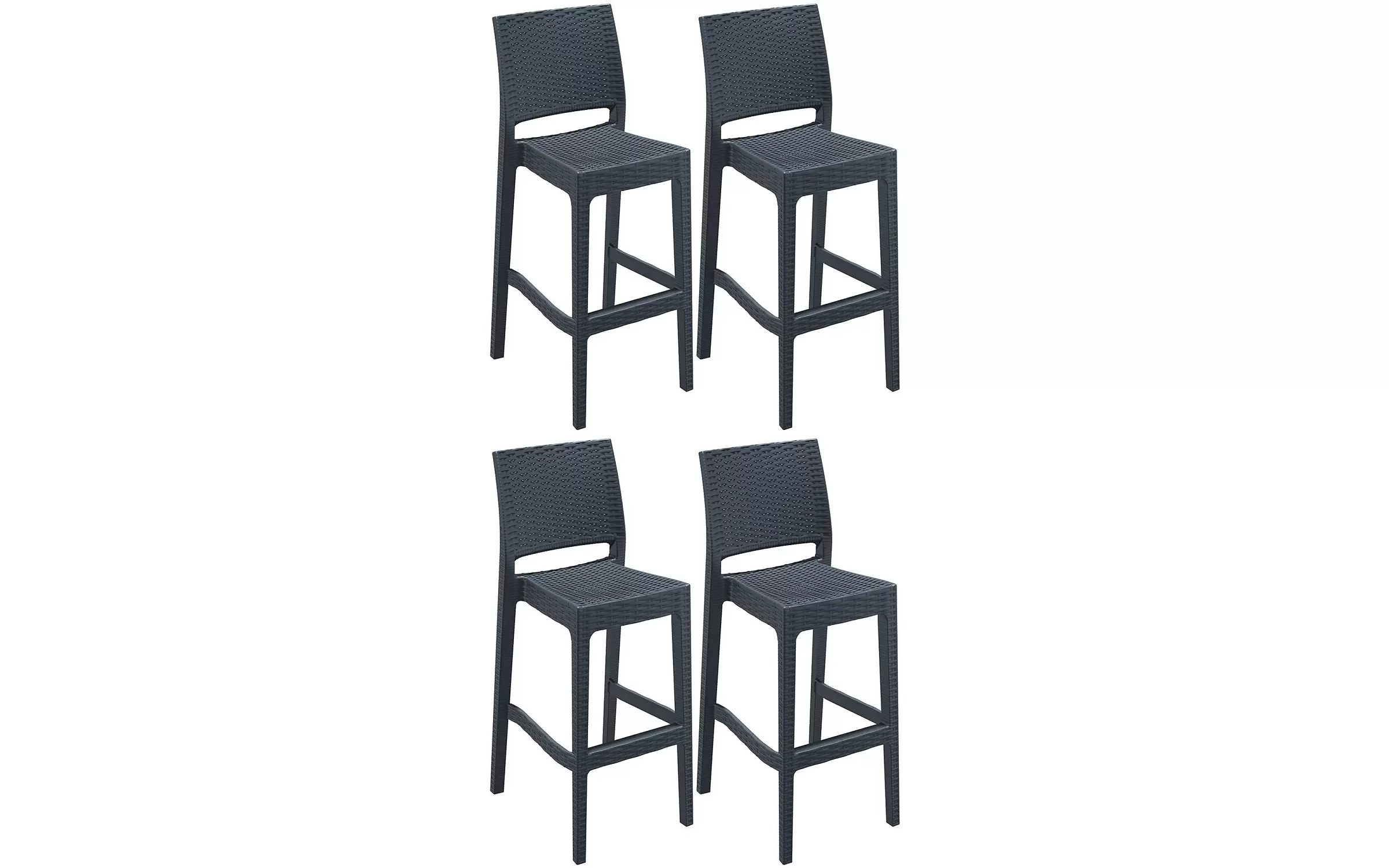 Dzięki przejrzystemu i nowoczesnemu wzornictwu te stołki o wyglądzie technorattanu idealnie pasują do każdego ogrodu, tarasu lub balkonu - ale stołki barowe można również używać w pomieszczeniach zamkniętych.