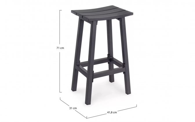 Stołek barowy w całości wykonany z aluminium z kolorze grafitowym. Siedzisko profilowane.
