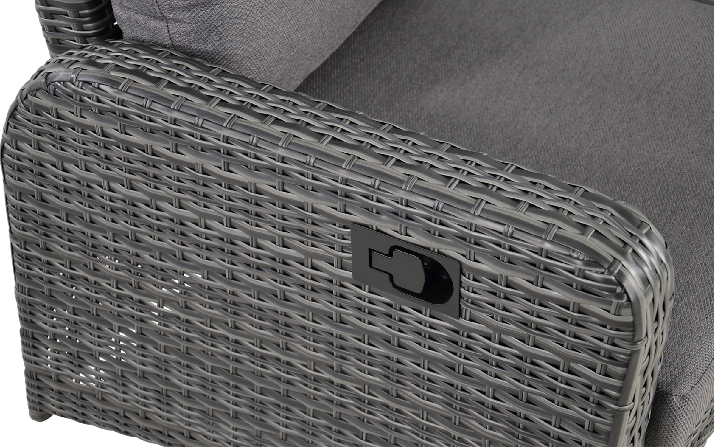 Konstrukcja opiera się na trwałym i odpornym na warunki atmosferyczne aluminium A oplecione jest technorattanem, który do złudzenia przypomina naturalny rattan, oferując jednocześnie całkowitą odporność na deszcz, mróz i promieniowanie UV.