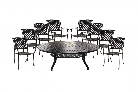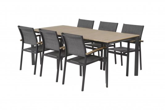 W przypadku mebli ogrodowych stołowych z aluminium, blaty stołów są zwykle wykonane z innych materiałów, takich jak szkło hartowane, kamień, drewno lub HPL. Taki design mebli ogrodowych stołowych z aluminium i innymi materiałami w połączeniu z różnymi wzorami krzeseł może stworzyć interesujący efekt wizualny i pasować do różnych stylów ogrodów.