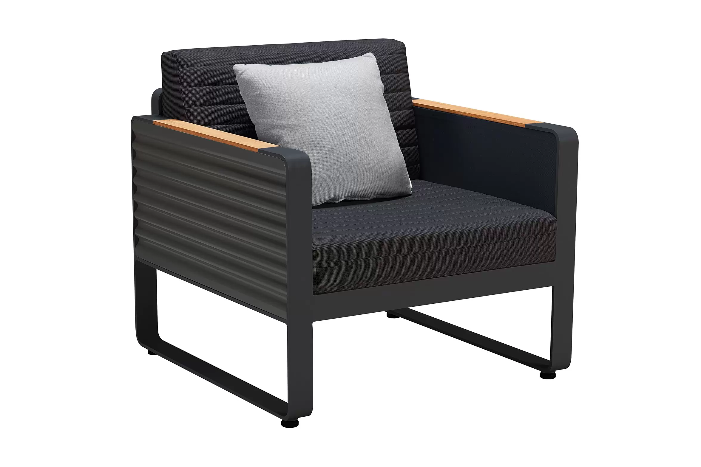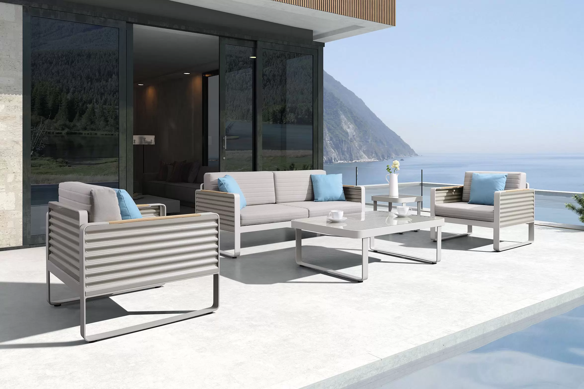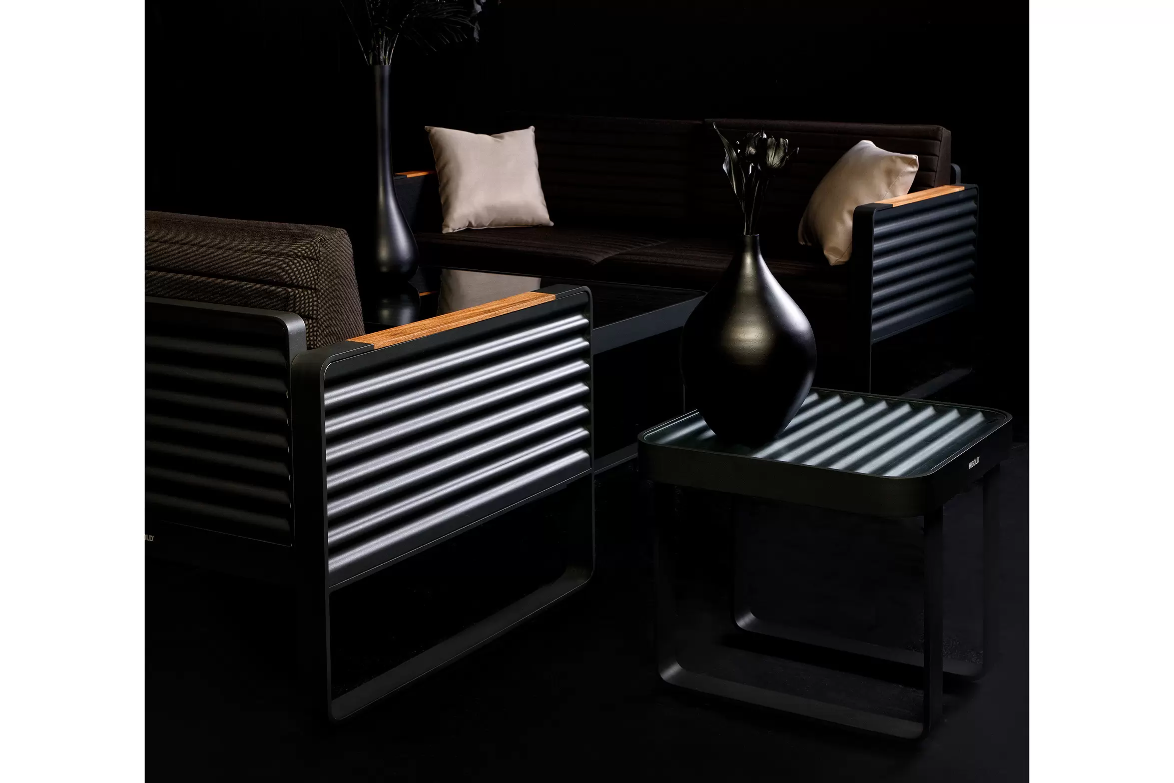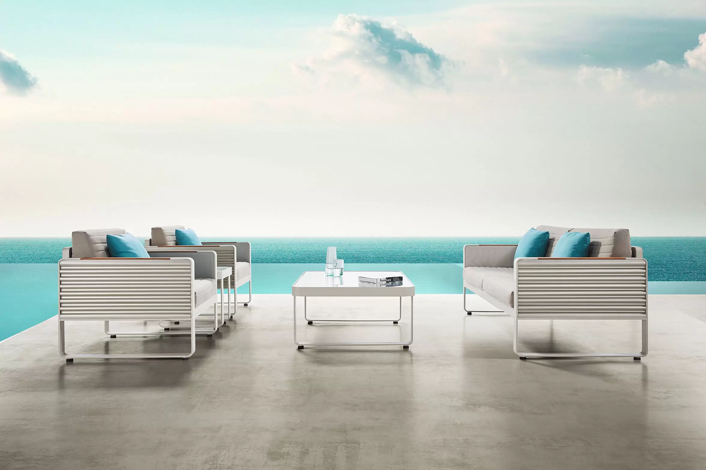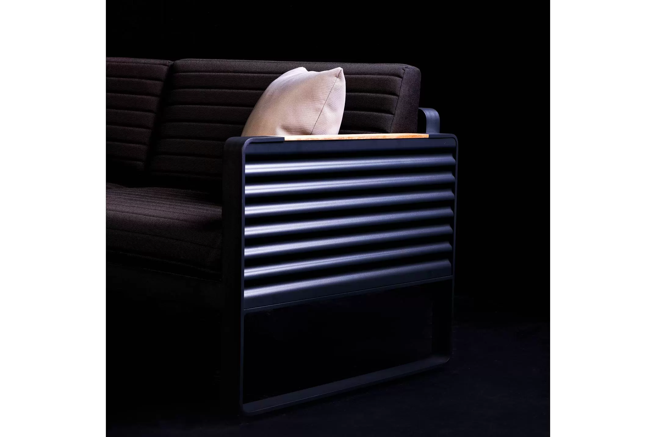 Kolekcja AIRPORT wykonana jest z profili aluminiowych, natomiast boki wykonano ze starannie wykończonej grubej blachy falistej. Całość tworzy niepowtarzany styl i poczucie premium nowoczesnej wygody na tarasie.