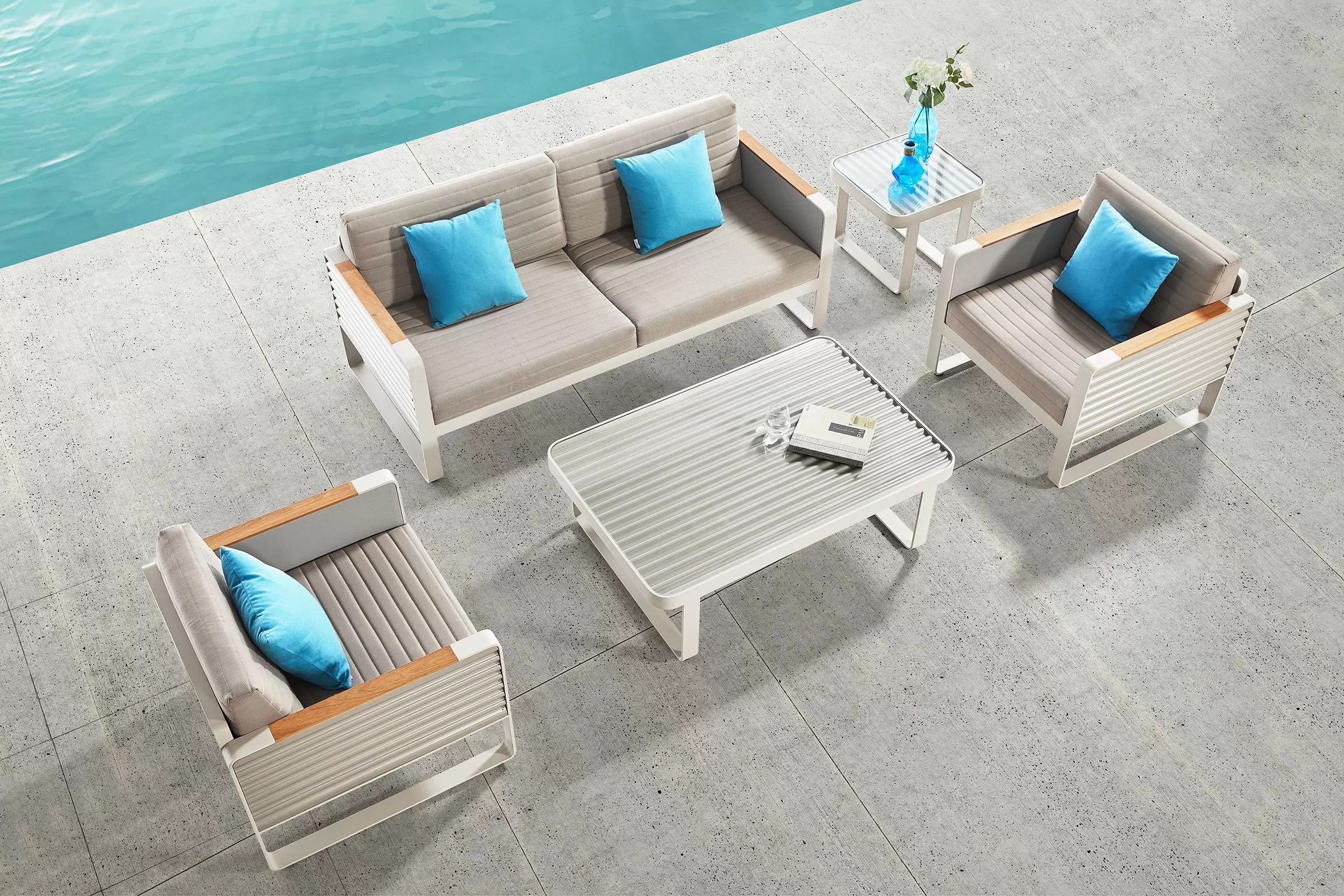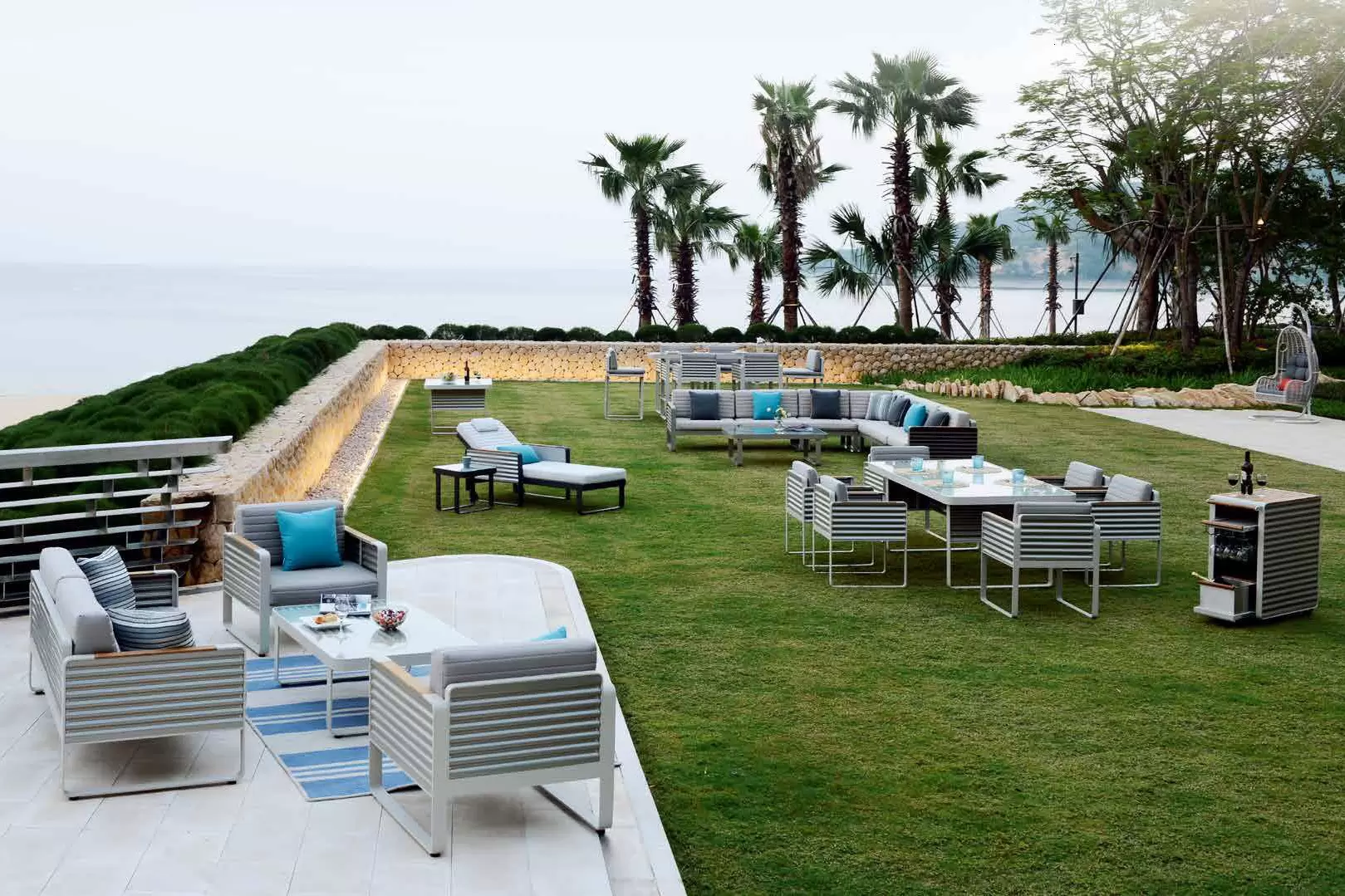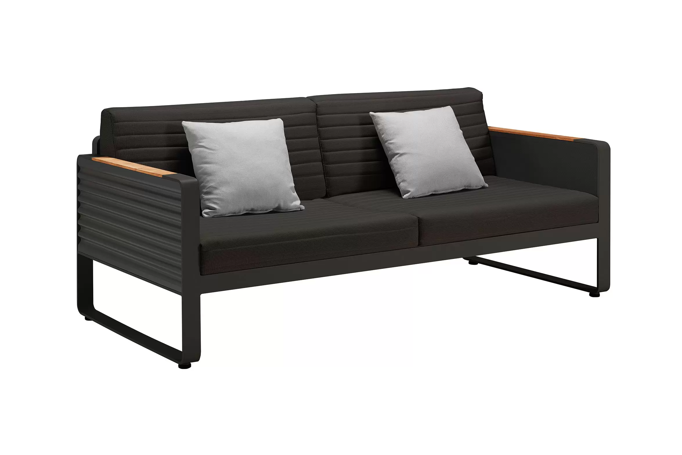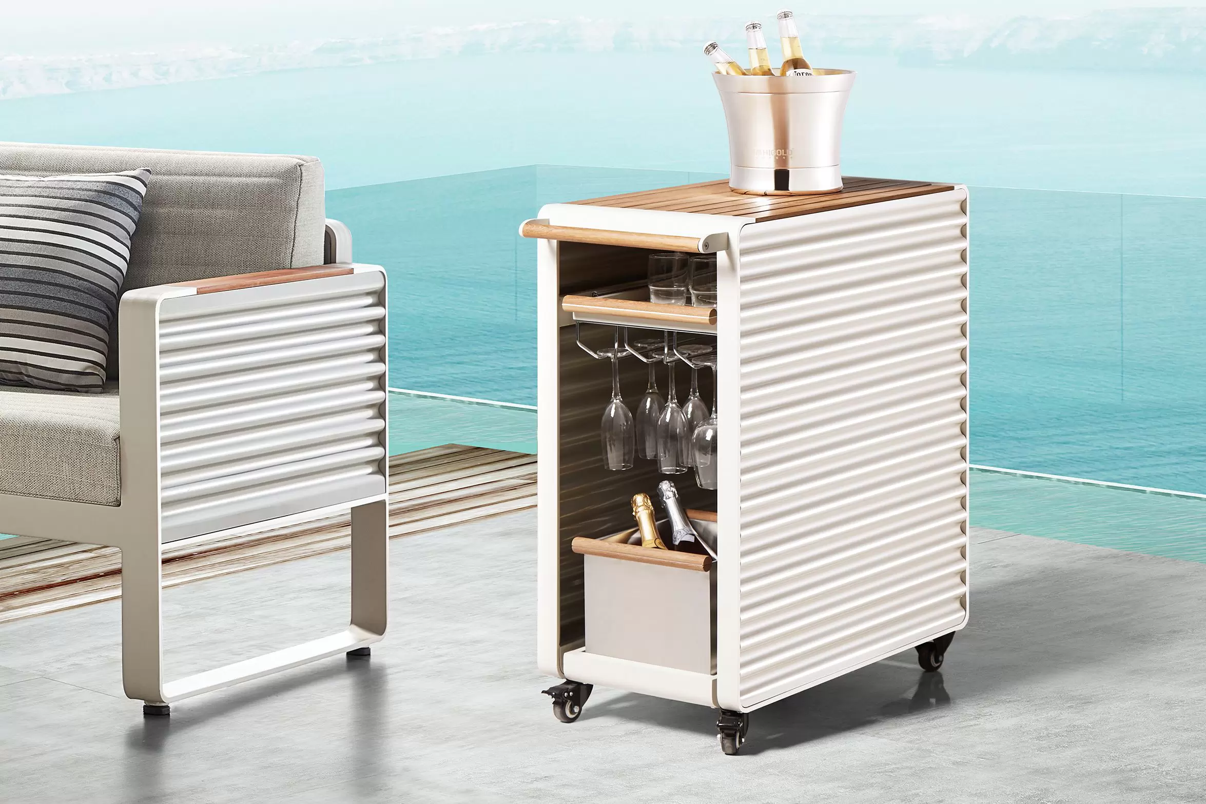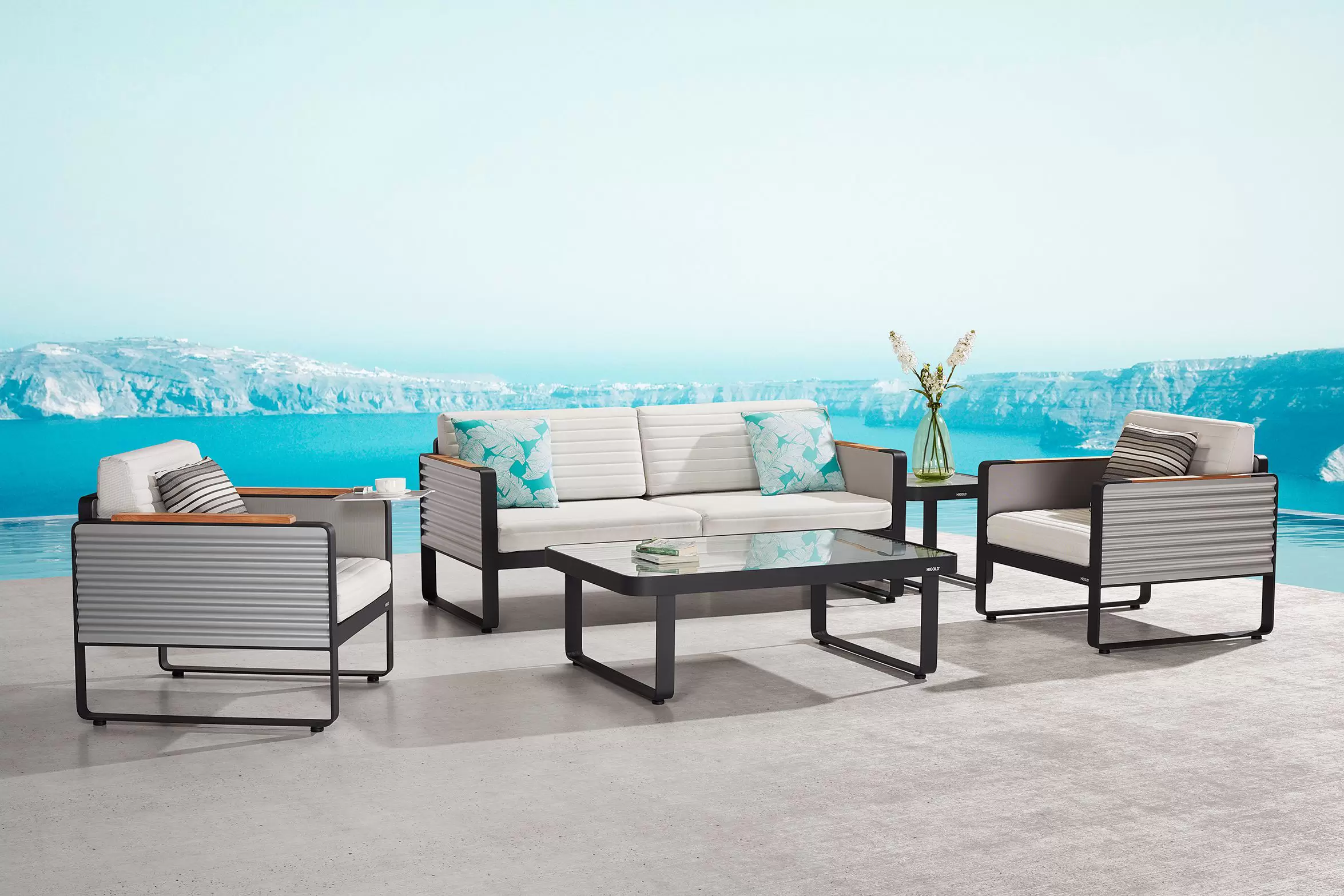 Kolekcja AIRPORT wykonana jest z profili aluminiowych, natomiast boki wykonano ze starannie wykończonej grubej blachy falistej. Całość tworzy niepowtarzany styl i poczucie premium nowoczesnej wygody na tarasie.