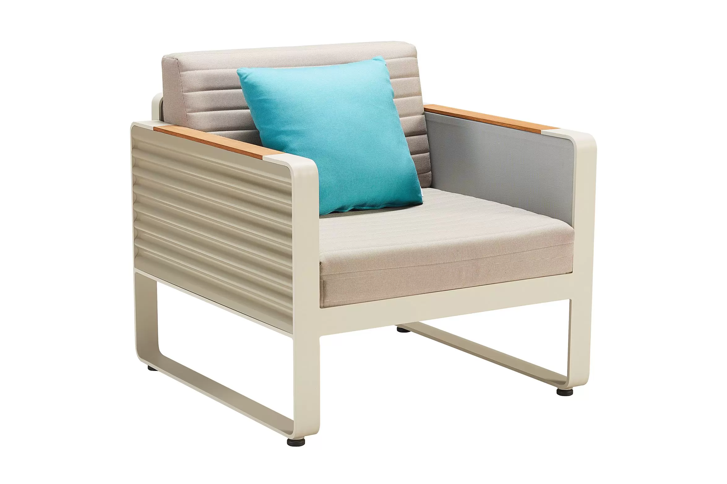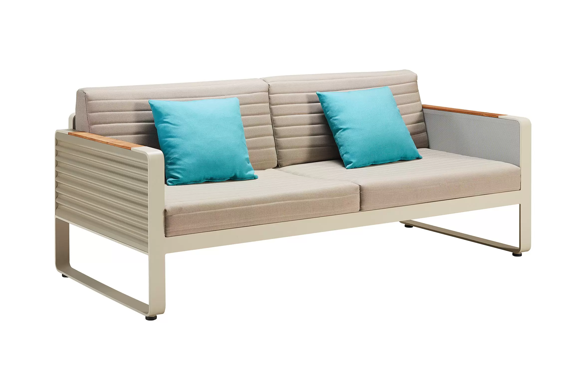 - aluminiowa konstrukcja w kolorze jasnobeżowym i poduszek w kolorze taupe.