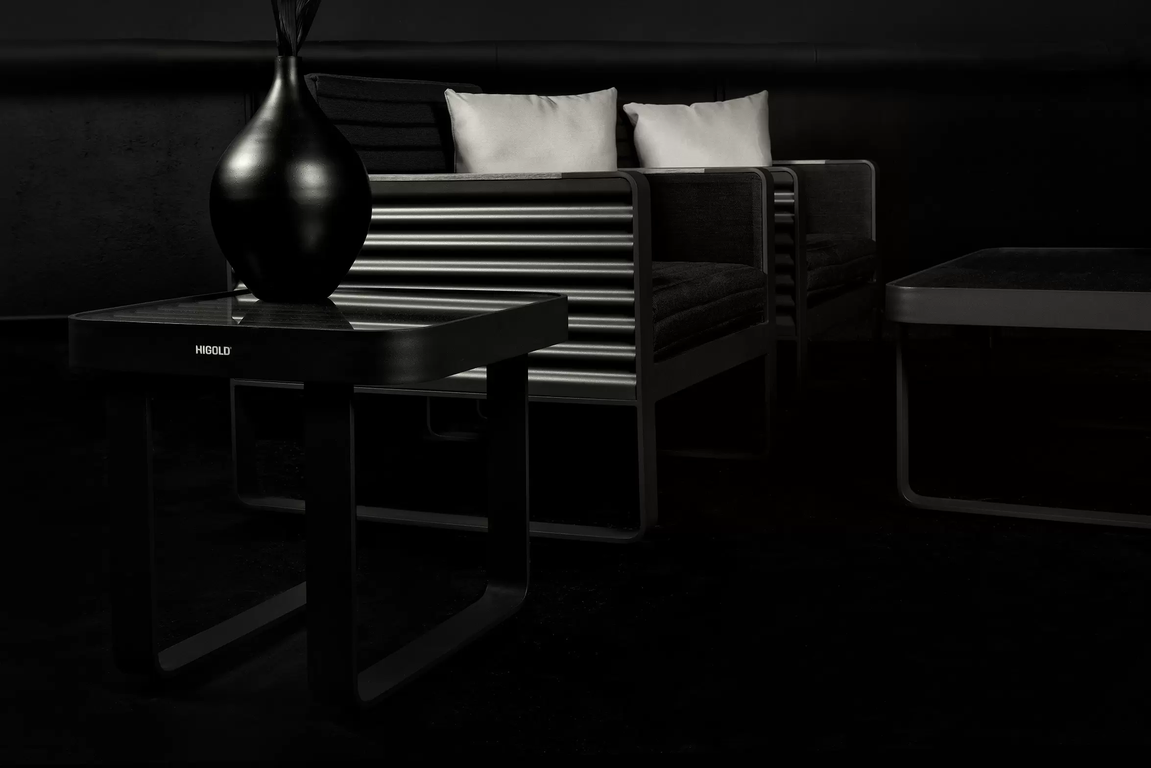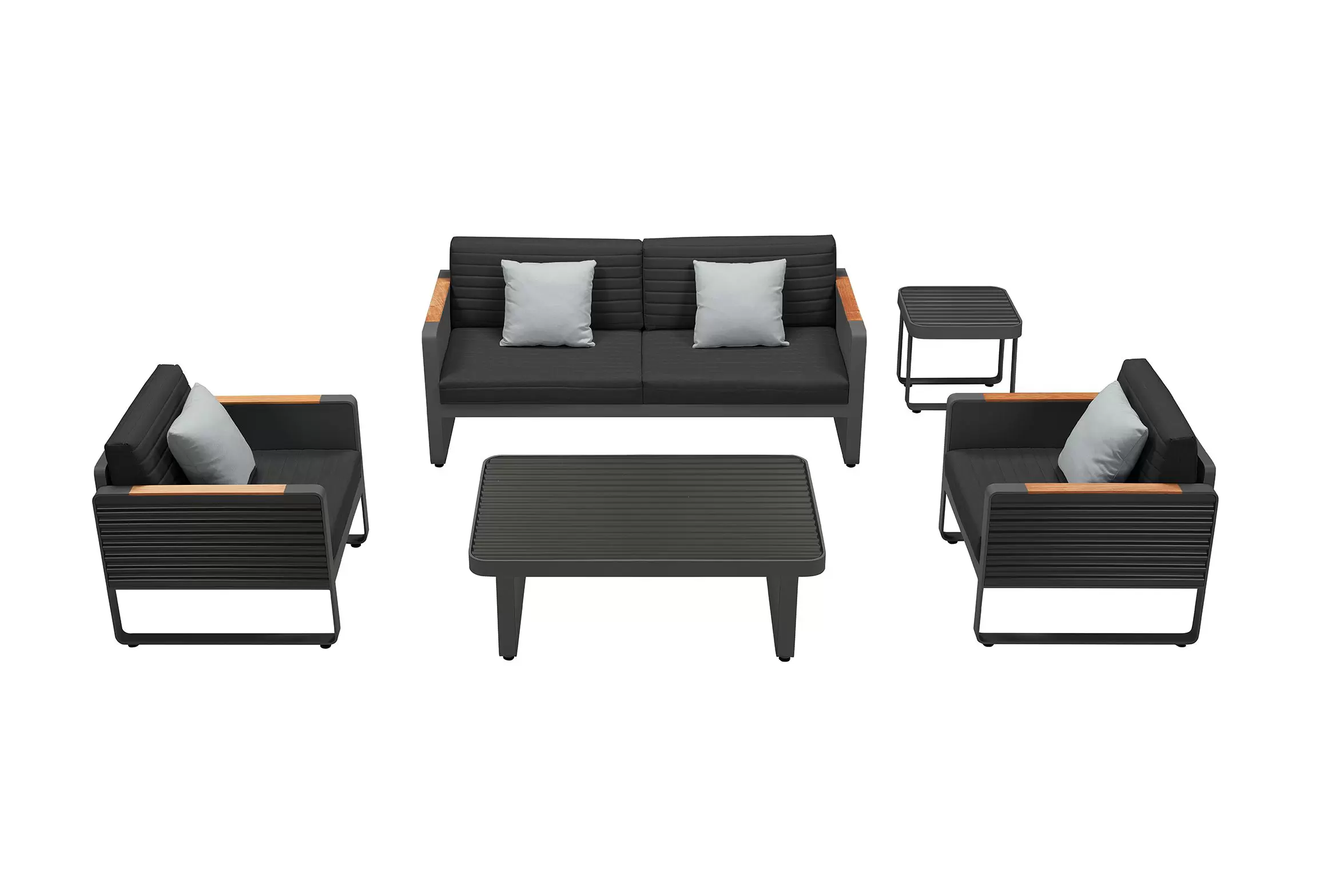 - aluminiowa konstrukcja w kolorze czarnym i poduszek w kolorze czarnym.
