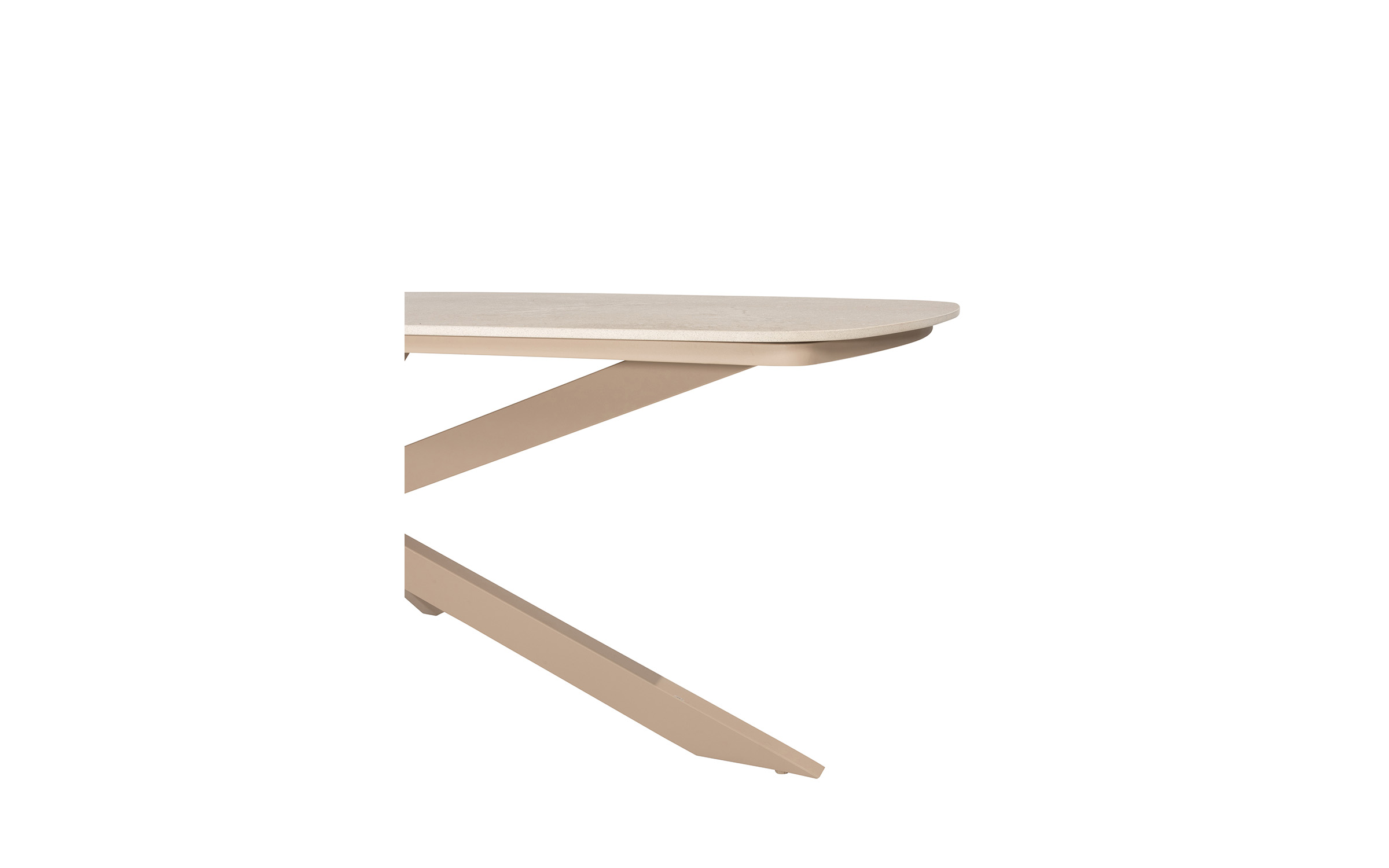 Elegancka podstawa ze skrzyżowanymi nogami nadaje temu stolikowi nowoczesny wygląd. Dzięki praktycznej podstawie ze skrzyżowanymi nogami krzesła stoją swobodnie przy stole bez żadnych przeszkód ze strony nogi stołu. |