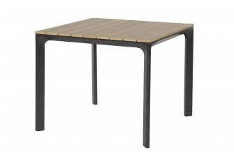 Aluminiowy stół obiadowy kwadratowy ciemnoszary. Blat kompozytowy o wyglądzie drewna teakowego.