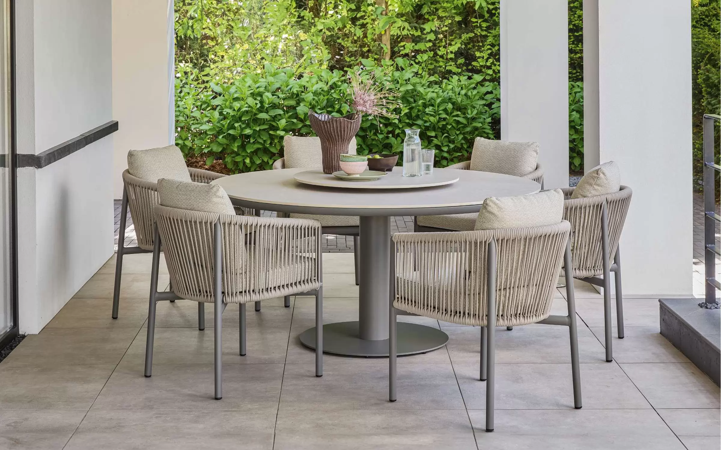 - 1× Stół ogrodowy Melville Ø 160 cm – blat z kamienia spiekanego