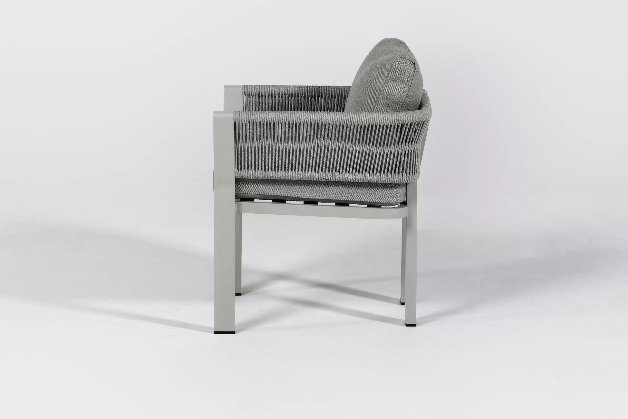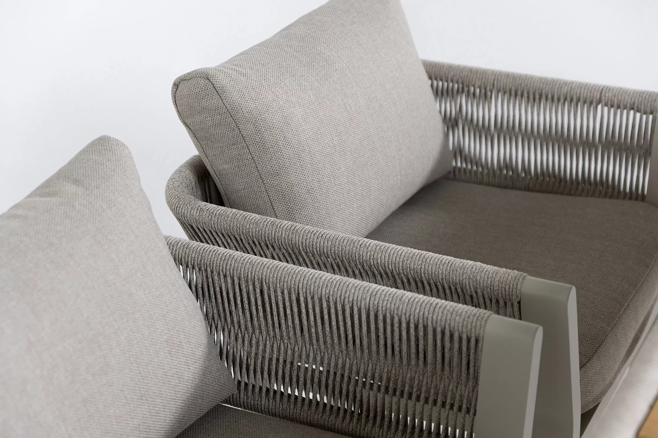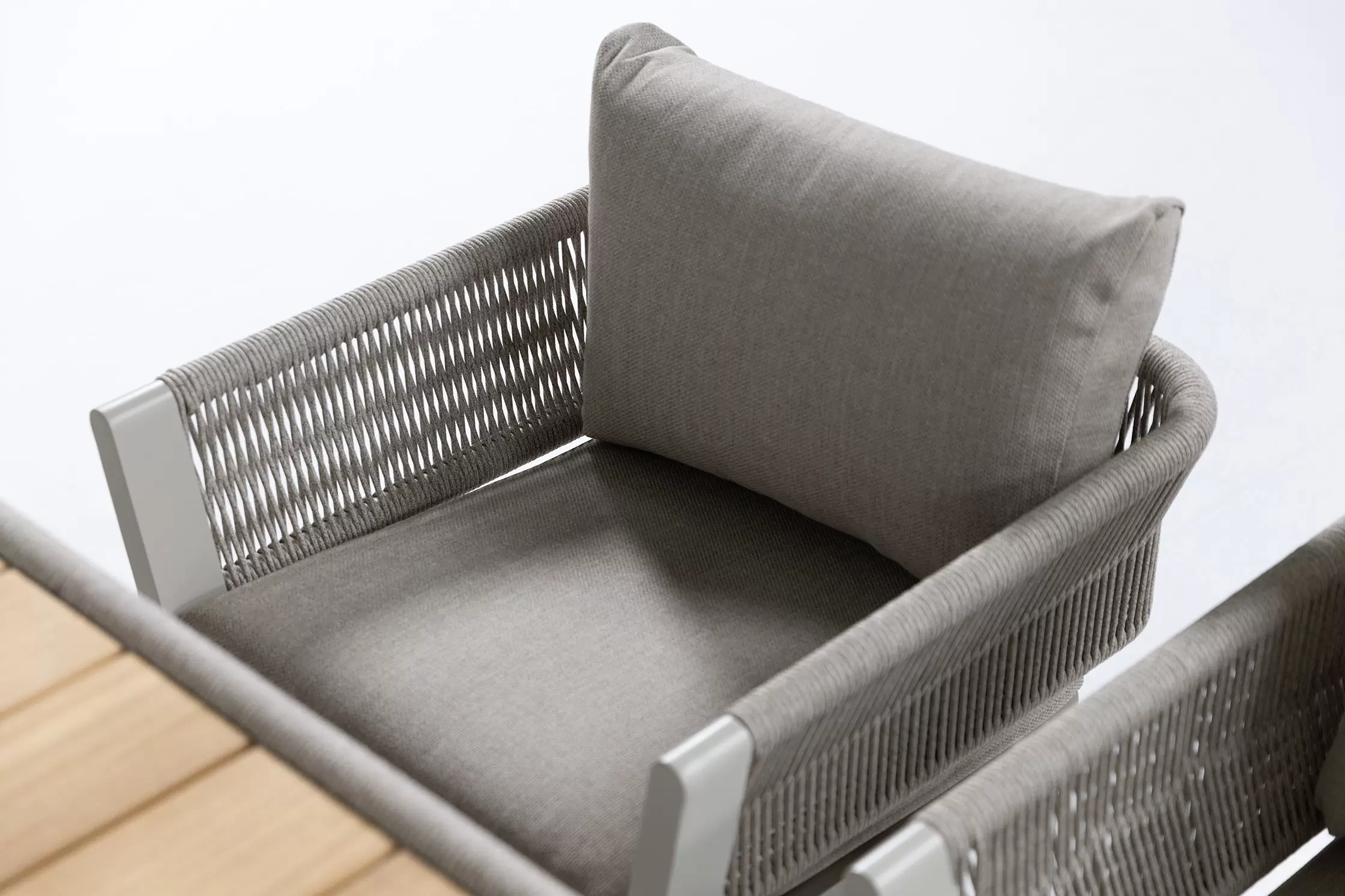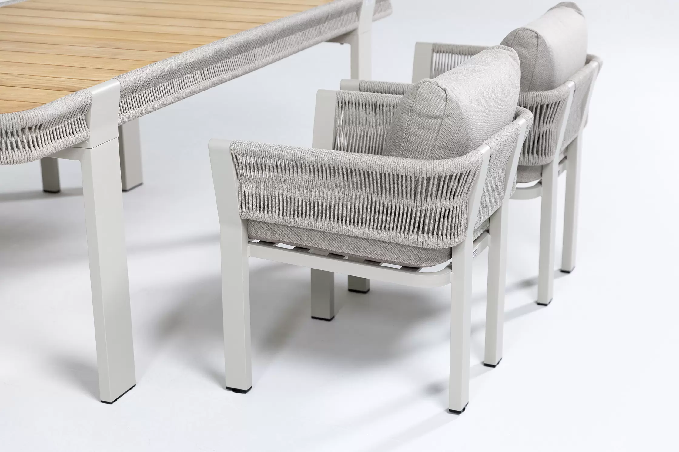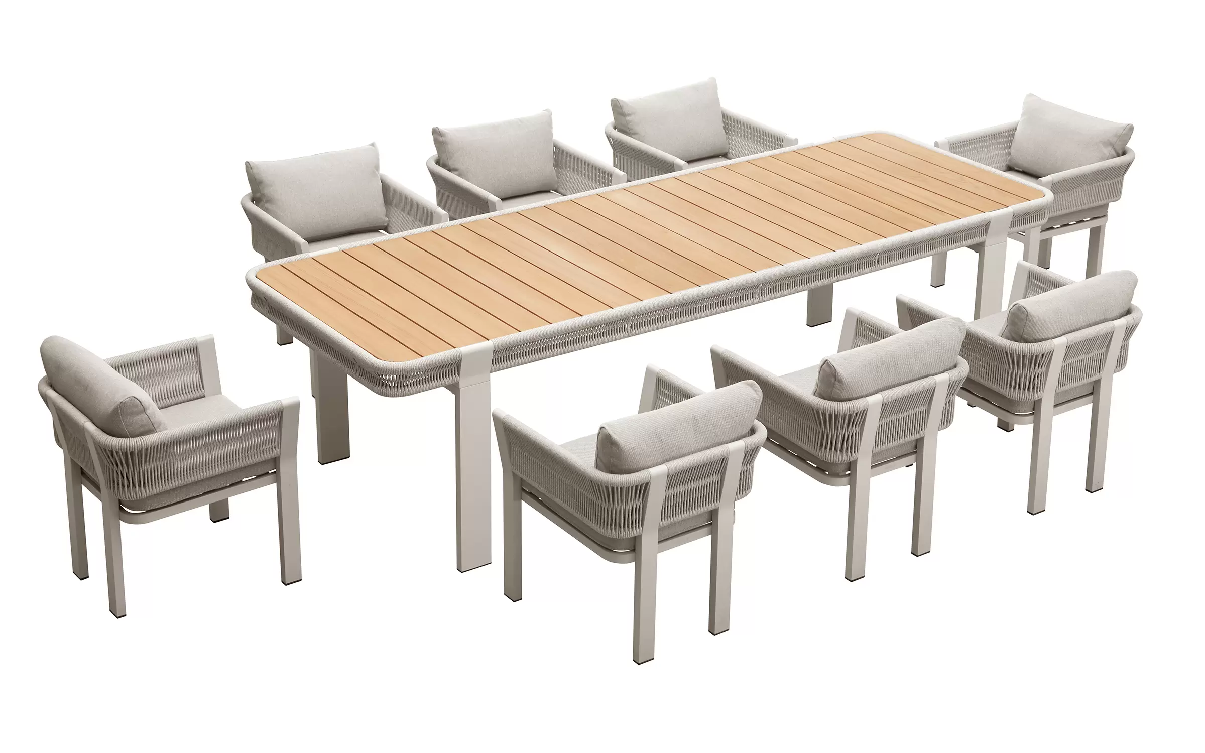 Kolekcja BORROMEO to połączenie prostoty konstrukcji aluminiowej z plecionką z liny polipropylenowej i wygodnych poduszek. Mieszanka konwencjonalnego wzornictwa z przyjemną nostalgią! Blaty z drewna teakowego.