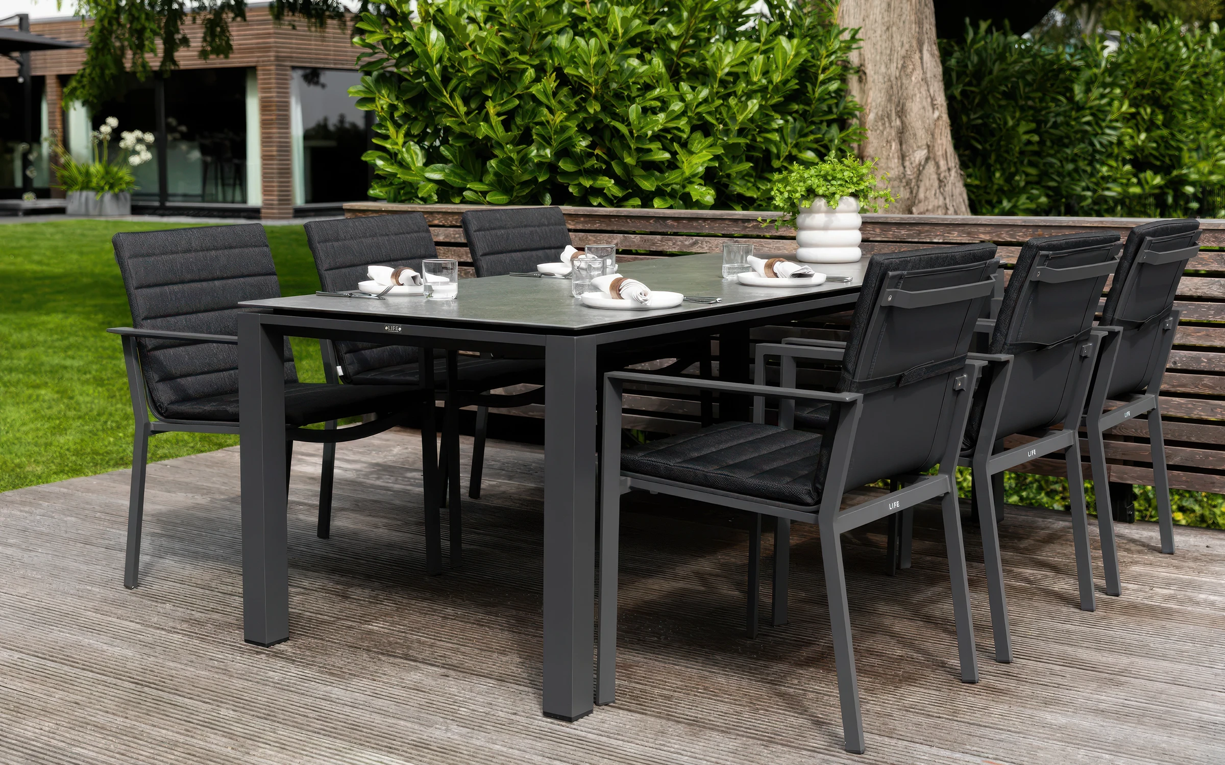 Primavera Concept to nowoczesny zestaw mebli ogrodowych przeznaczony do tworzenia eleganckiej jadalni na tarasie lub w ogrodzie. Minimalistyczna forma, proste linie i wysokiej jakości materiały sprawiają, że komplet doskonale wpisuje się w nowoczesne aranżacje zewnętrzne.
