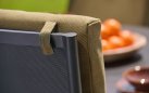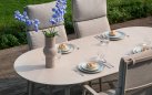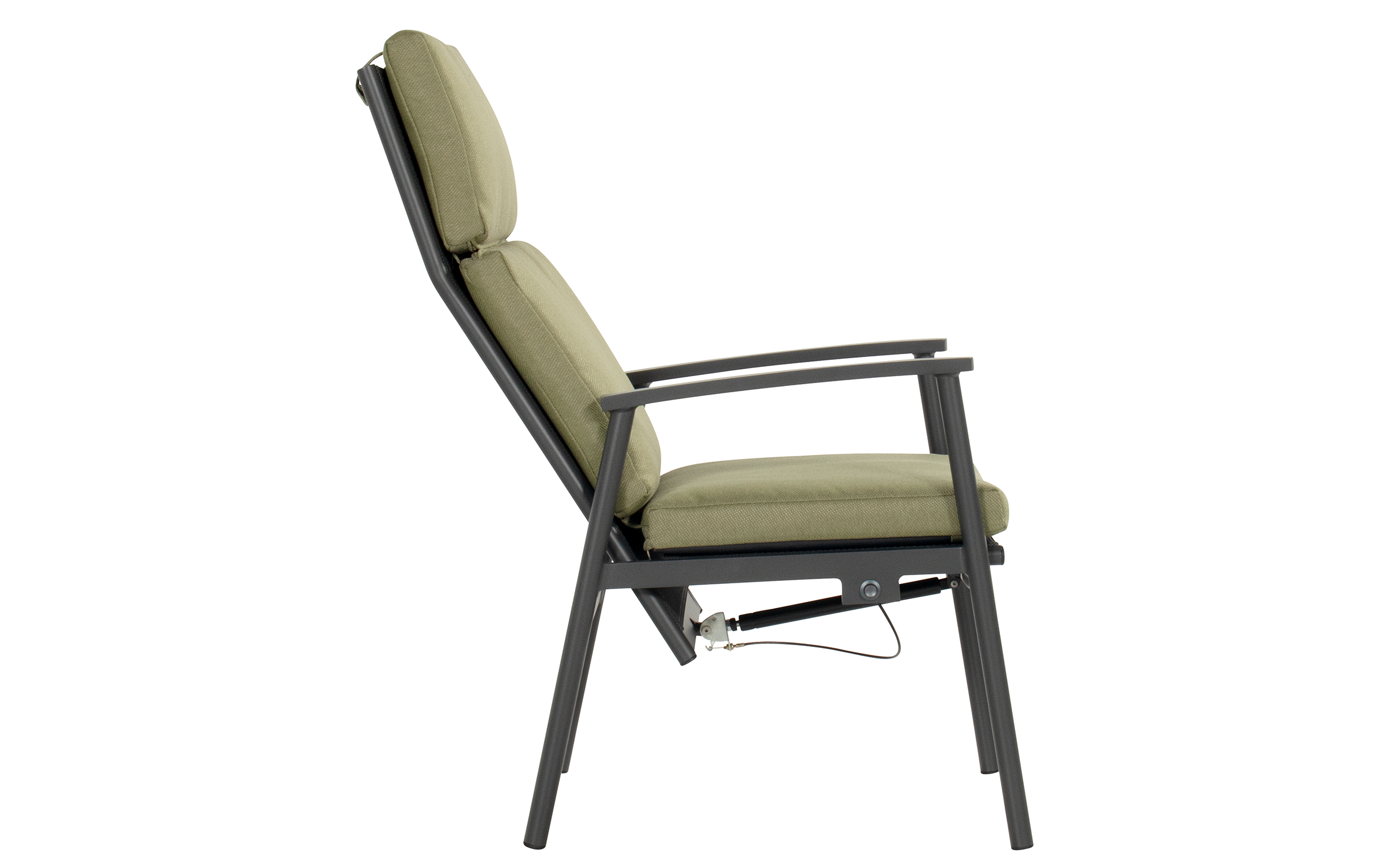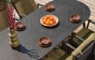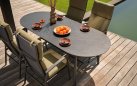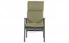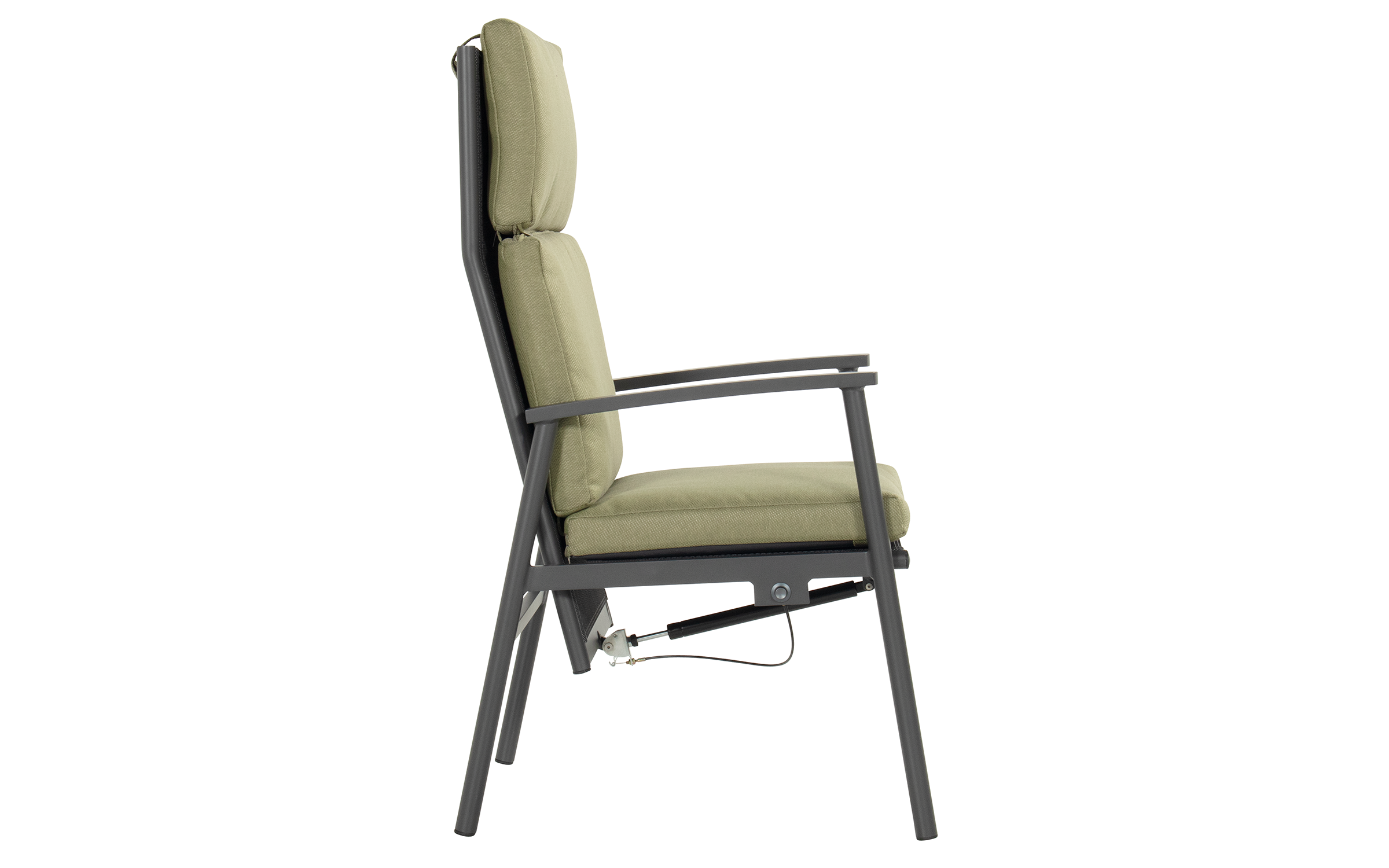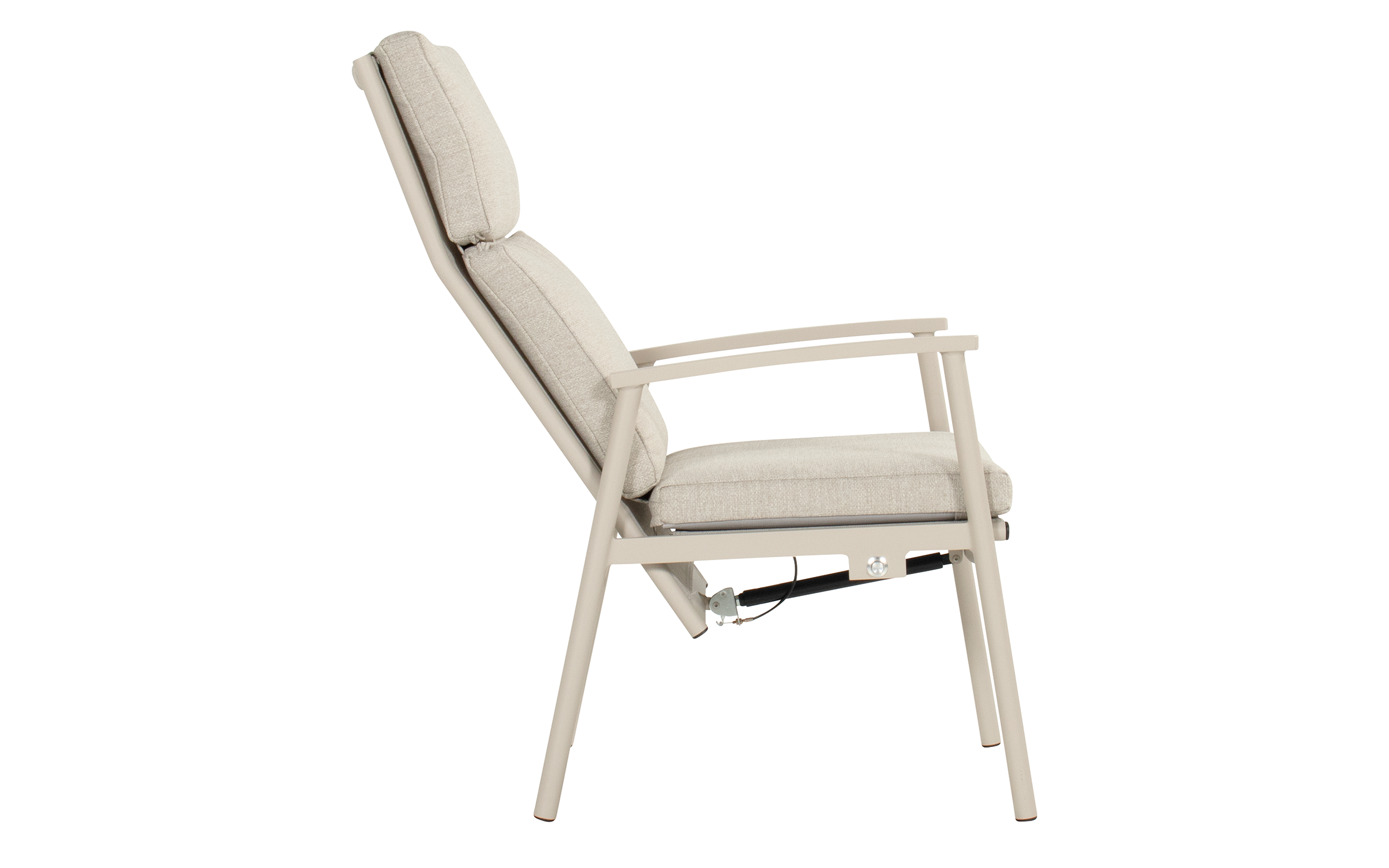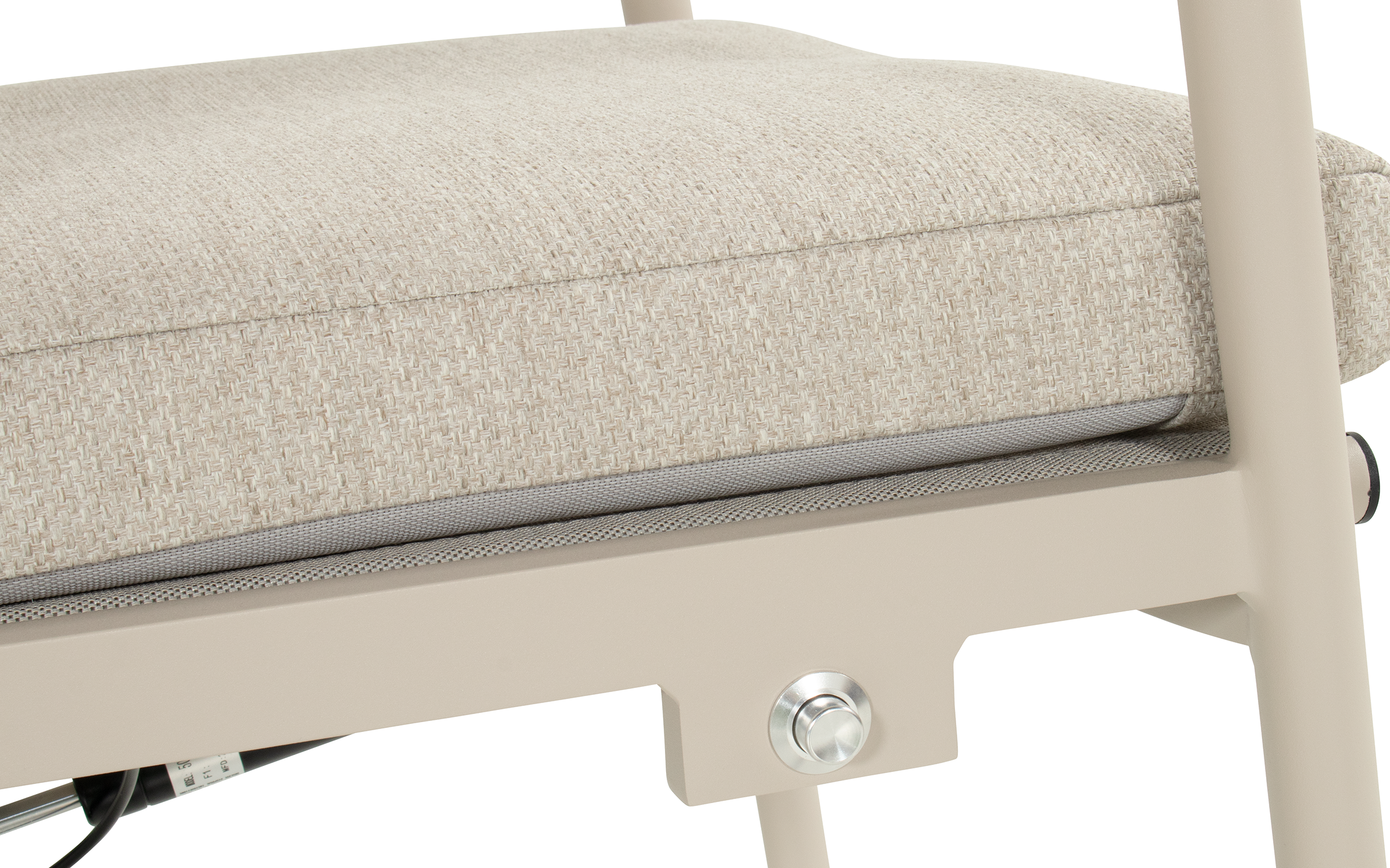 Stół wykonany z aluminium i ceramiki, odporny na warunki atmosferyczne. Fotele z aluminiową ramą, tekstylnym oparciem i poduszkami outdoor. Regulowane oparcia zapewniają wygodę i możliwość dopasowania pozycji. Całość łatwa w pielęgnacji i trwała.