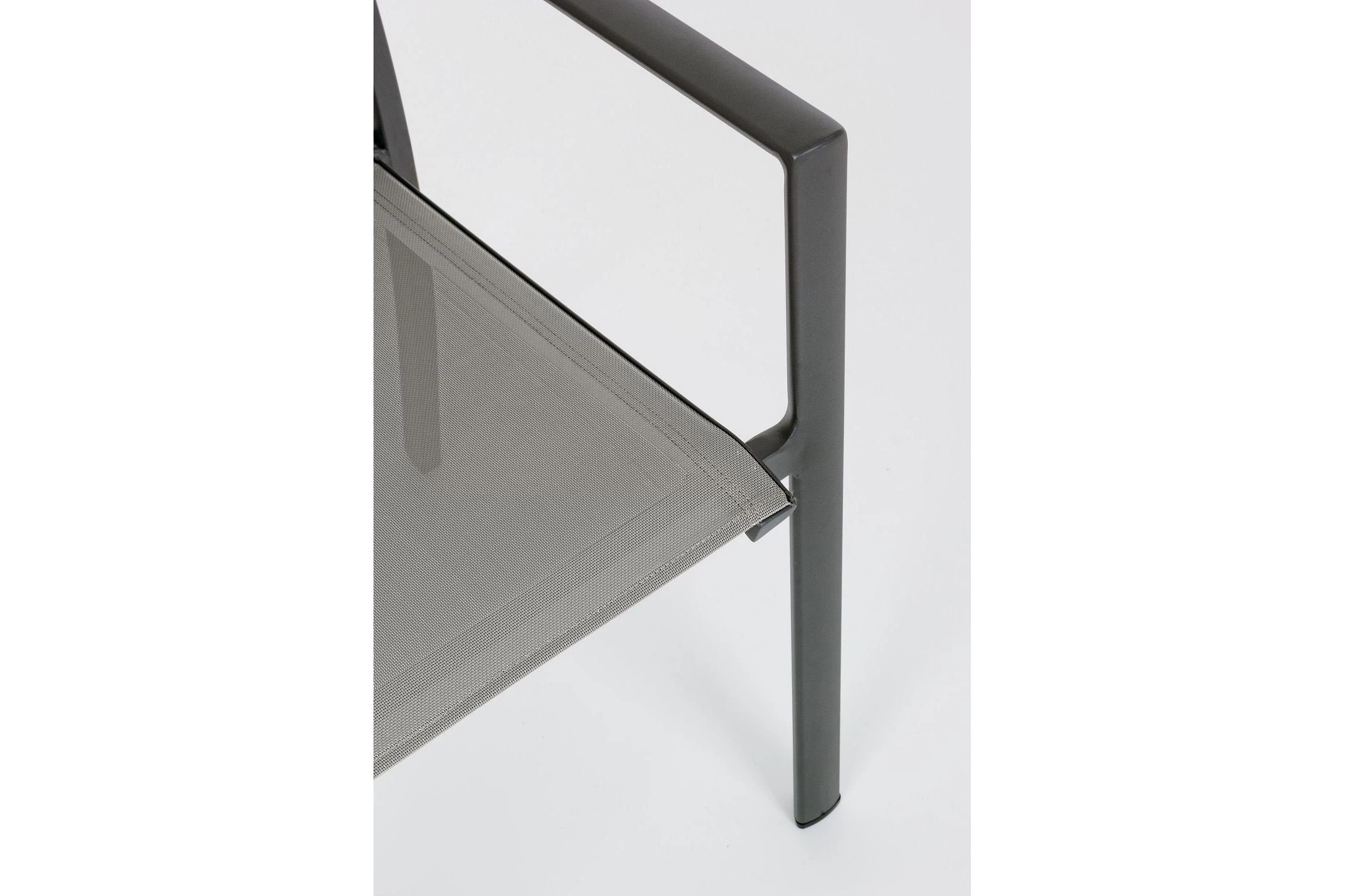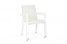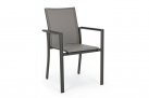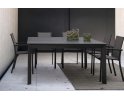 Zestaw stołowy do ogrodowej jadalni z rozkładanym stołem 160x110 do rozmiaru kwadratowego 160x160 cm oraz 4 fotele nowoczesne z podłokietnikami.