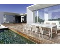 Zestaw stołowy do ogrodowej jadalni z rozkładanym stołem 200x110 do rozmiaru 300x110 cm oraz 8 foteli nowoczesnych z podłokietnikami.
