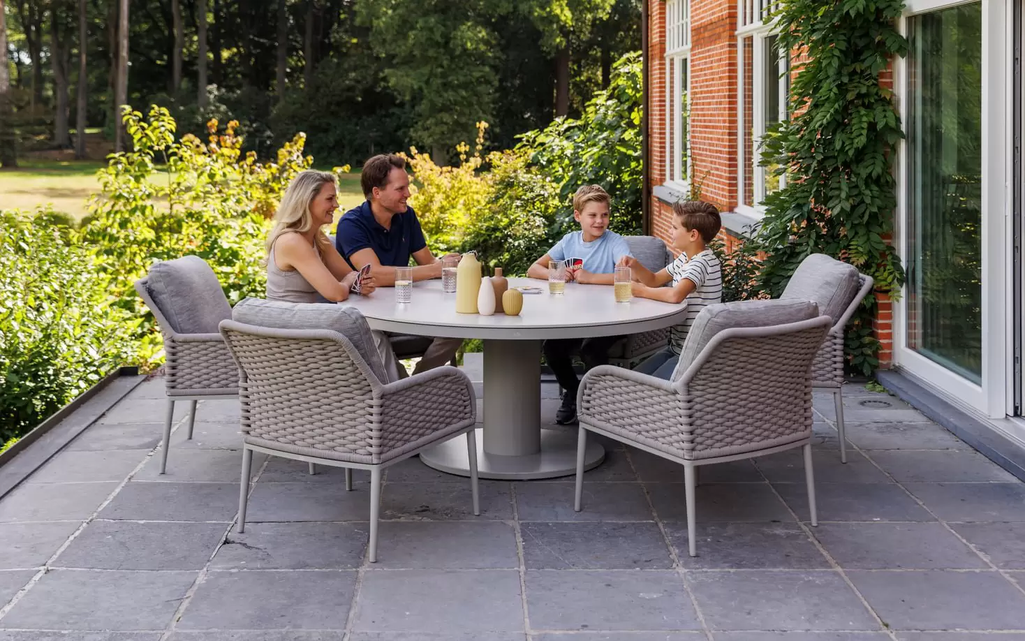 LIMA Low Beige to wyrafinowany system jadalniany dedykowany do luksusowych stref wypoczynkowych w ogrodzie lub na tarasie. Zestaw został zaprojektowany z myślą o aranżacjach sprzyjających integracji w większym gronie, łącząc jasną, stonowaną kolorystykę z zaawansowanymi technologicznie surowcami. Harmonijna sylwetka mebli nadaje przestrzeni wizualnej lekkości, zachowując jednocześnie prestiżowy charakter wyposażenia klasy premium.