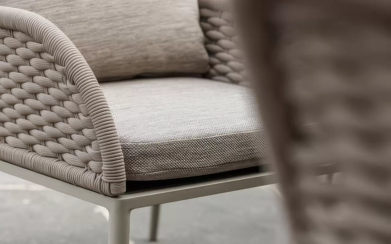 Tkanina Soltex – zaawansowany materiał outdoorowy odporny na intensywne nasłonecznienie oraz zabrudzenia. Hybrydowa struktura splotu łączy przyjemną dla skóry miękkość z pełną funkcjonalnością techniczną wymaganą w meblach zewnętrznych.