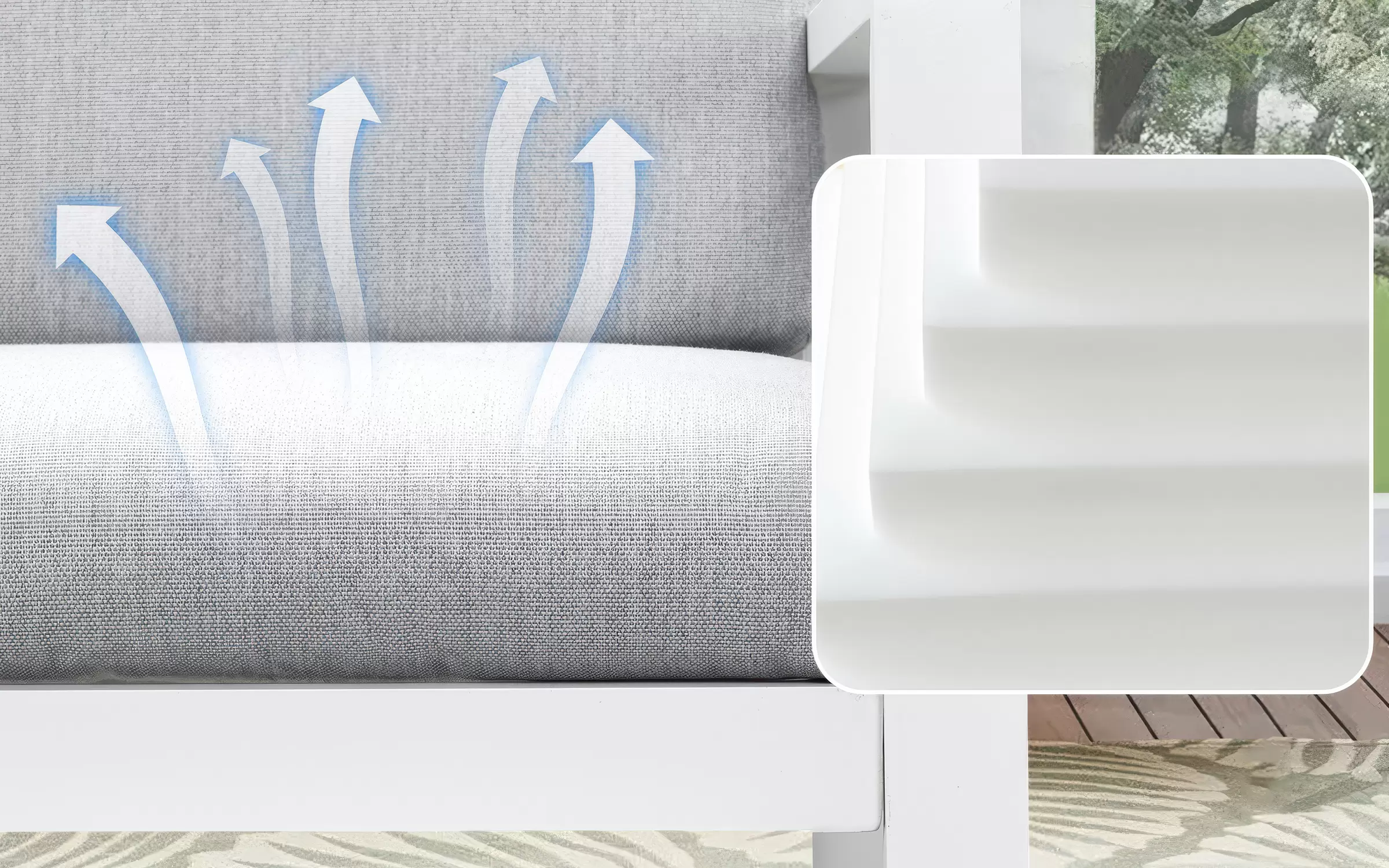 Gwarancja nie obejmuje zmian wynikających ze zużycia materiałów zastosowanych w poduszkach, w tym blaknięcia poszewek w wyniku długiego pozostawania pod wpływem promieni słonecznych.