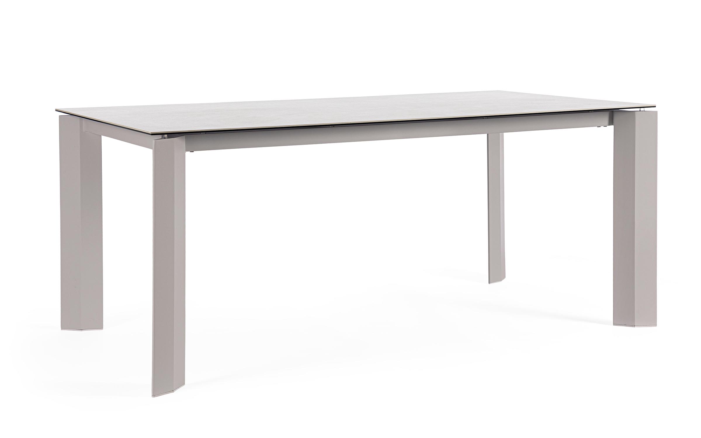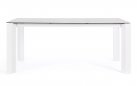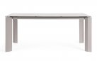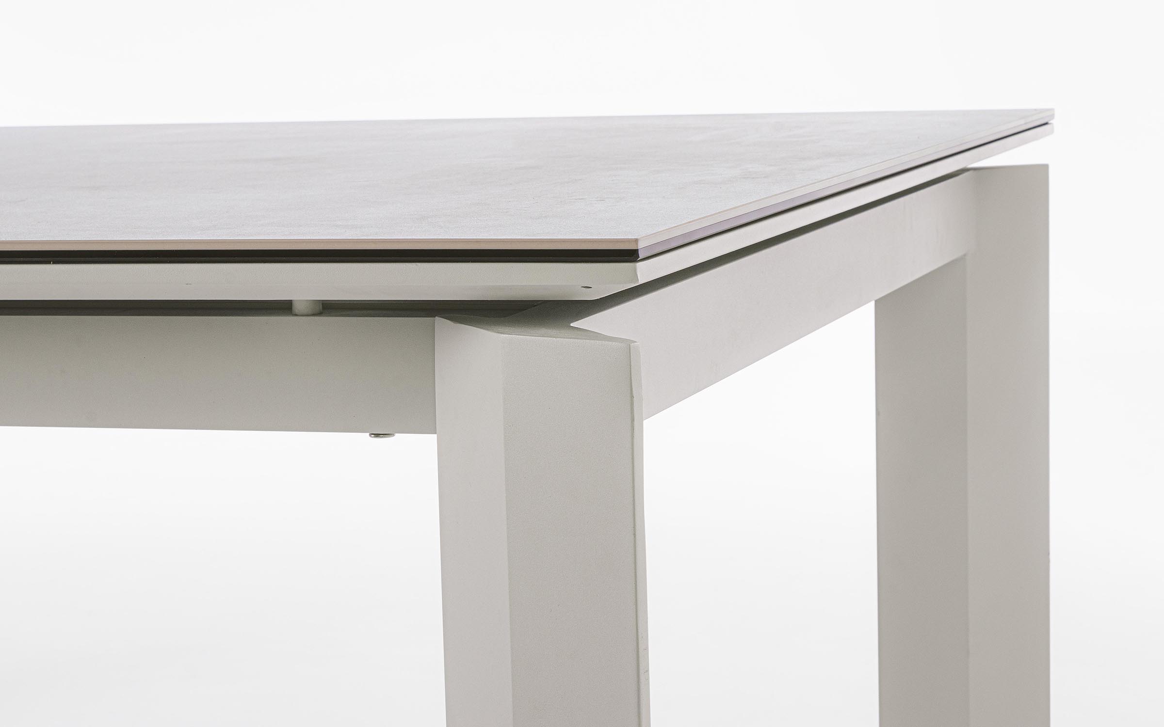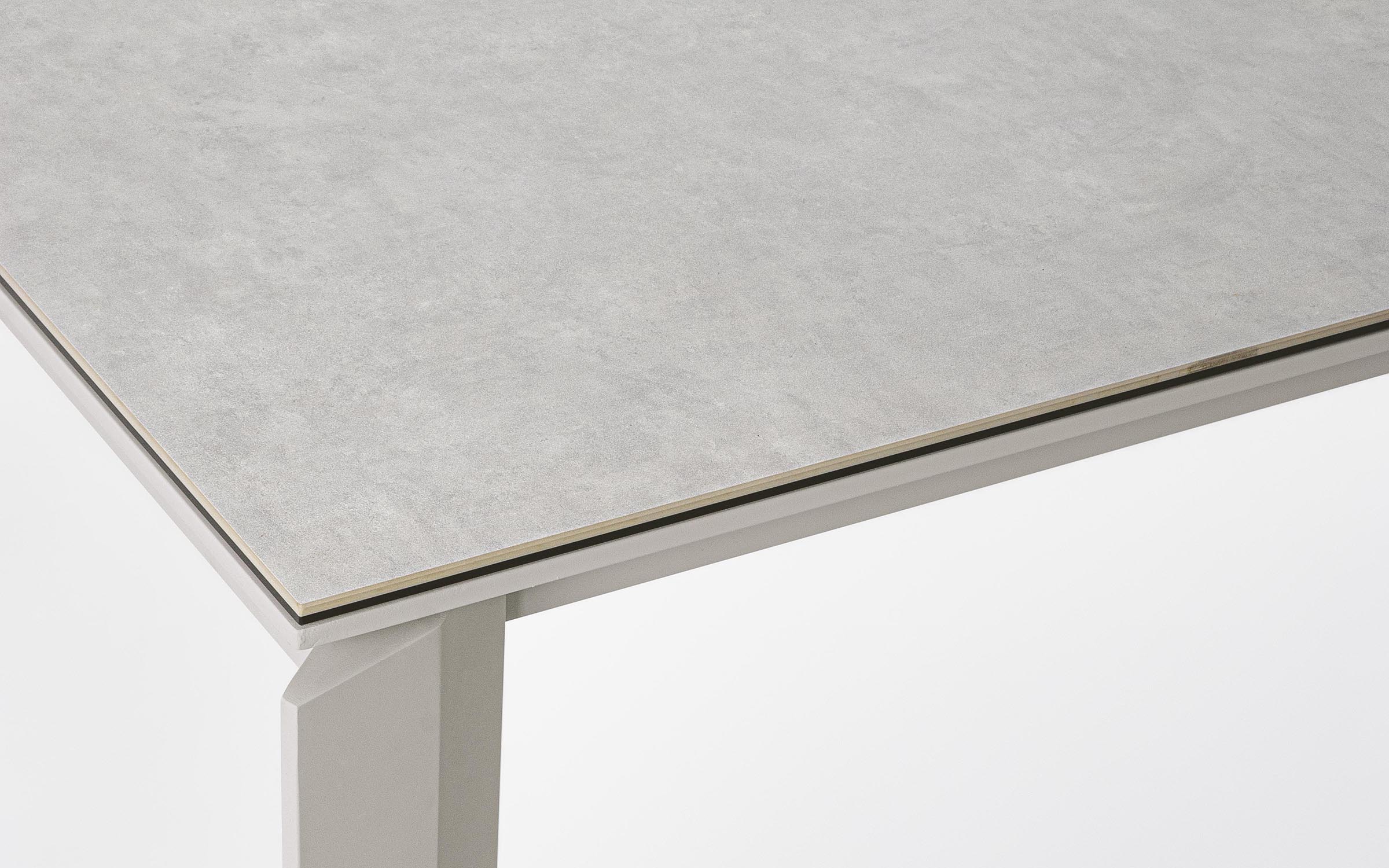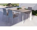 Nowoczesny komplet mebli ogrodowych stołowych na taras aluminiowy dla 4 osób. Blat stołu ceramiczny na osnowie ze szkła hartowanego o grubości 9 mm (4,5 szkło hartowane/4,5 mm ceramika). Takie łączenie zapewnia większą trwałość na naprężenia.