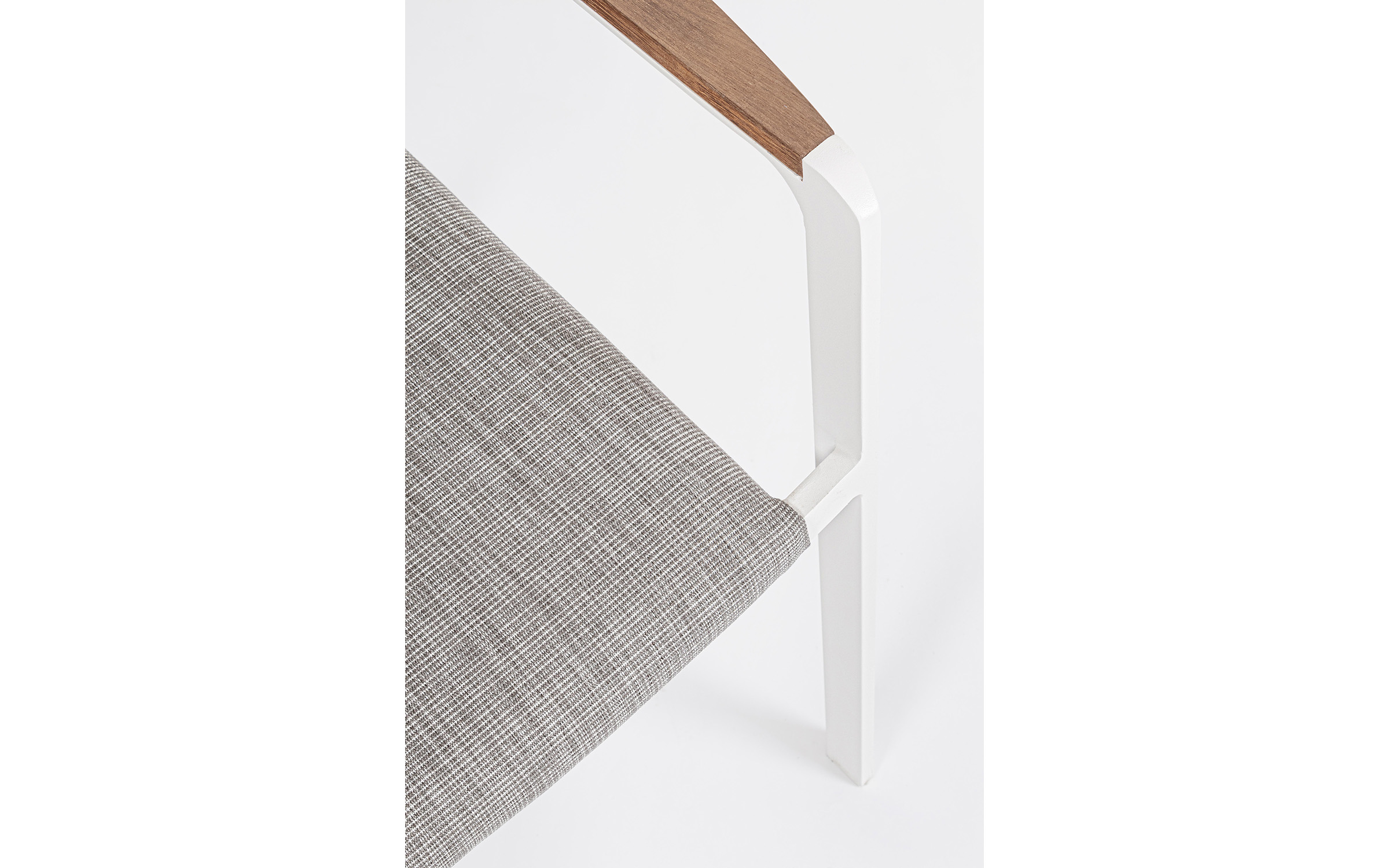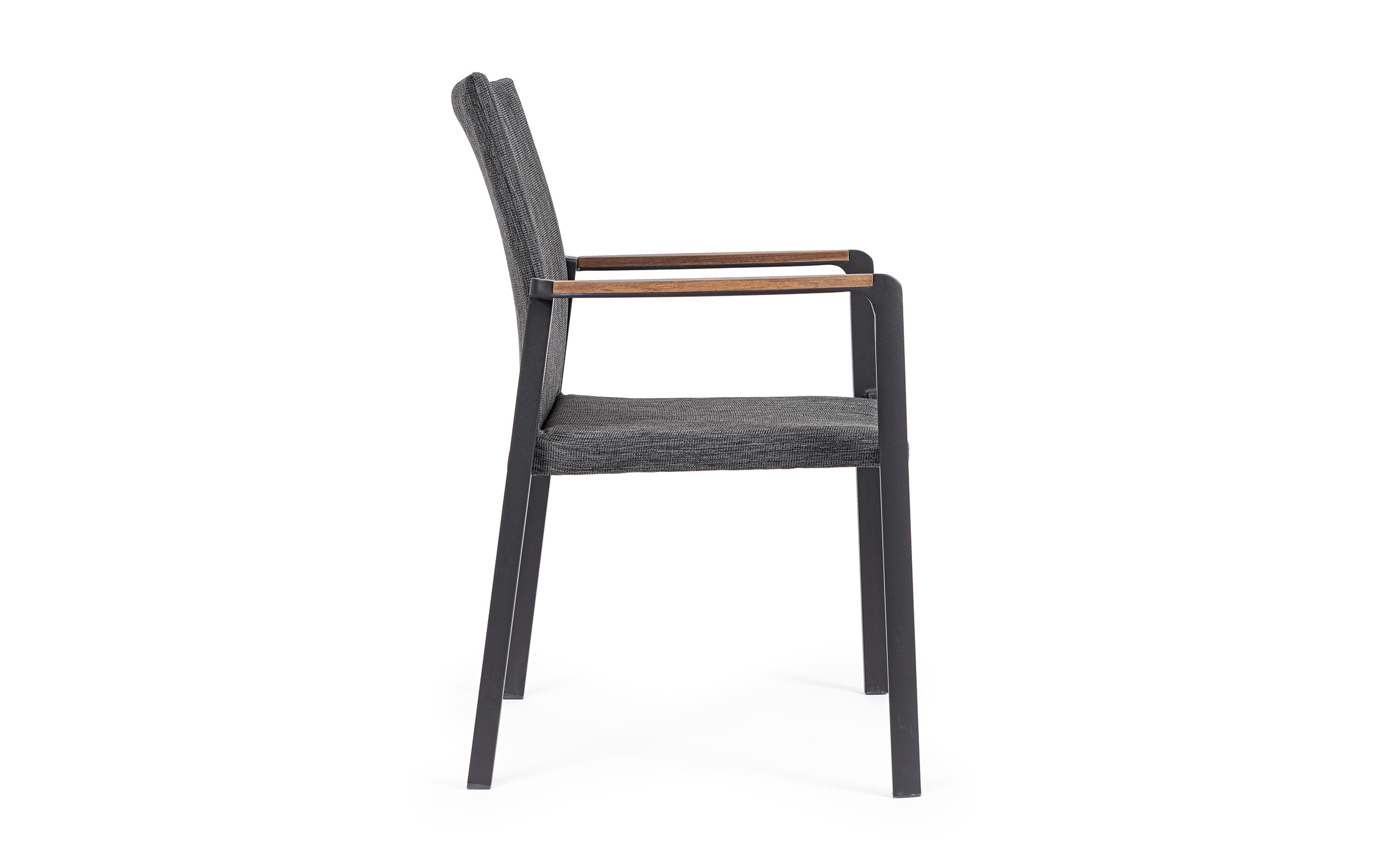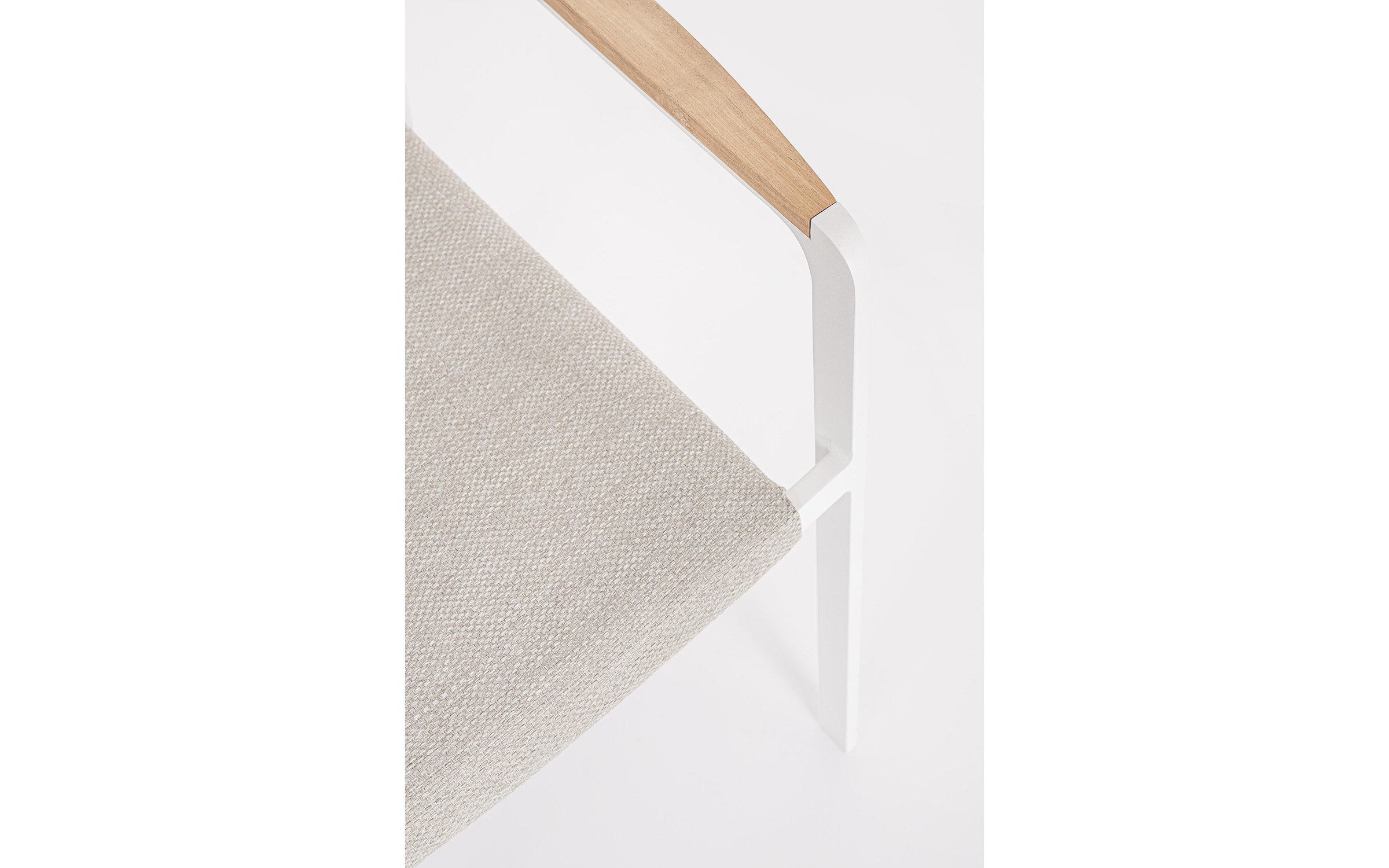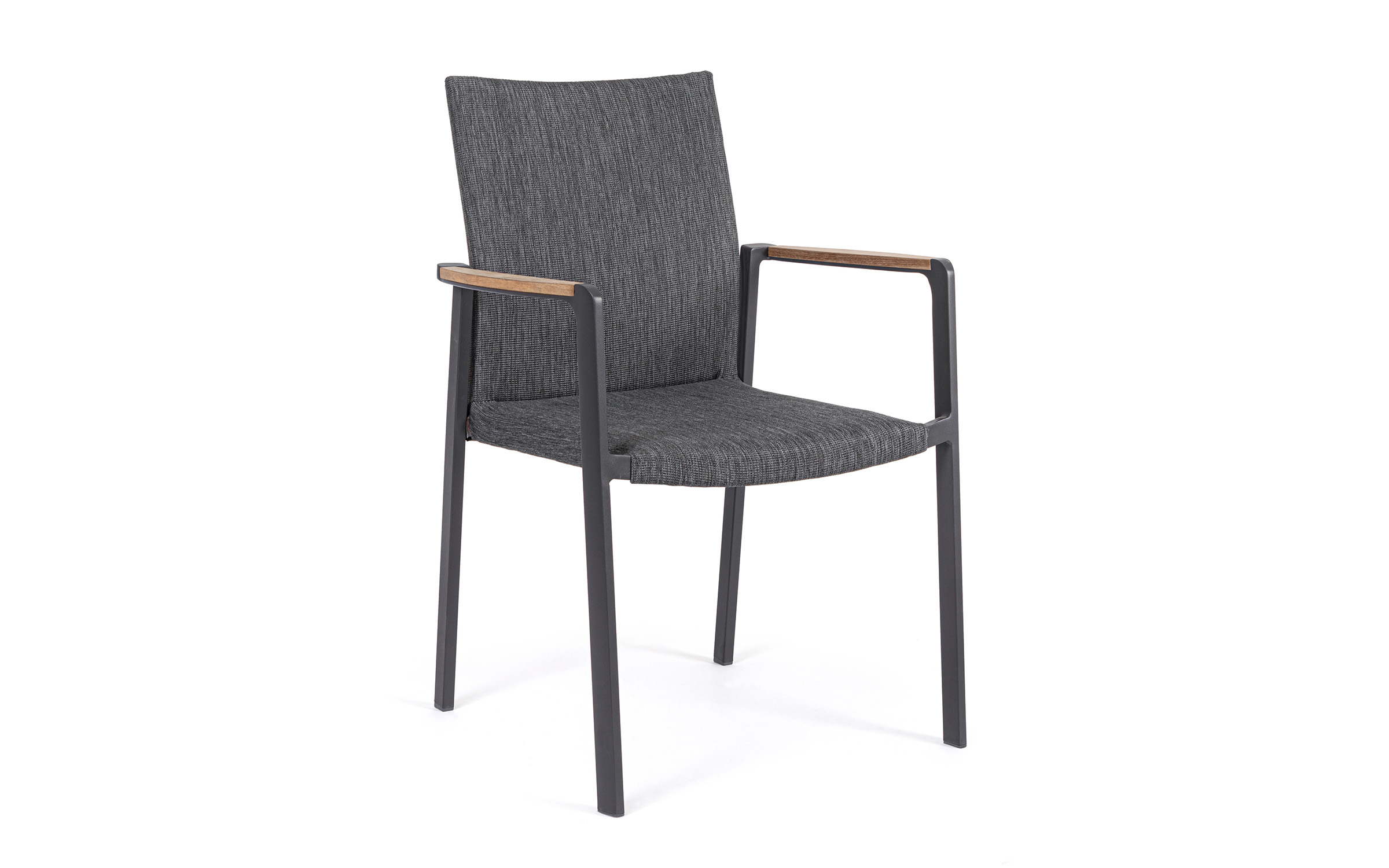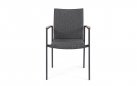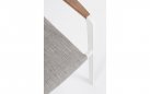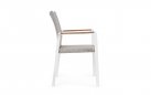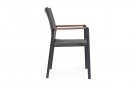 Krzesło posiada w podłokietnikach wstawki z drewna teak.
