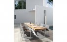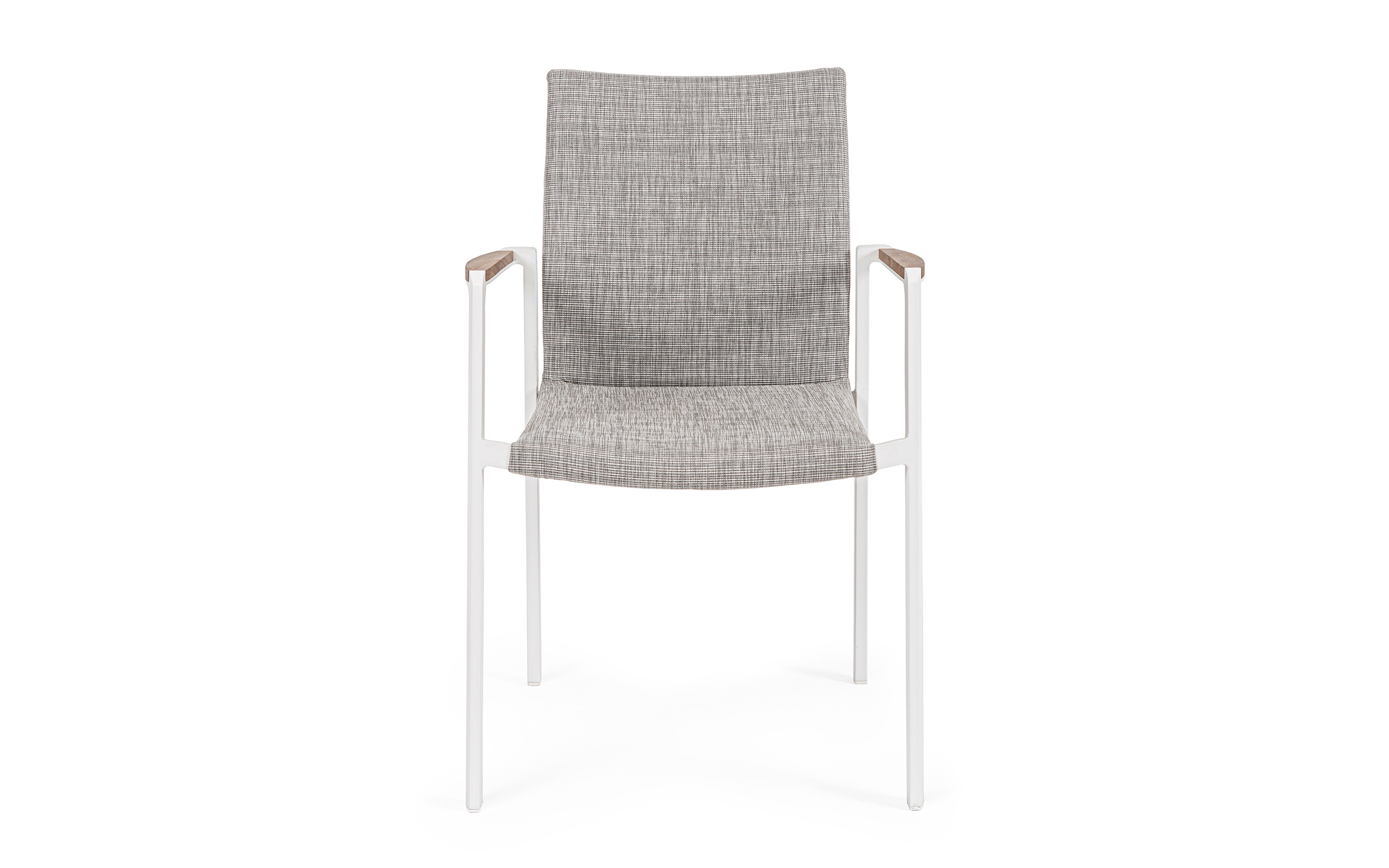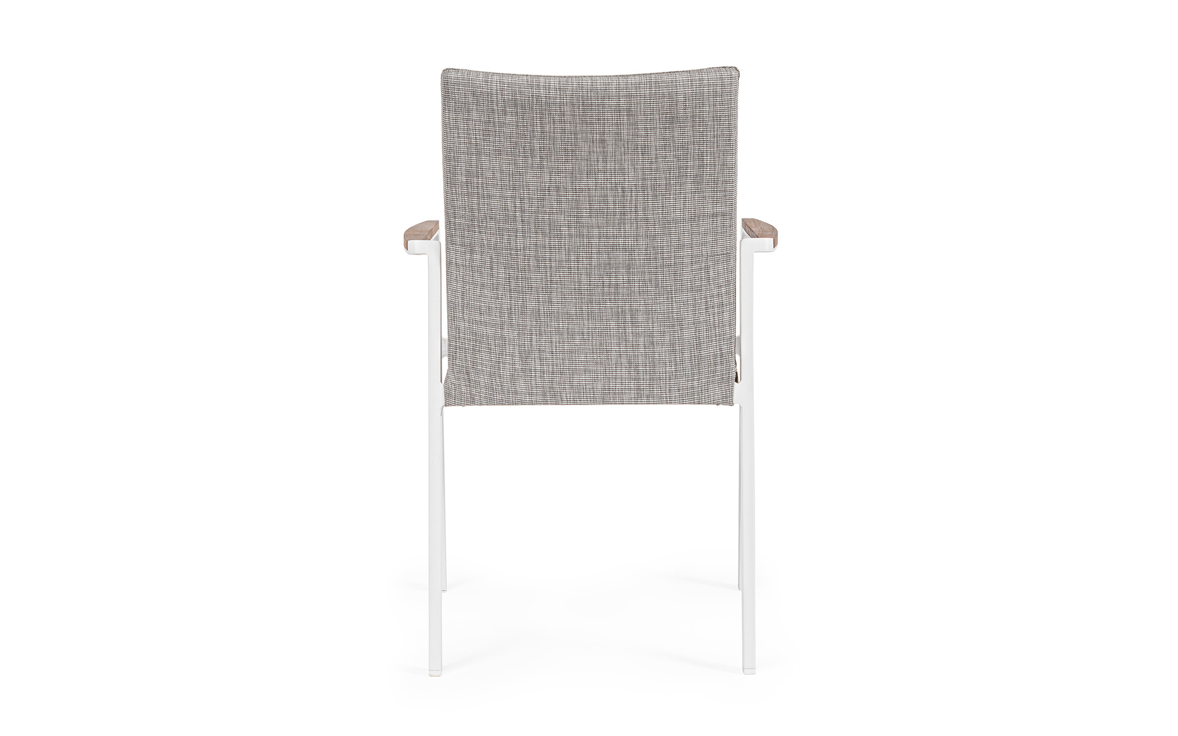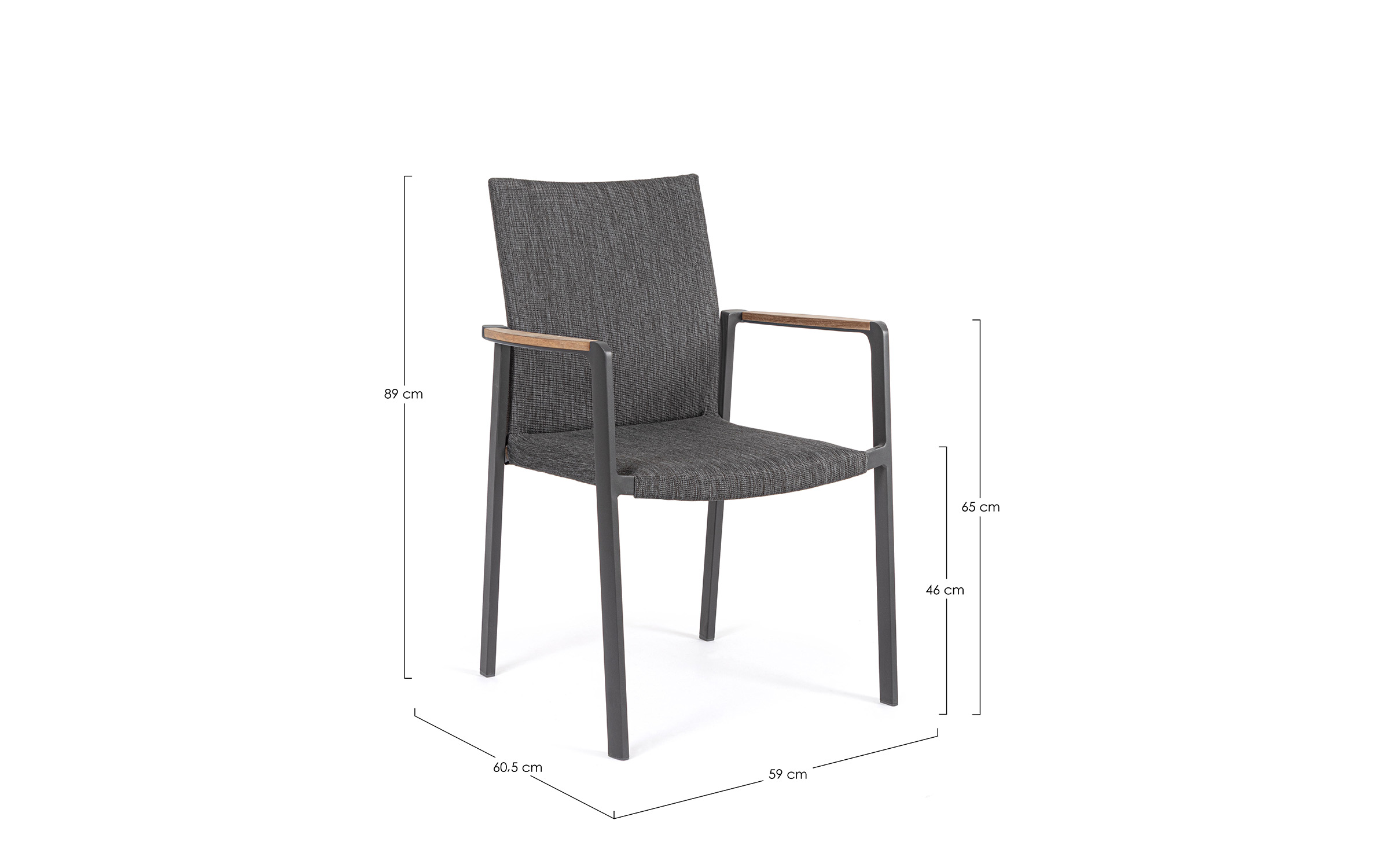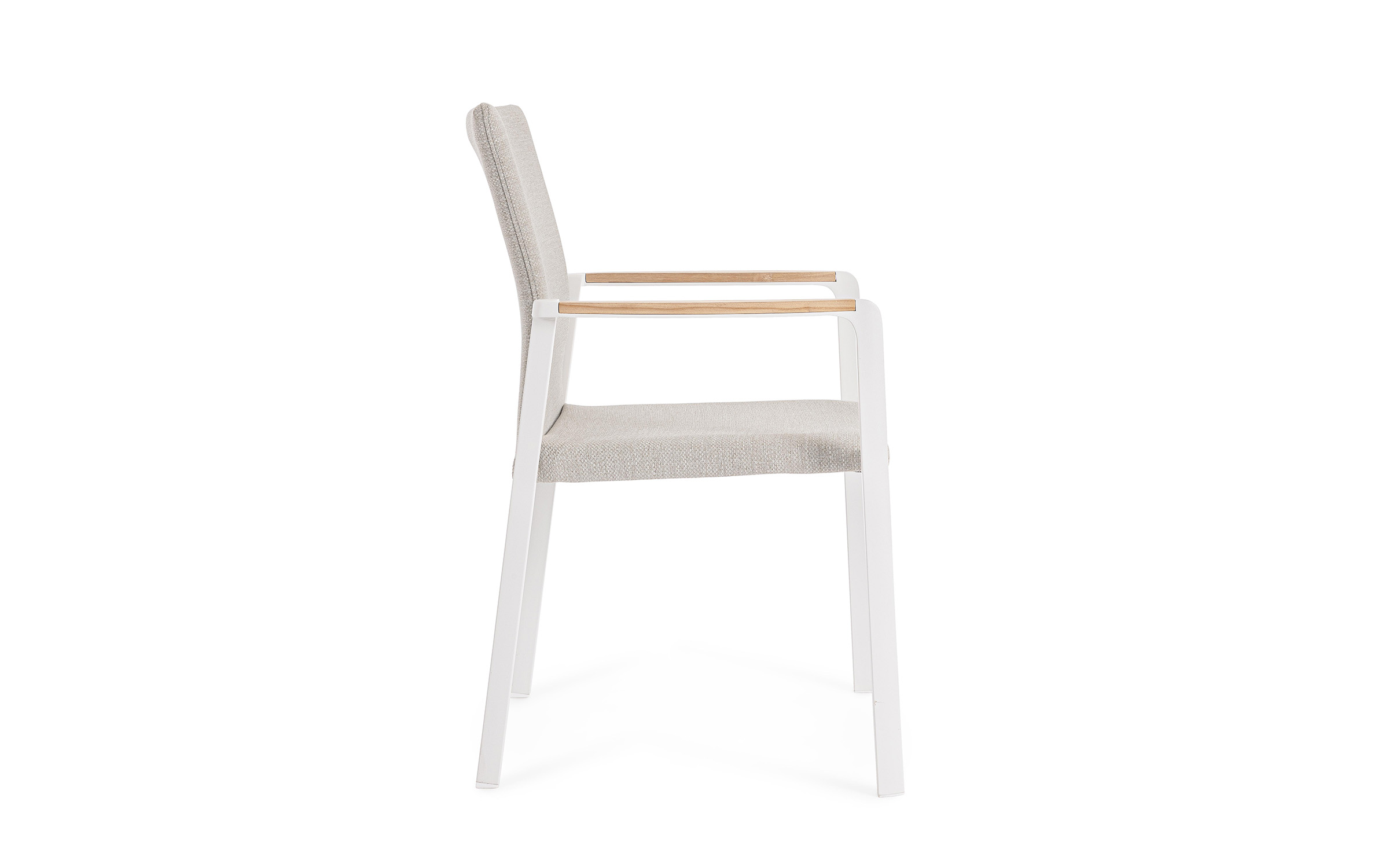 Krzesło posiada w podłokietnikach wstawki z drewna teak.